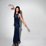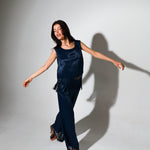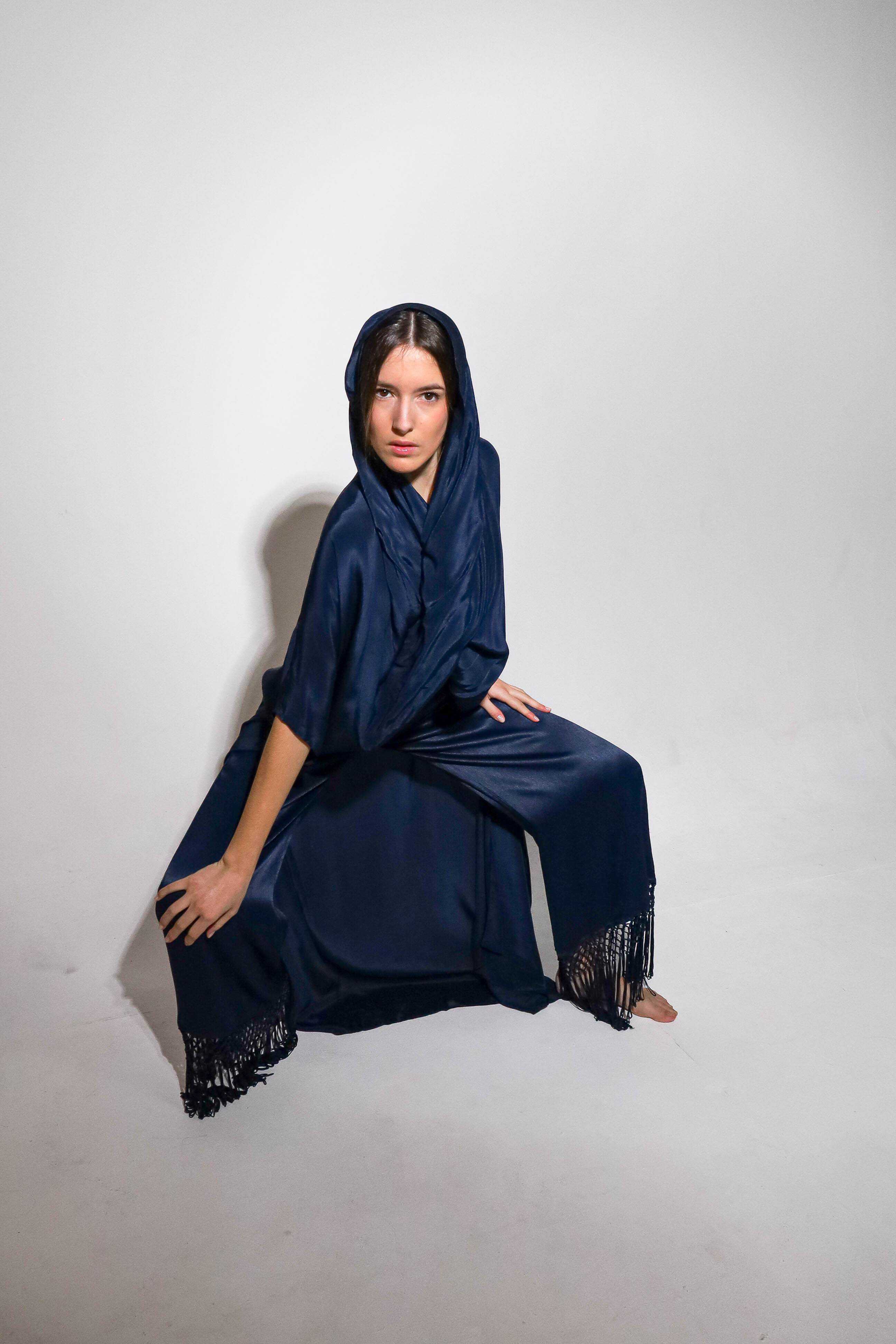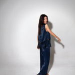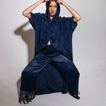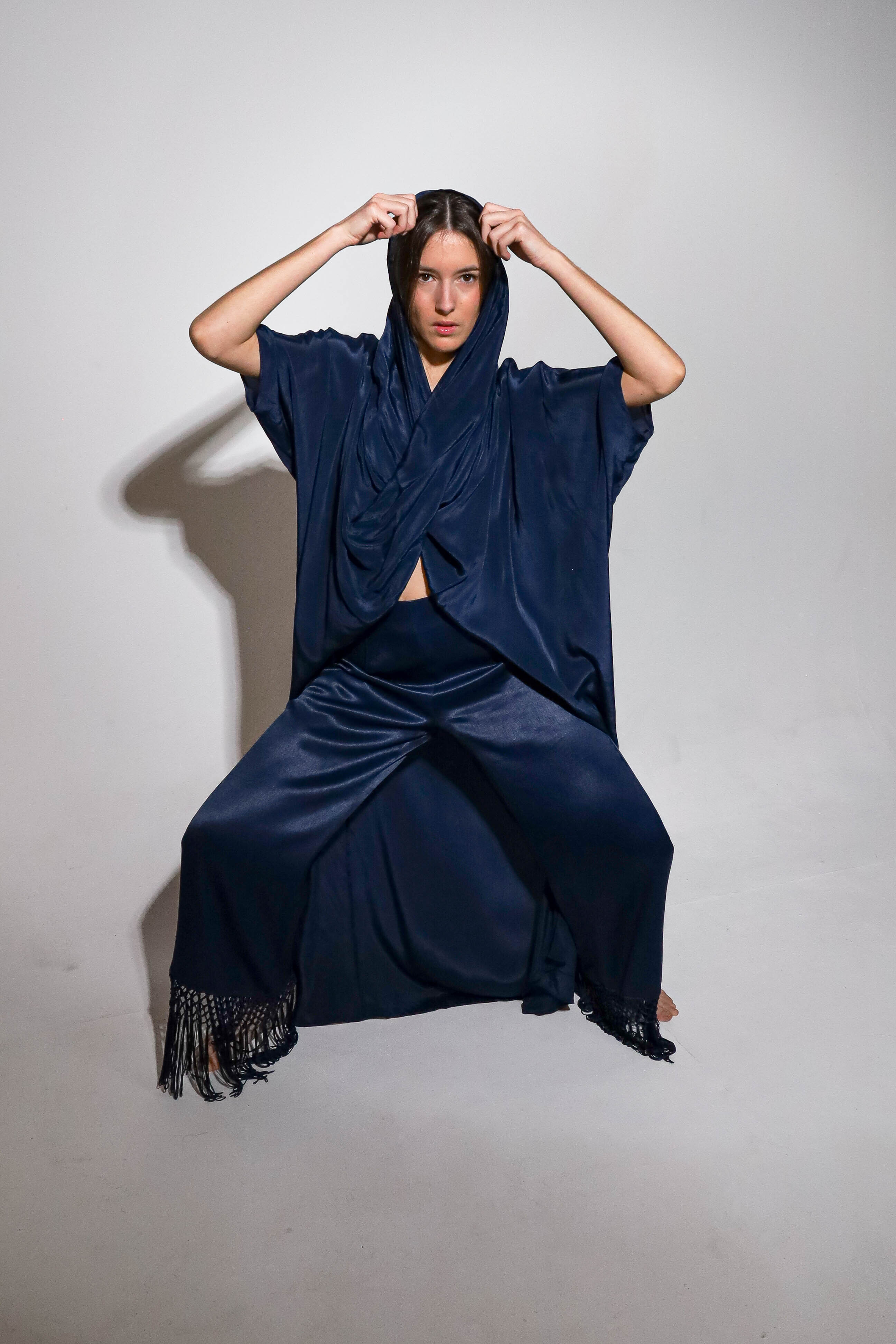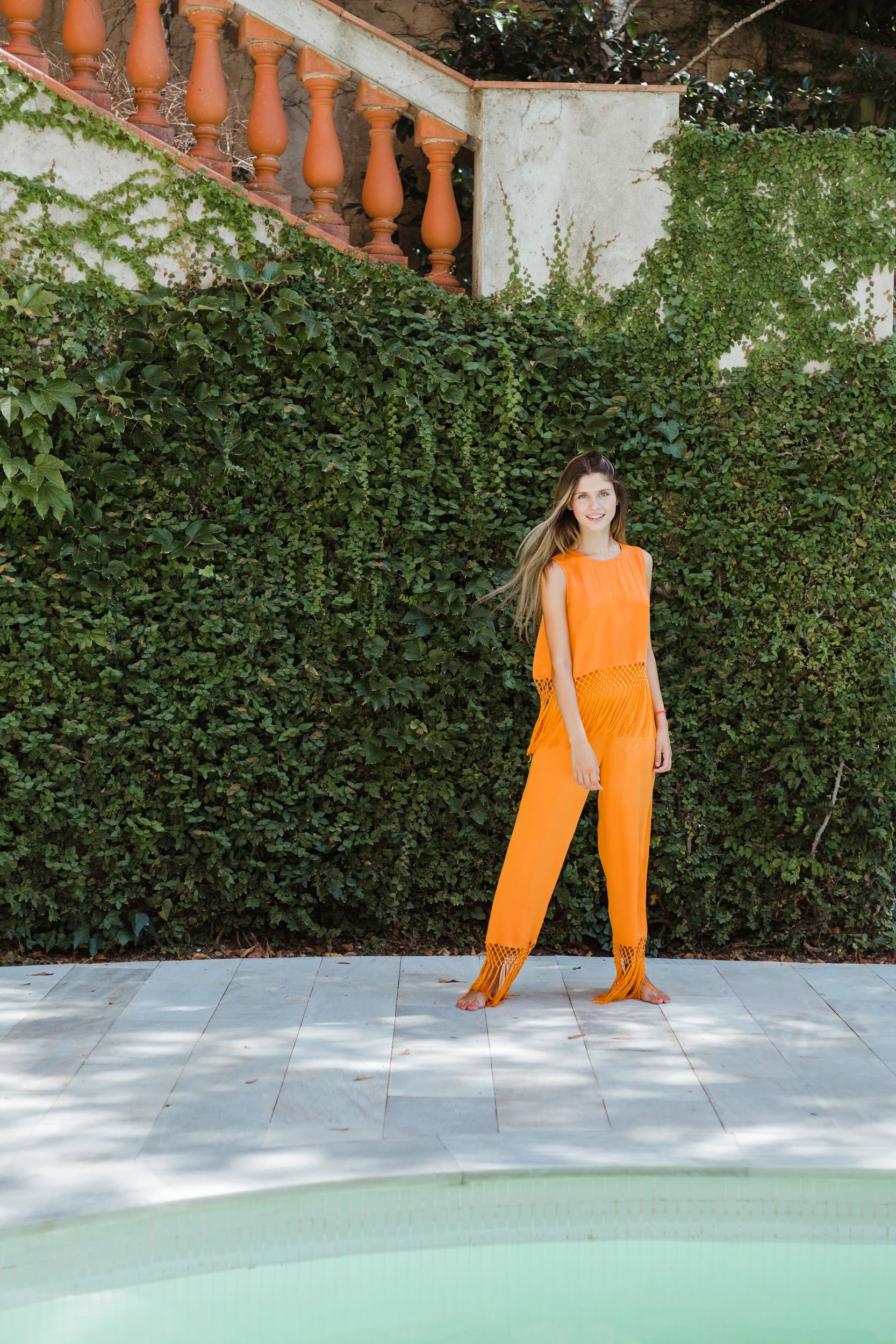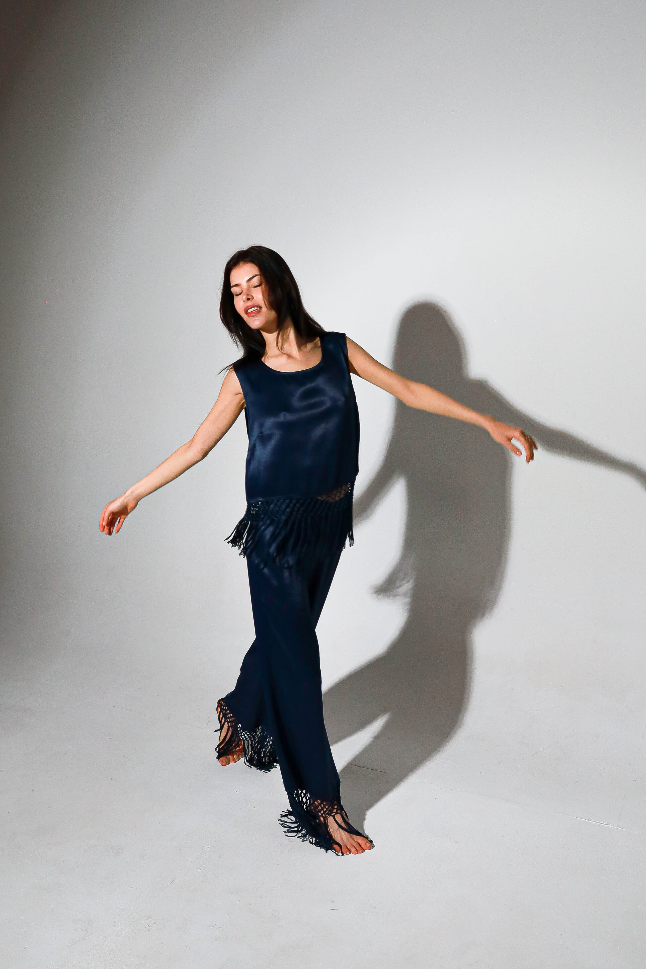 Pantalón palazzo con cremallera invisible trasera y flecos en el bajo.