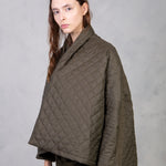 Chaqueta de silueta oversize con cuello chal. Diseño cruzado y tejido acolchado con patrón de rombos.