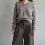 Jersey de escote en V confeccionado en punto de cashmere ligero y delicado. Diseño de corte ajustado, con manga larga acabada en un puño acanalado extralargo y cinturilla ancha a juego.