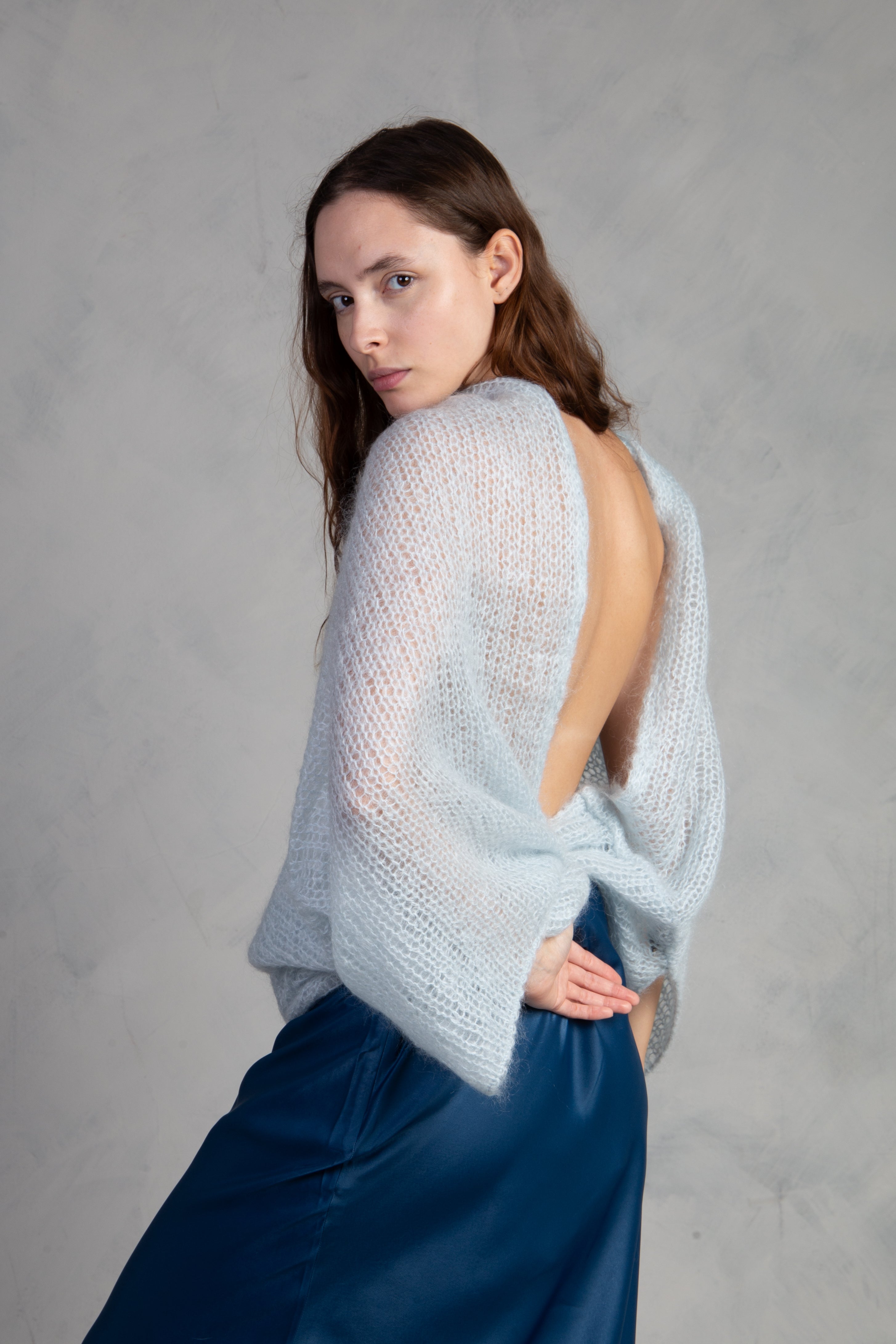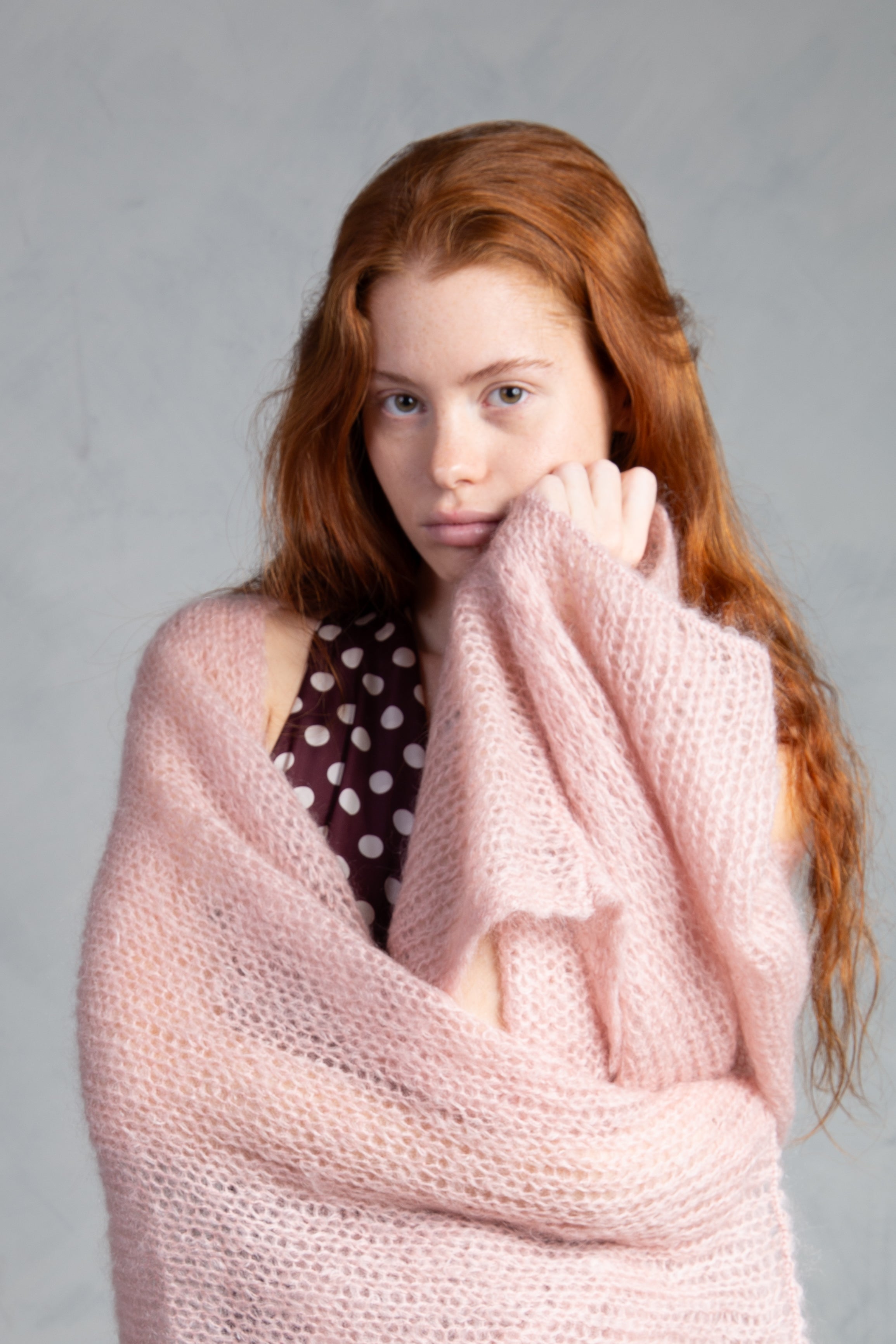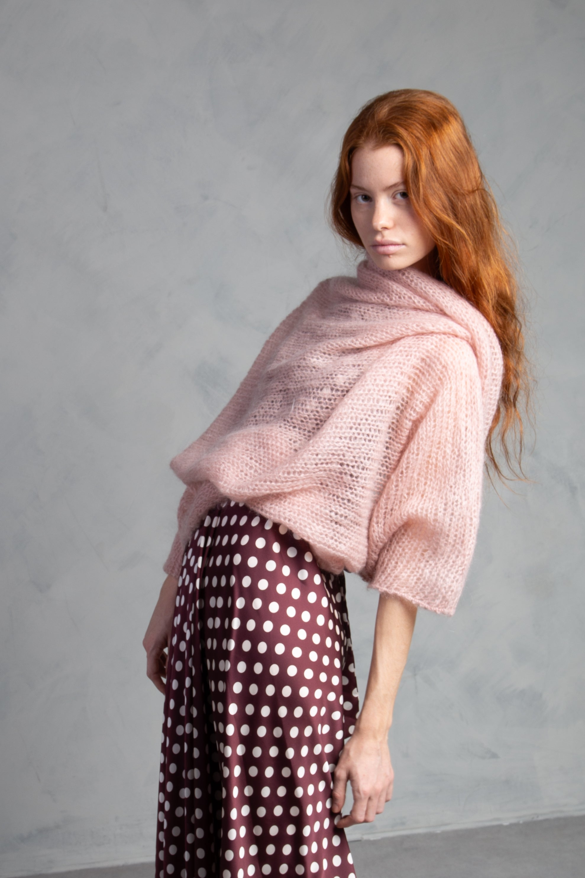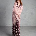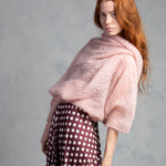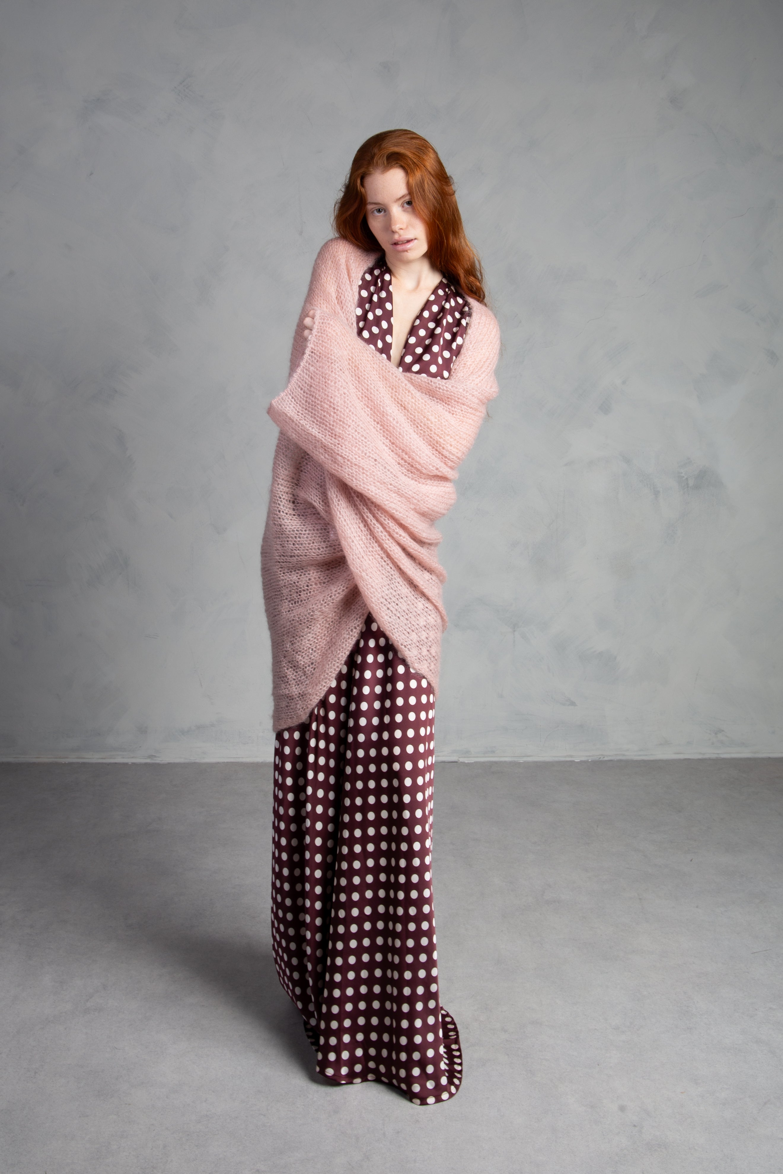 Chal de silueta amplia y envolvente con cuello chal. Diseño abierto con manga ancha tipo kimono, confeccionado en un delicado y ultraligero Cashmere.