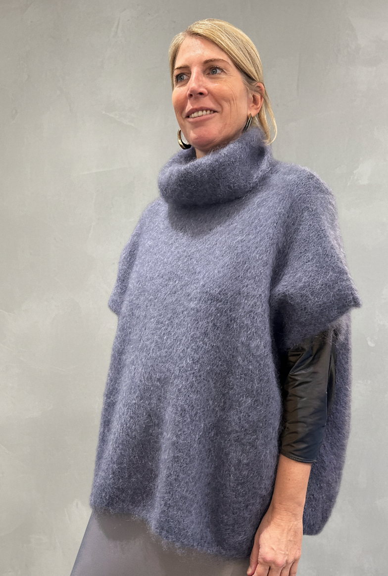 Poncho de cuello alto y envolvente. Diseño de silueta oversize y corte tipo capa, de tacto suave y acabado peloso.