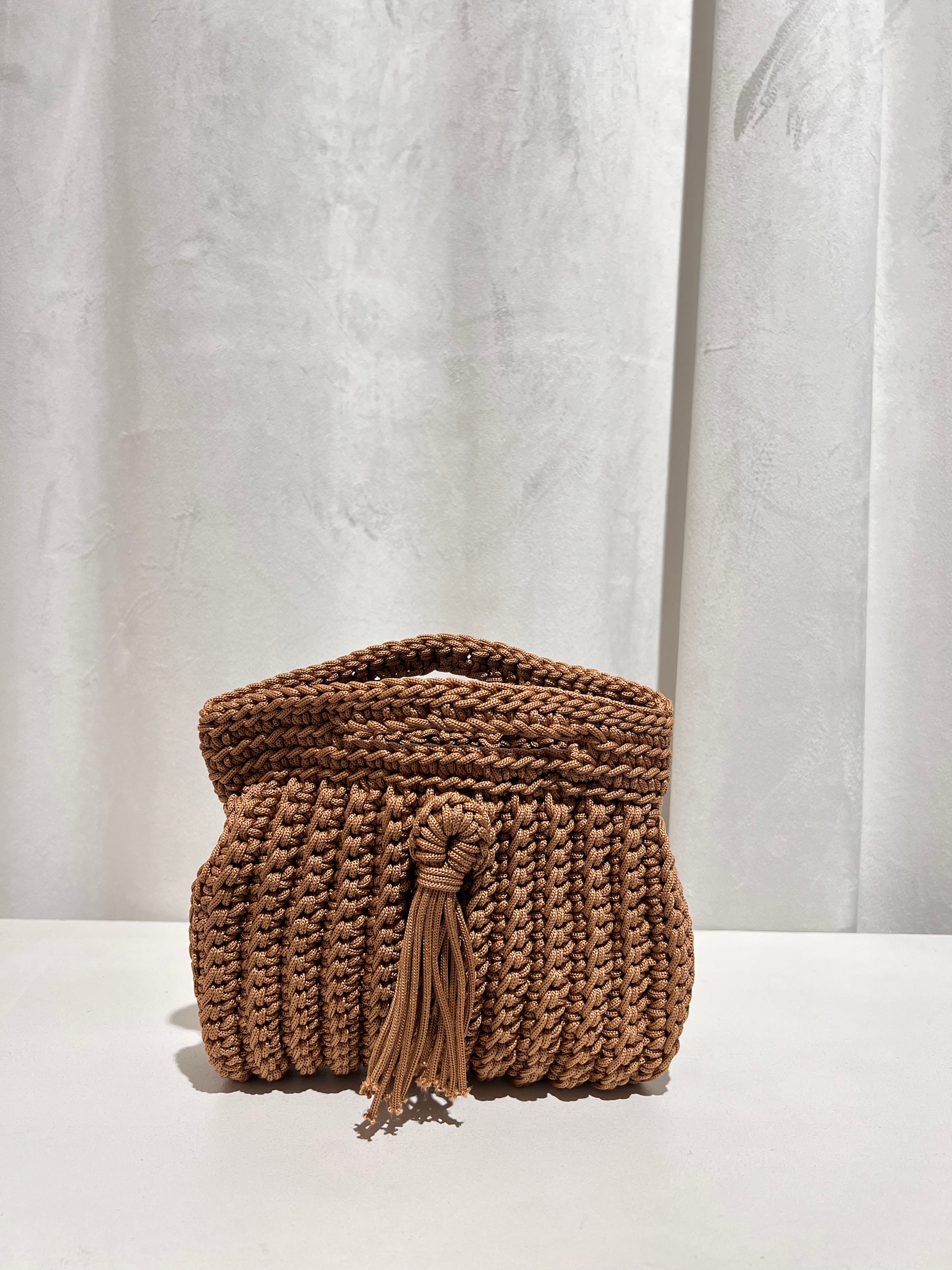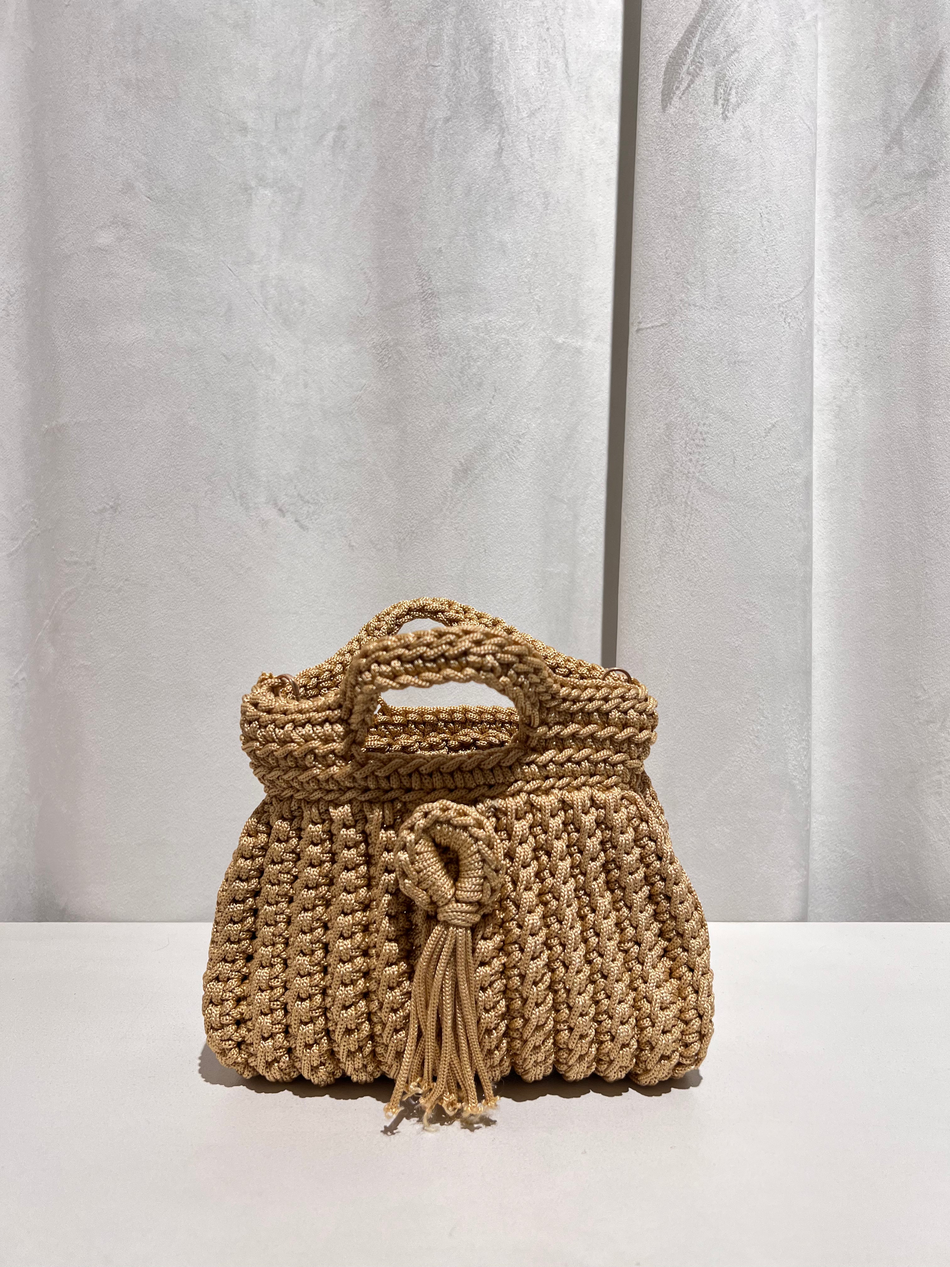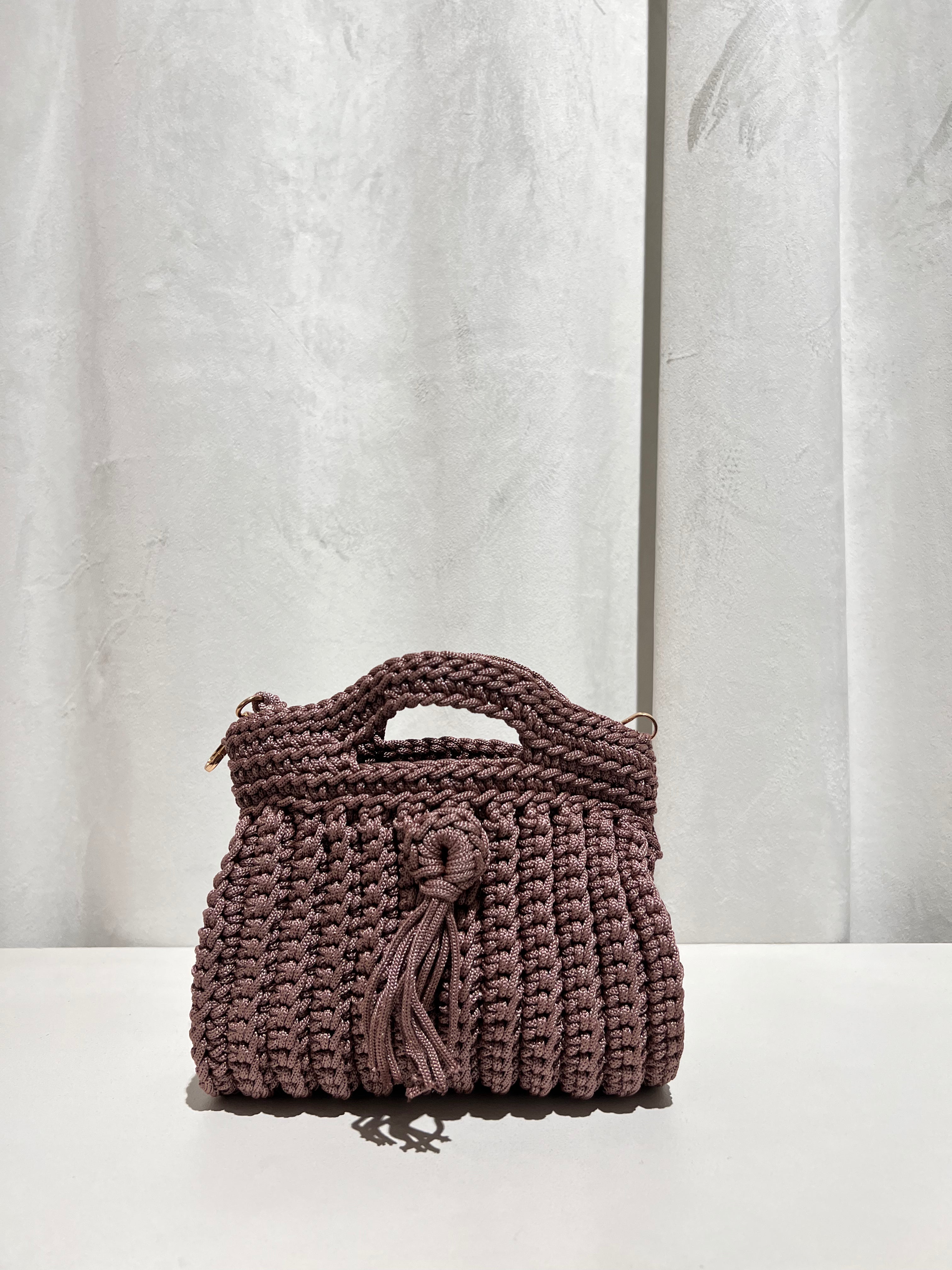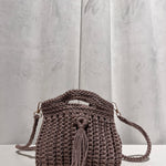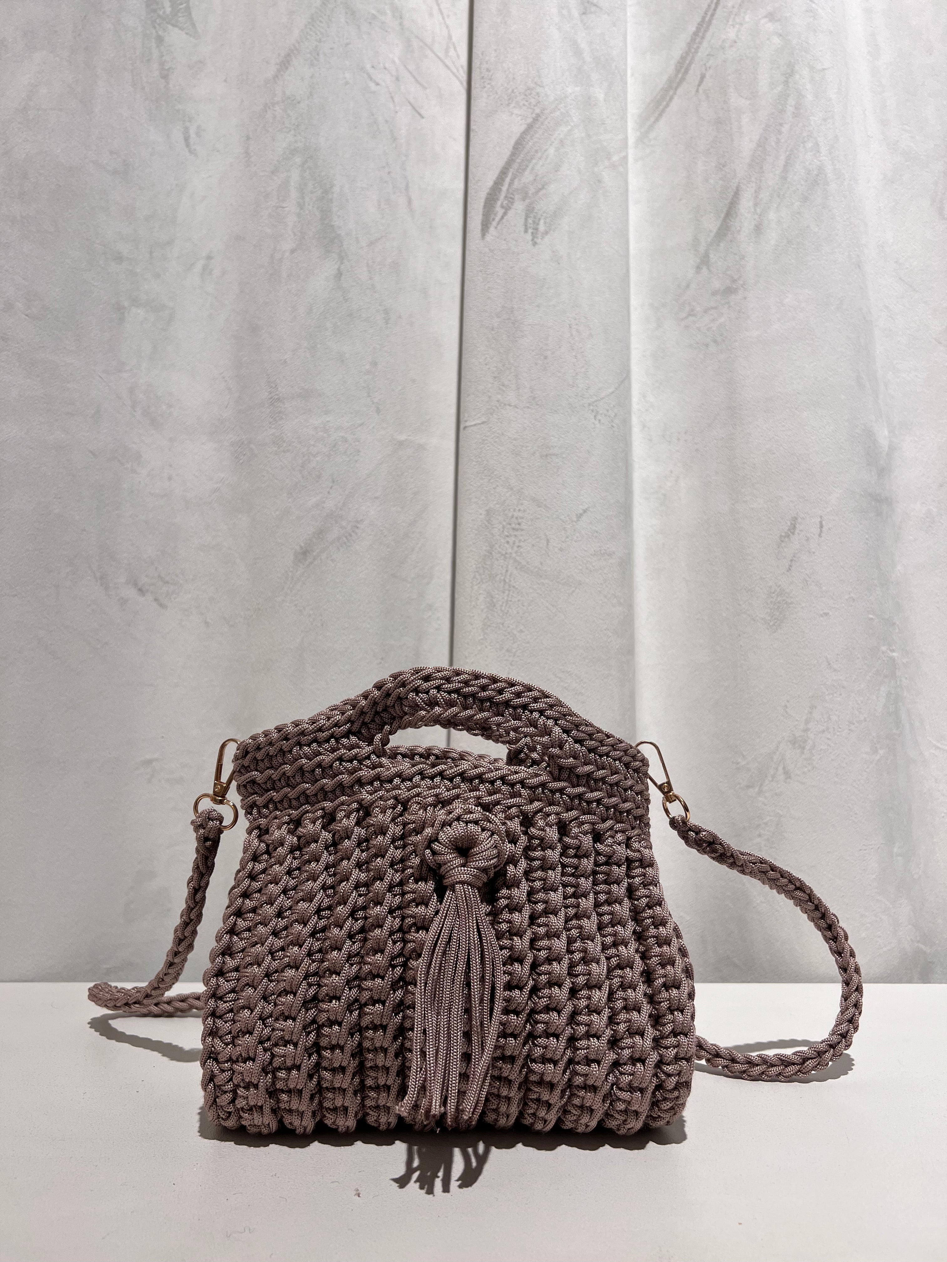 Bolso trenzado con asa y cadena de punto para colgar cruzado.