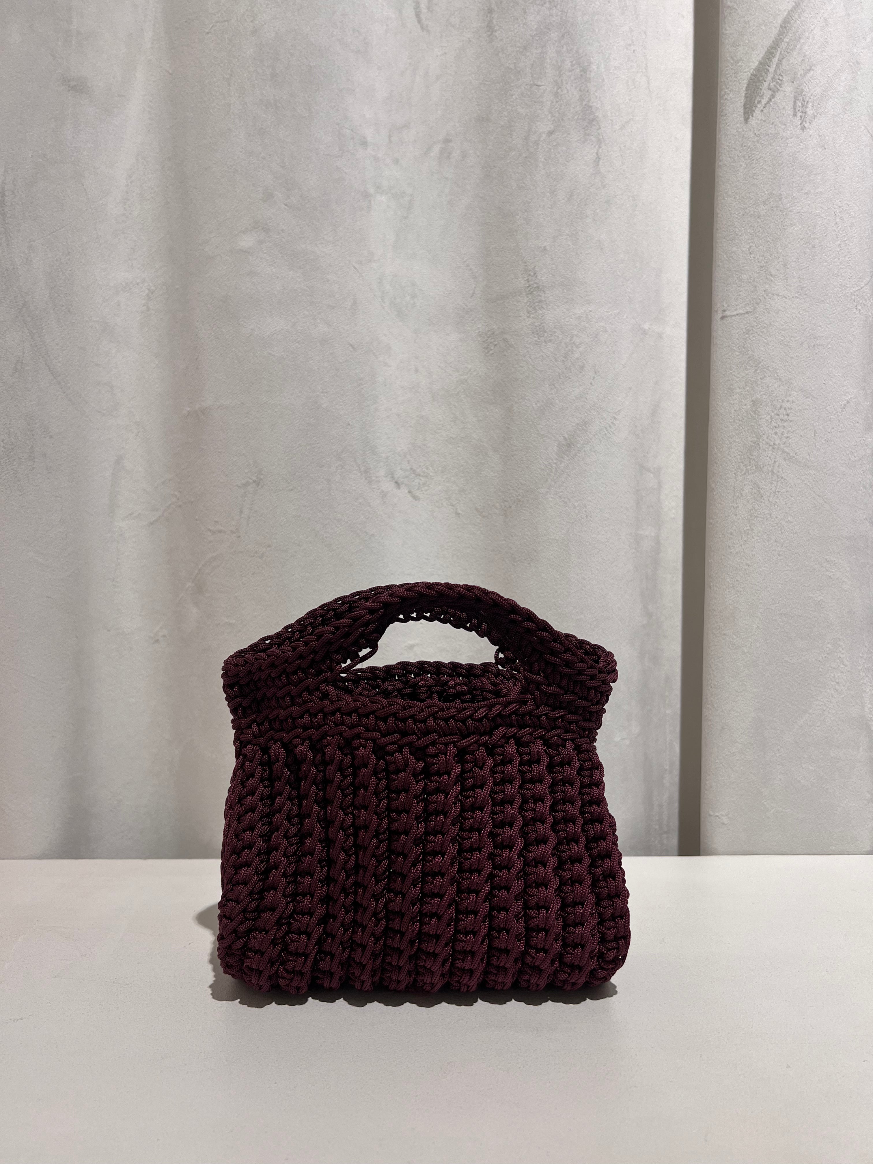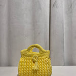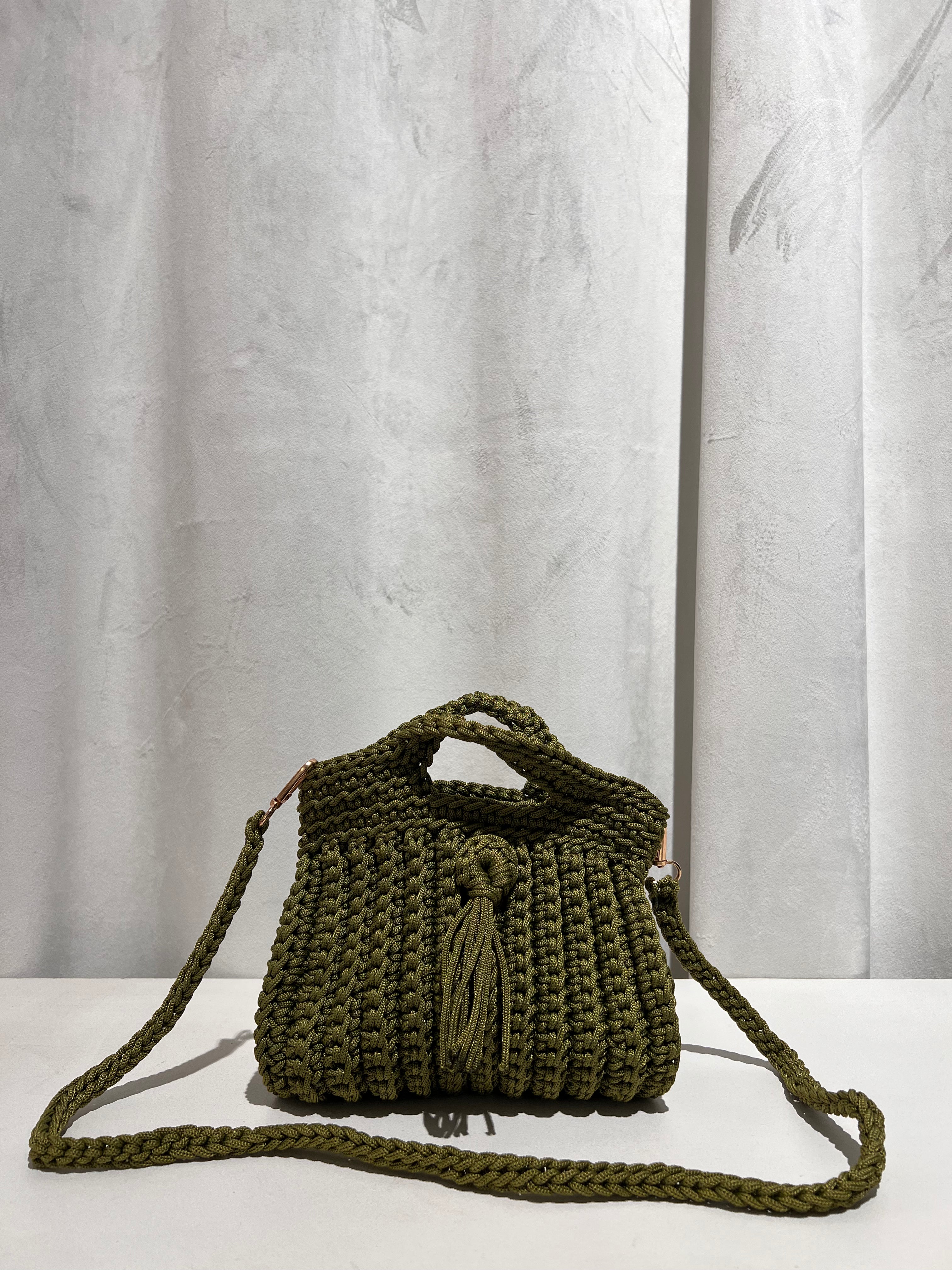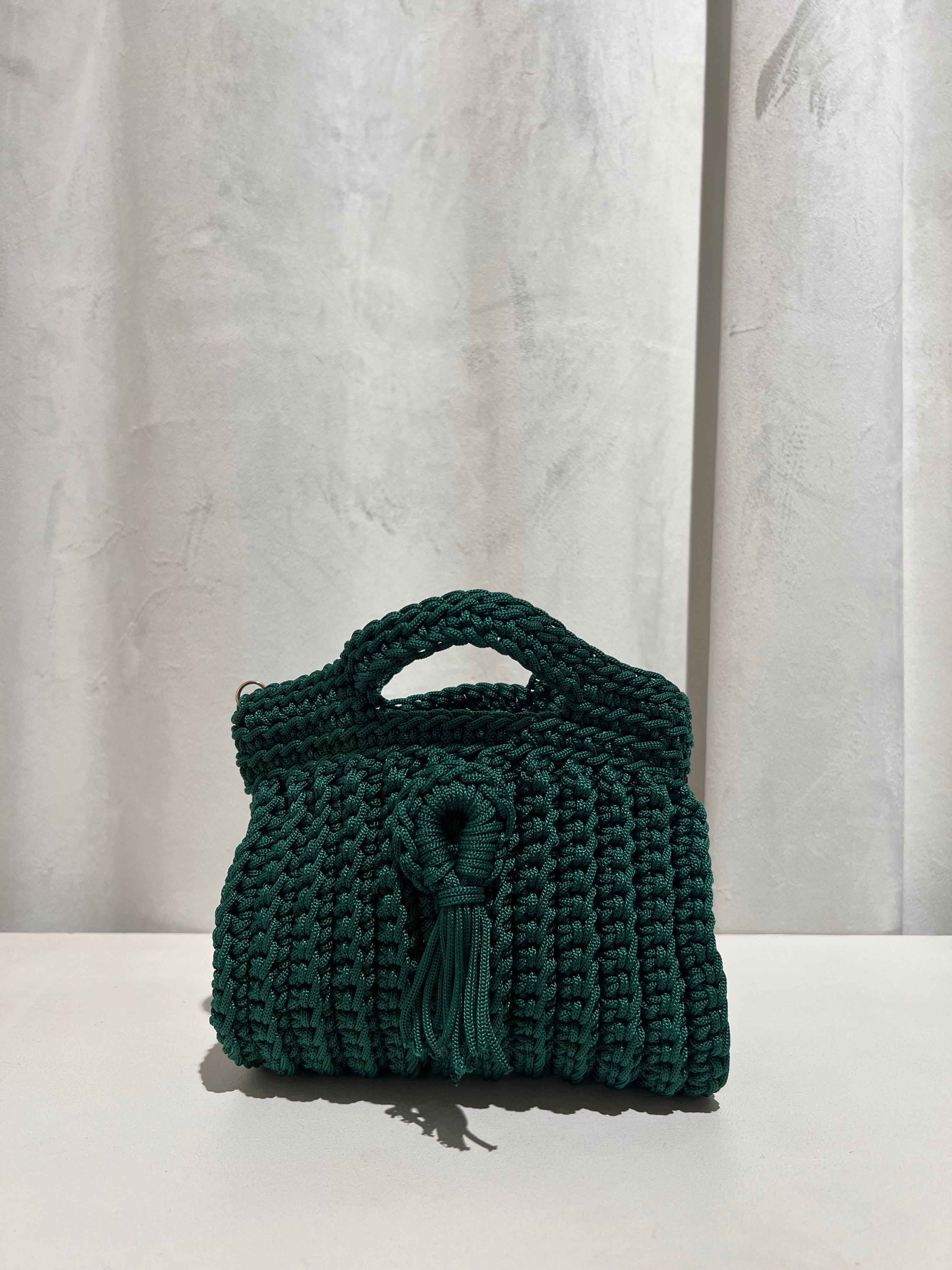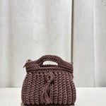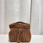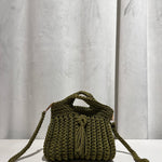 Bolso trenzado con asa y cadena de punto para colgar cruzado.