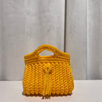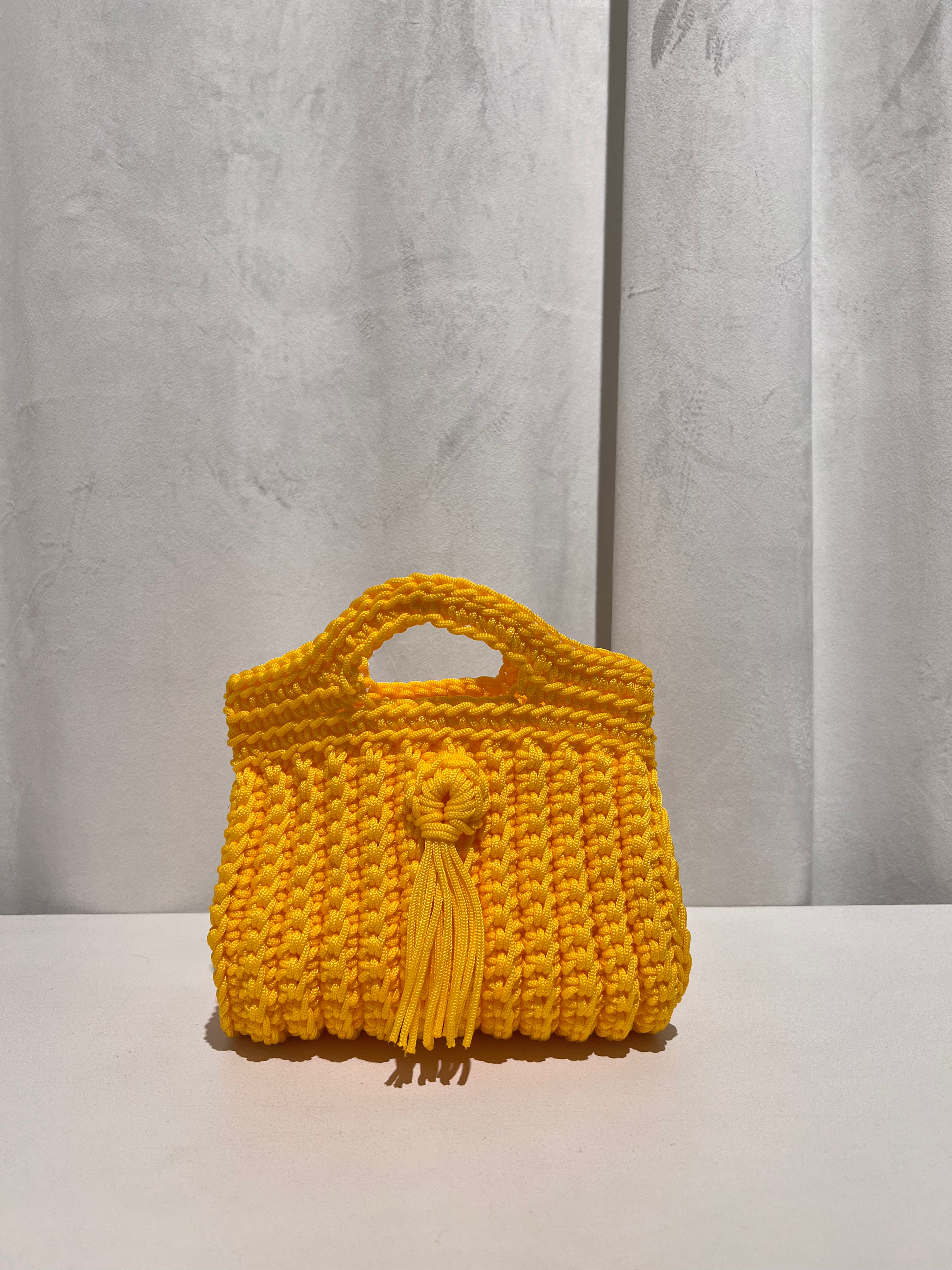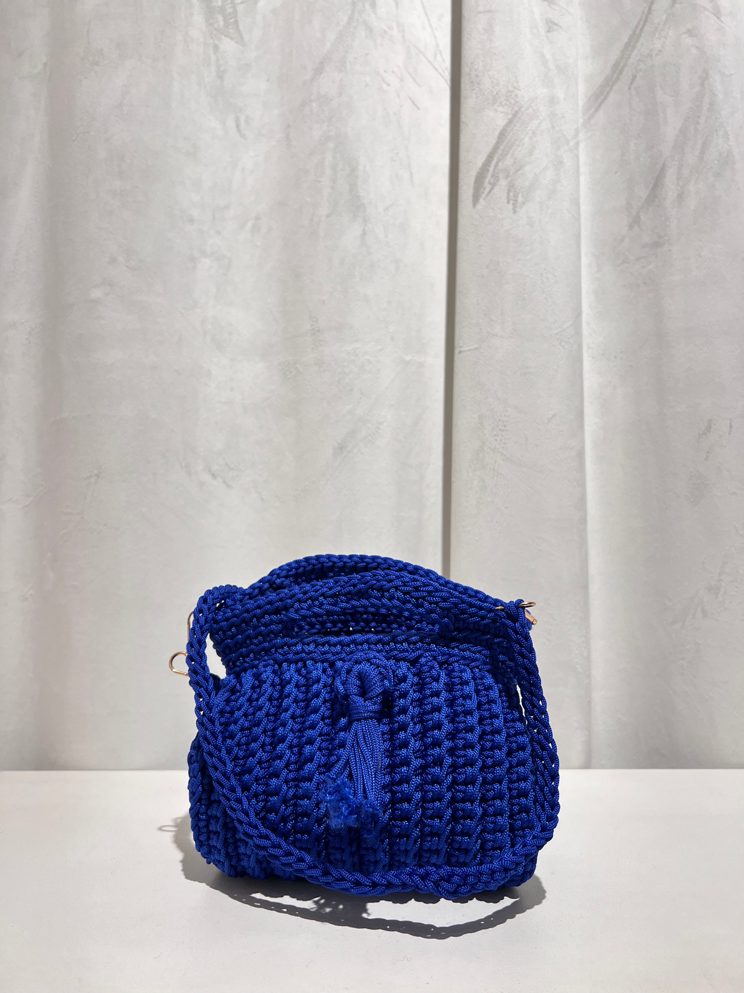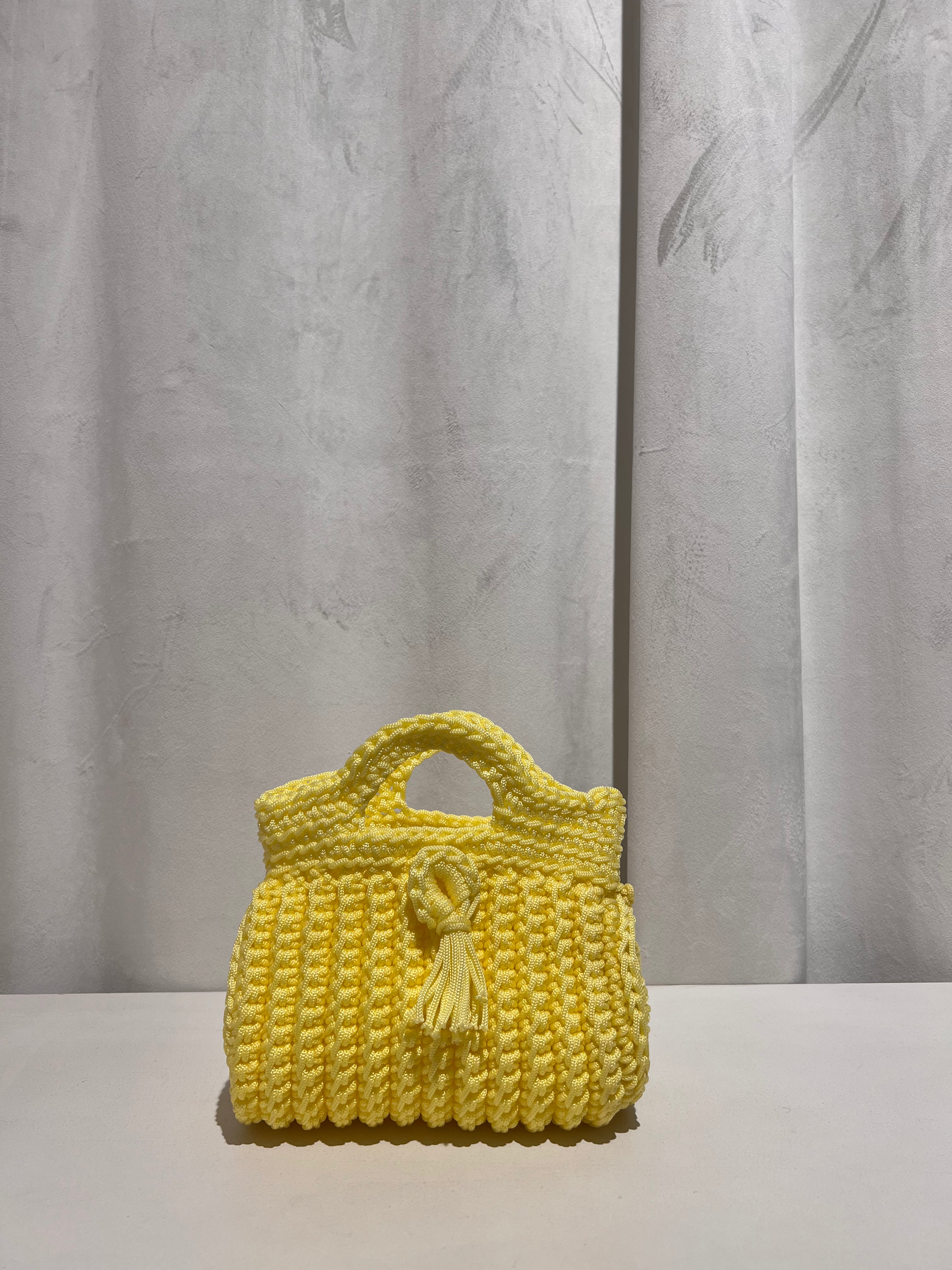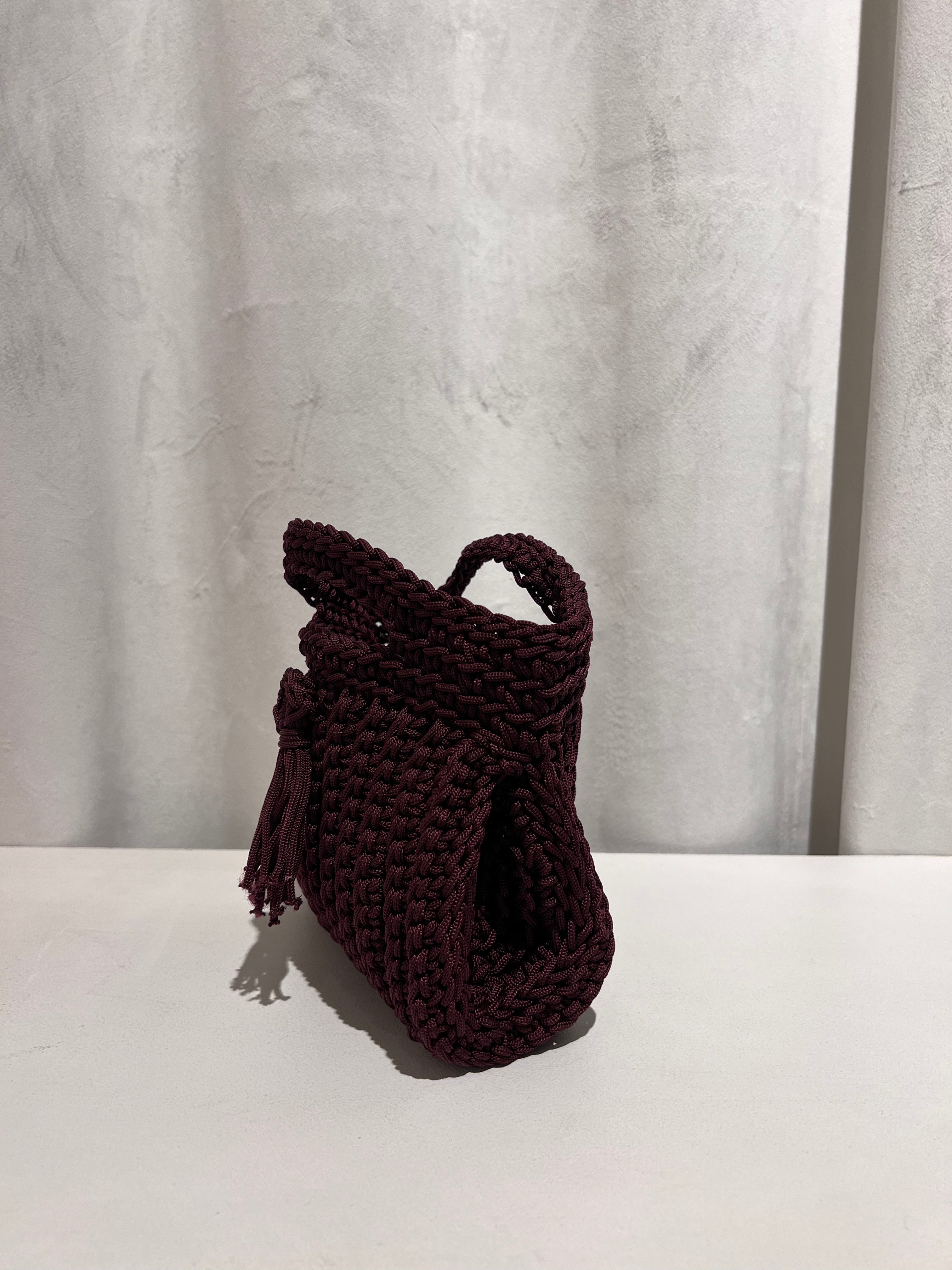 Bolso trenzado con asa y cadena de punto para colgar cruzado.