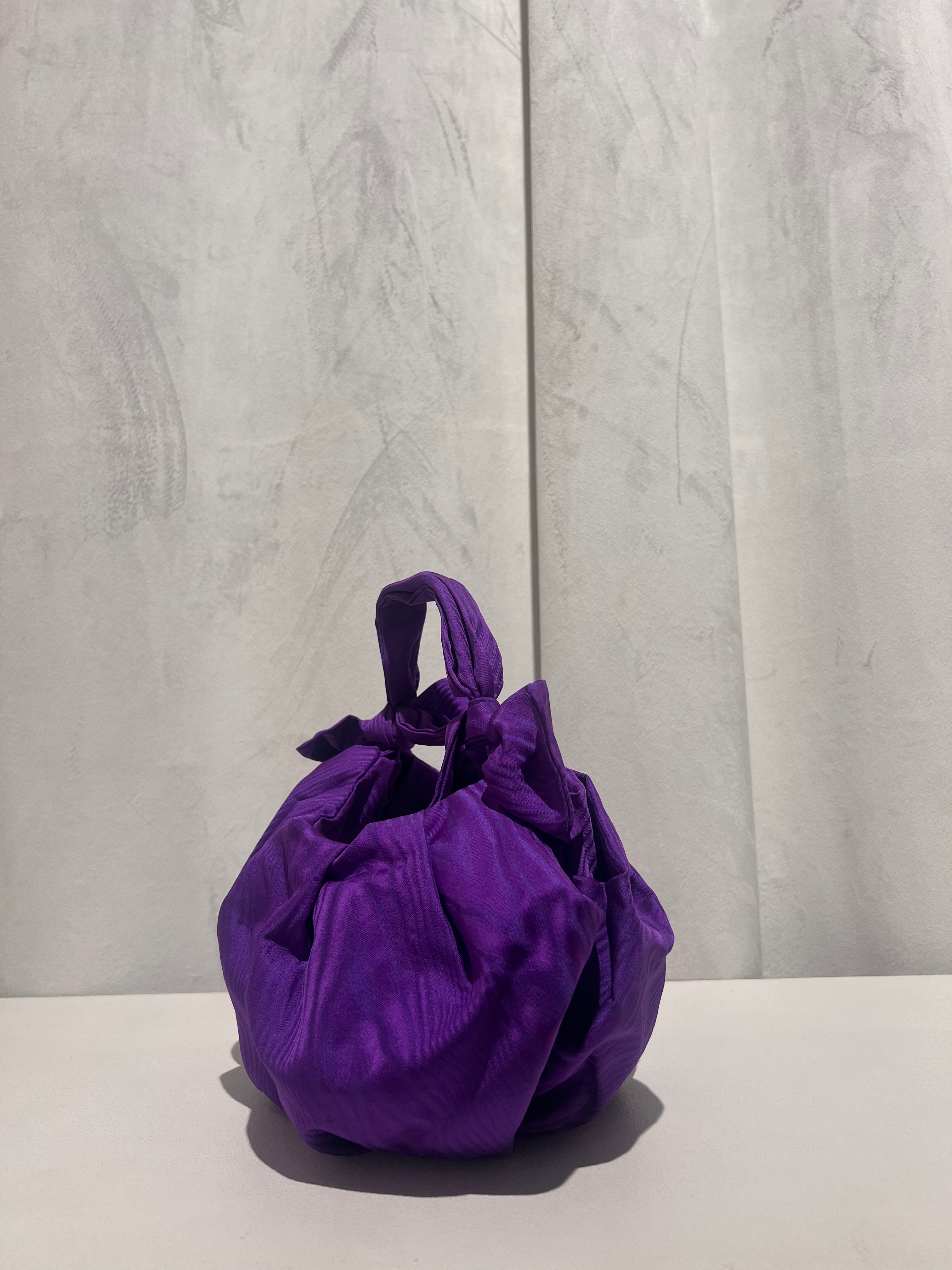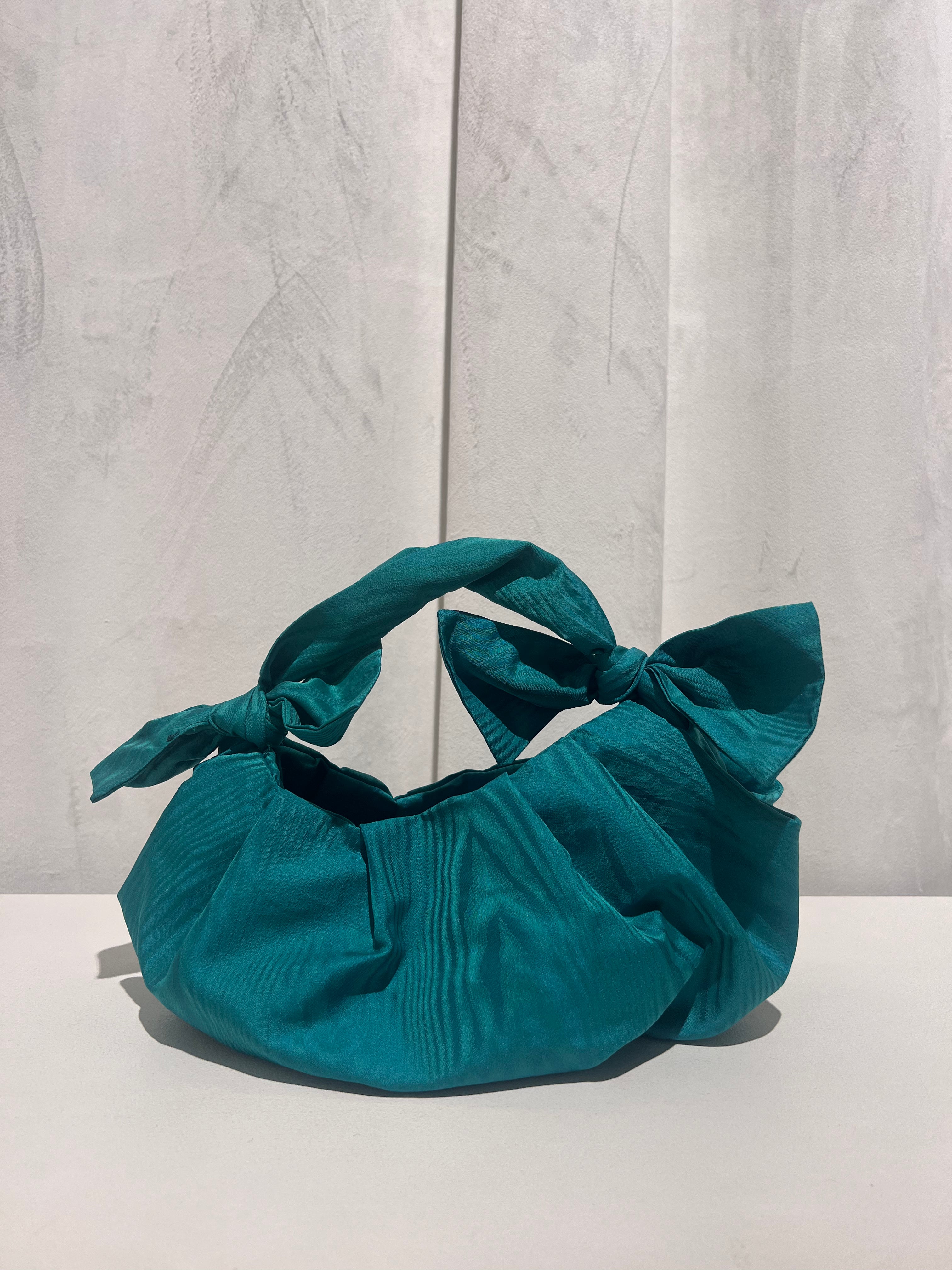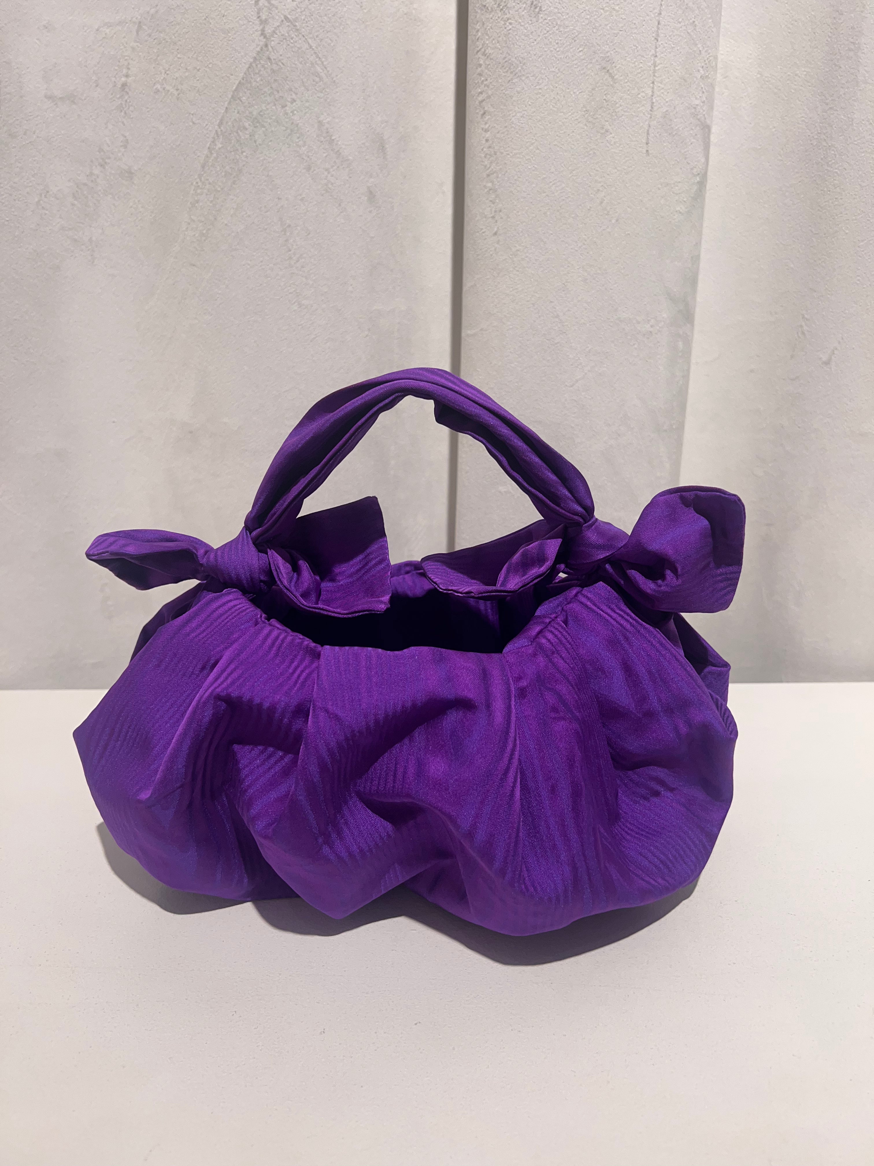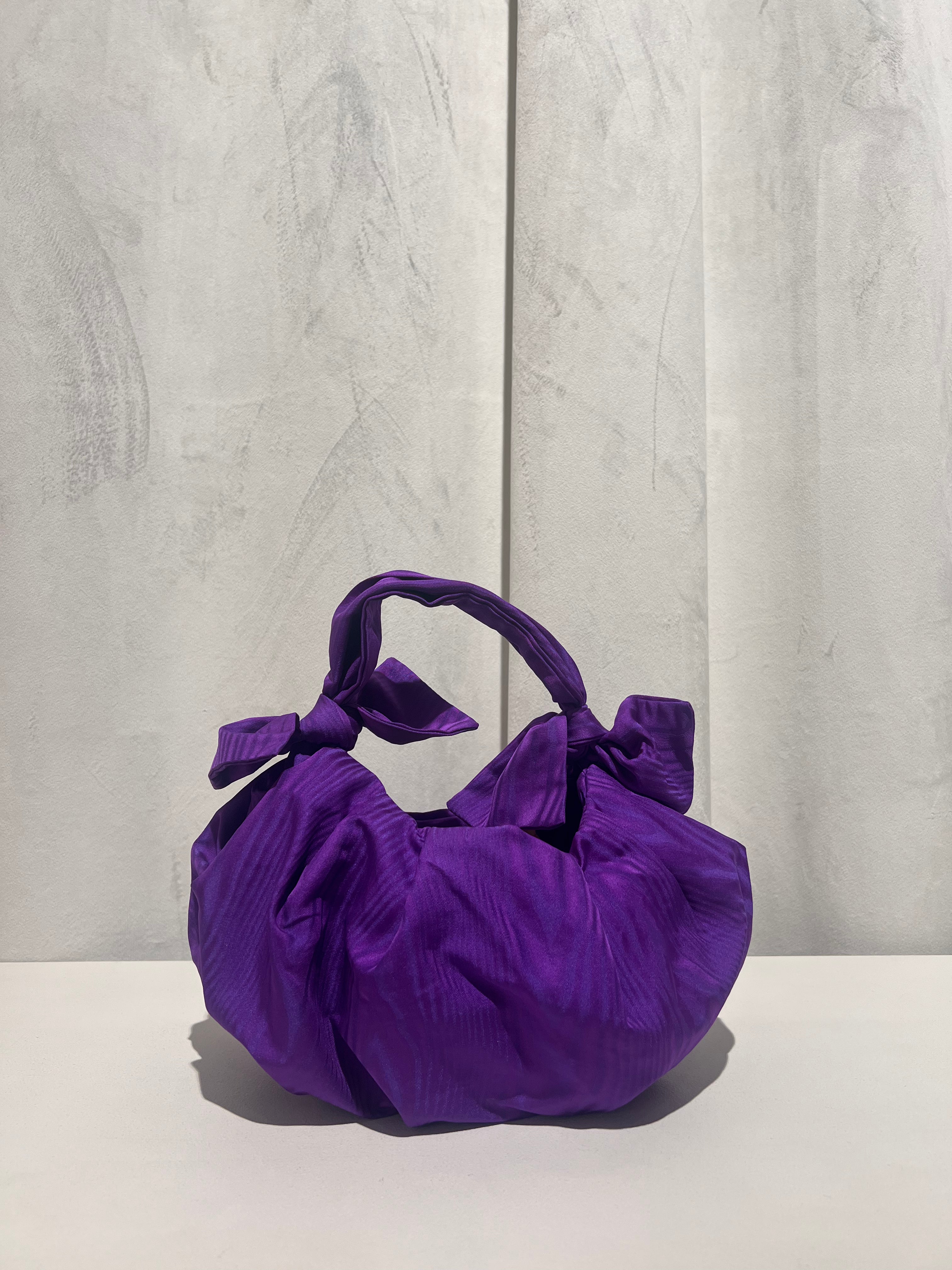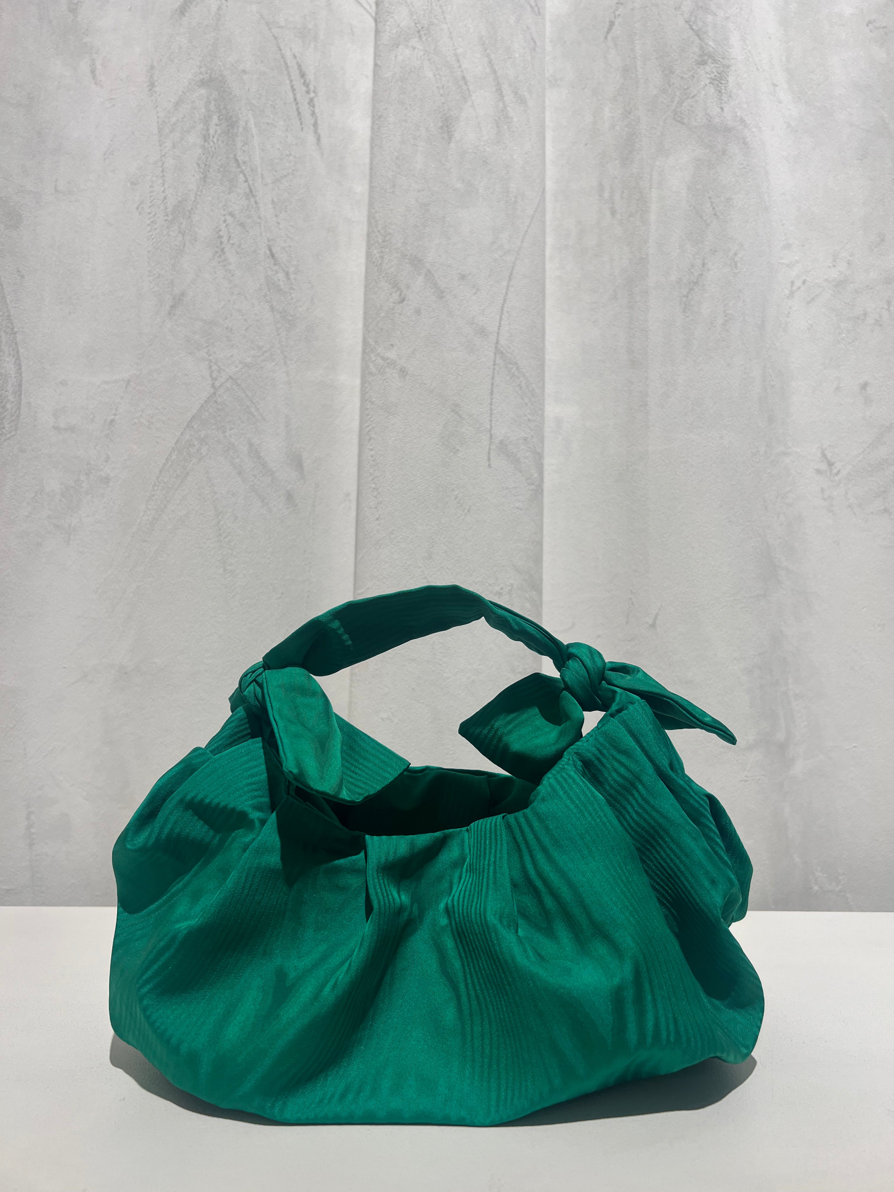 Bolso de tafetán con asa de mano y pliegues para dar más profundidad al bolso.
