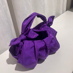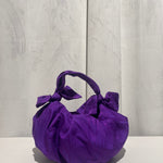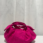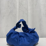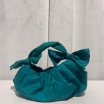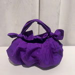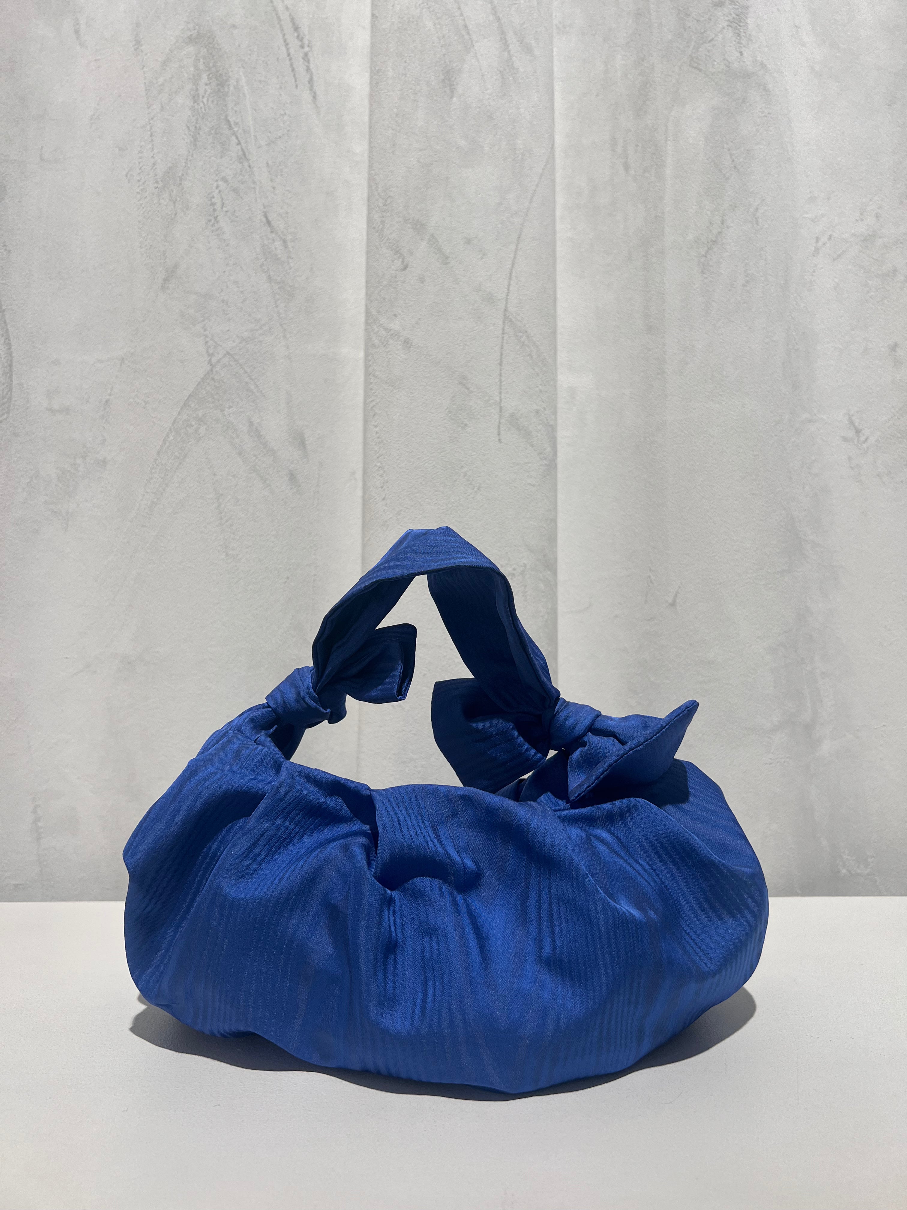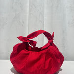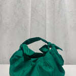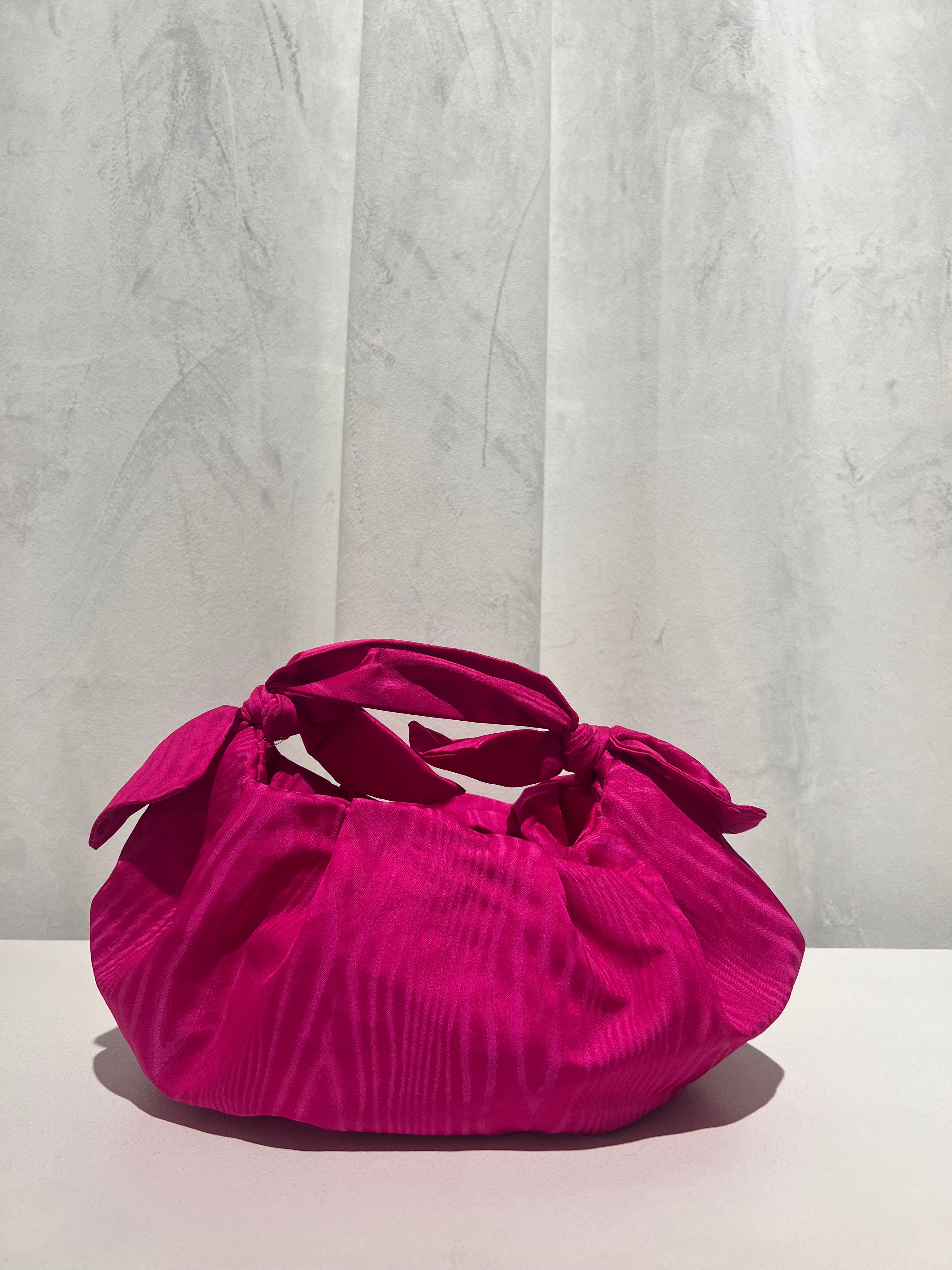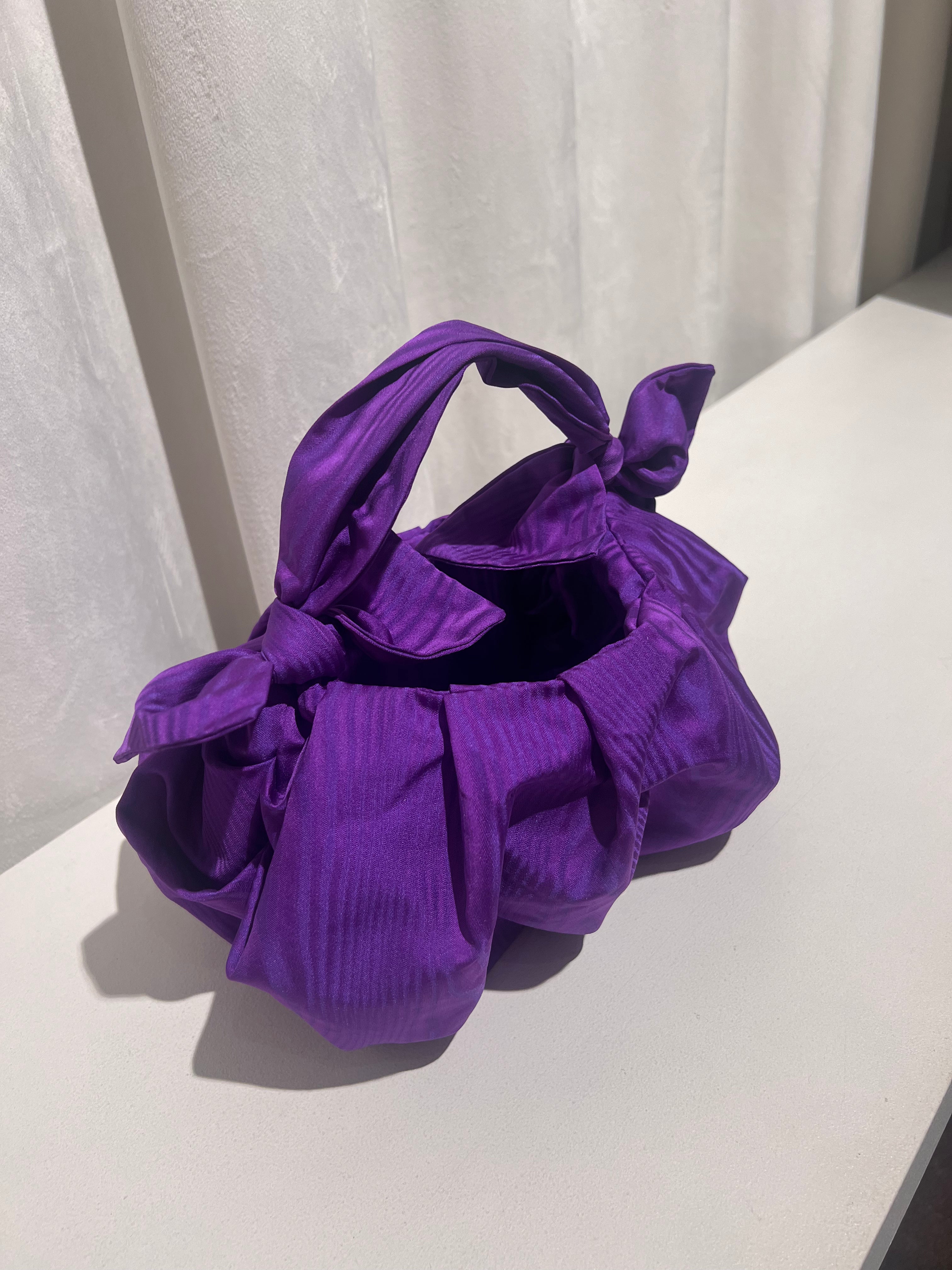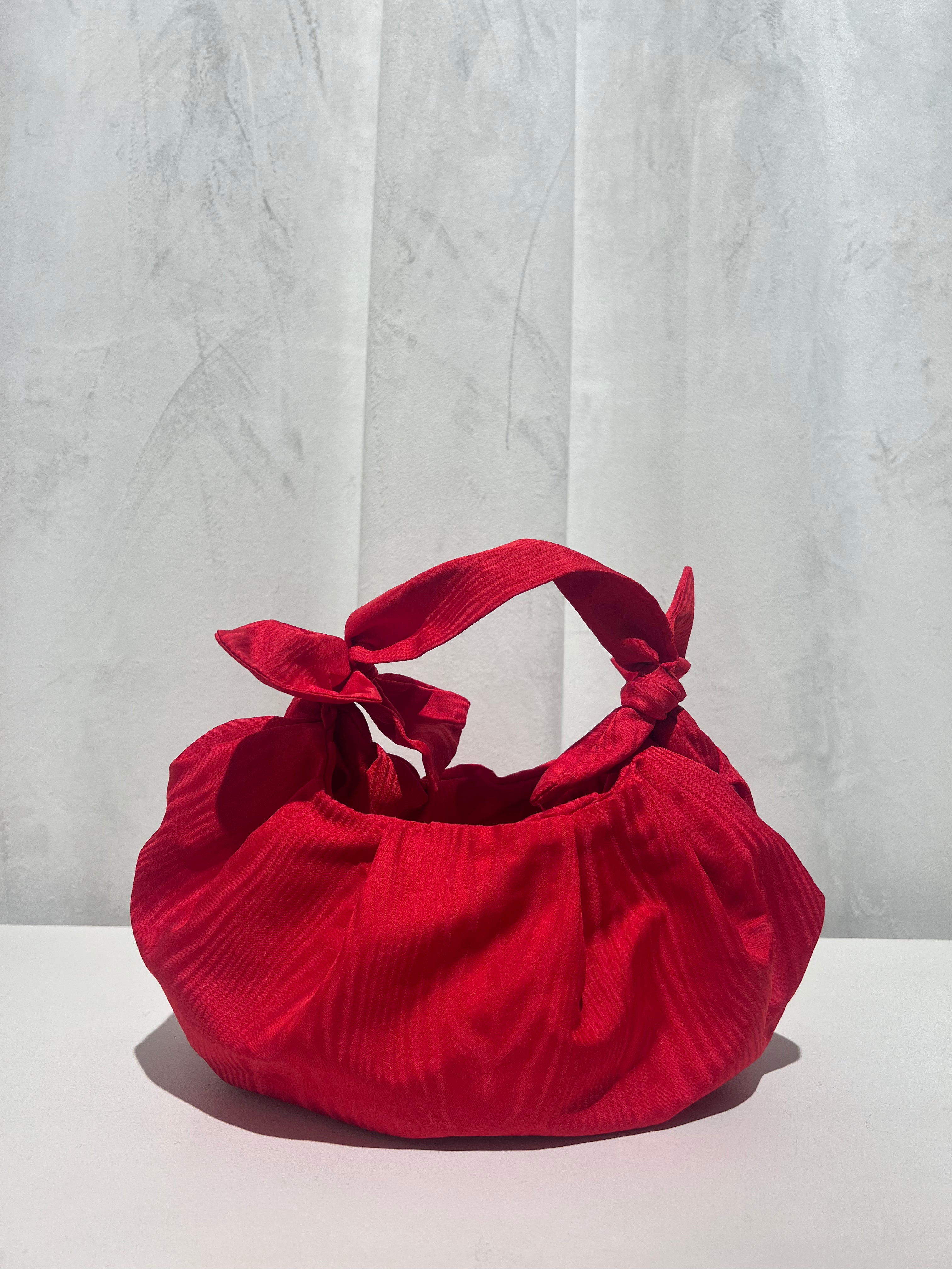 Bolso de tafetán con asa de mano y pliegues para dar más profundidad al bolso.