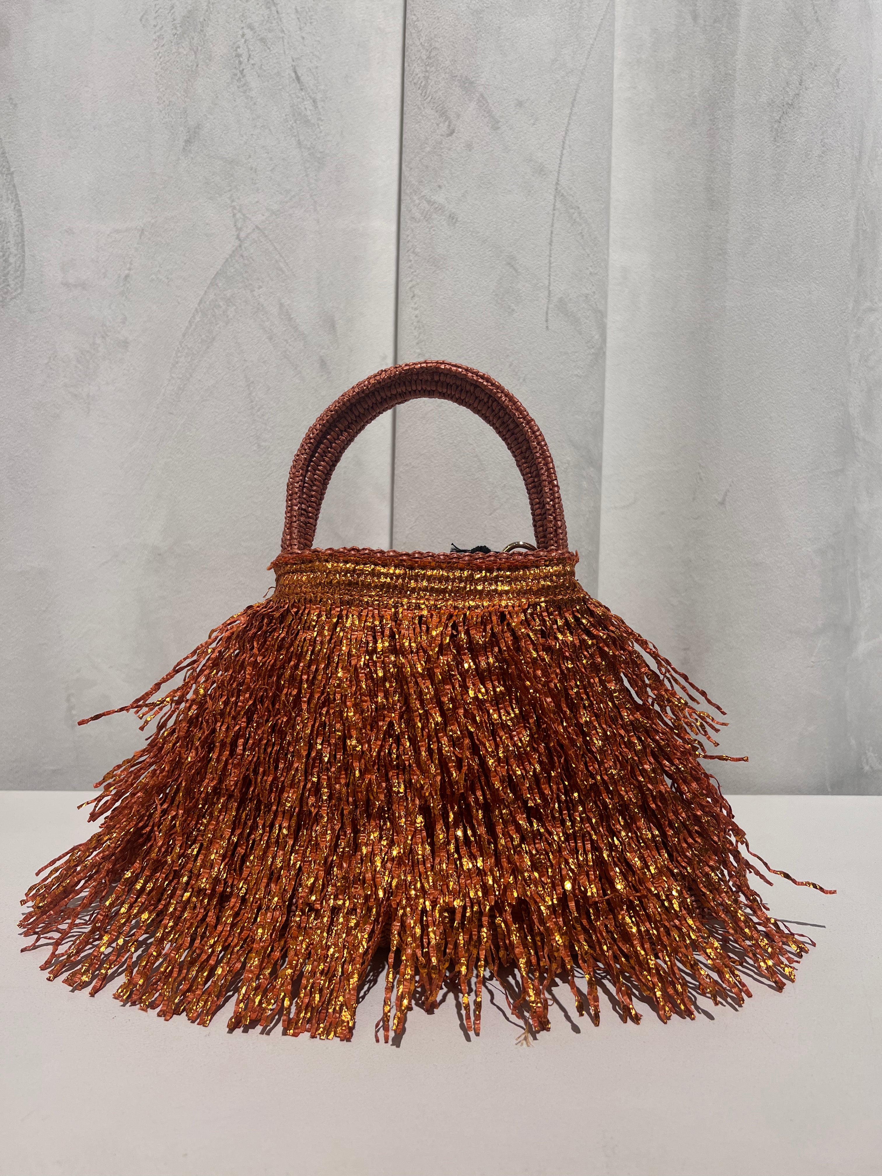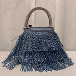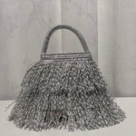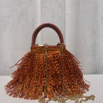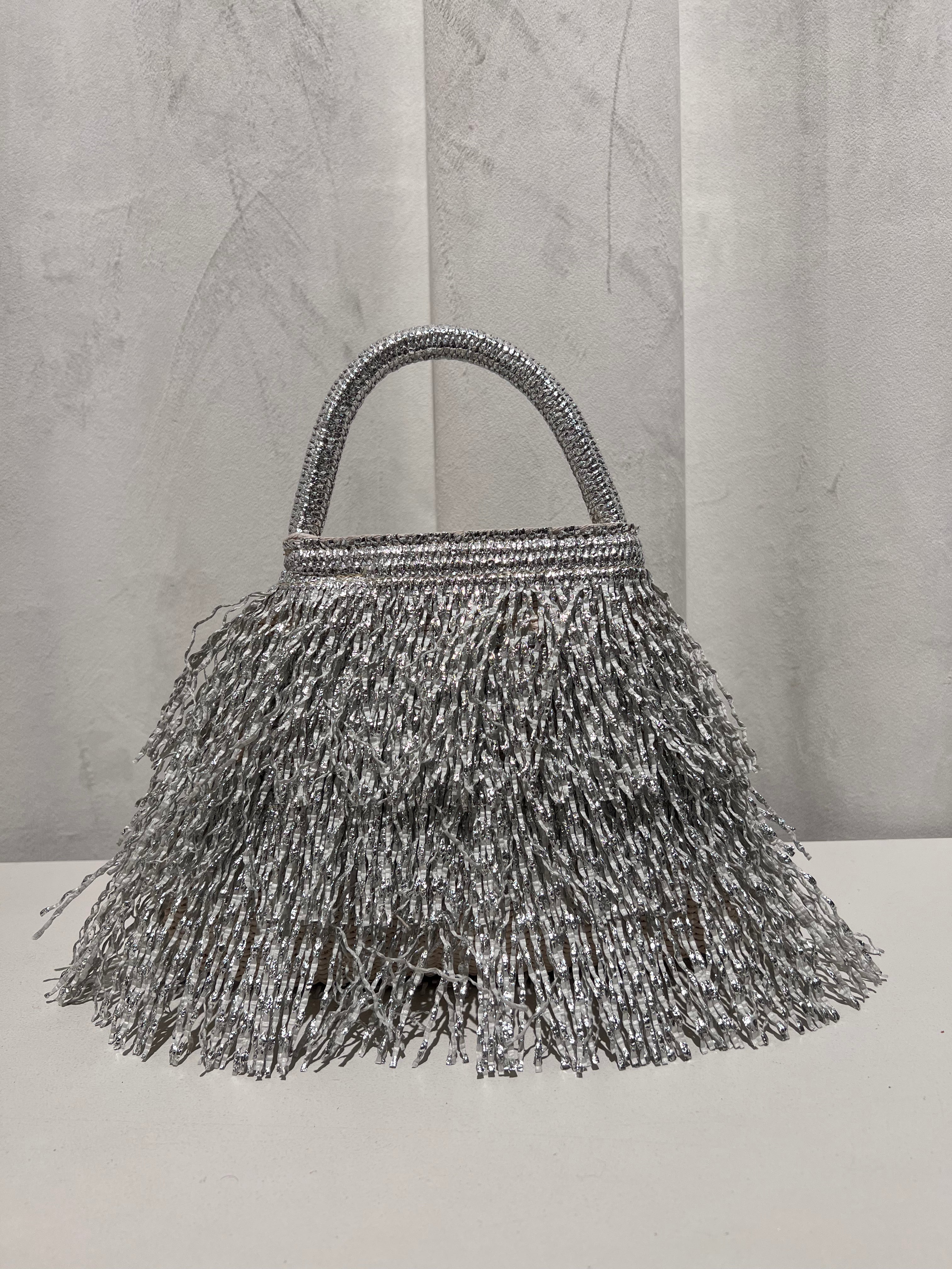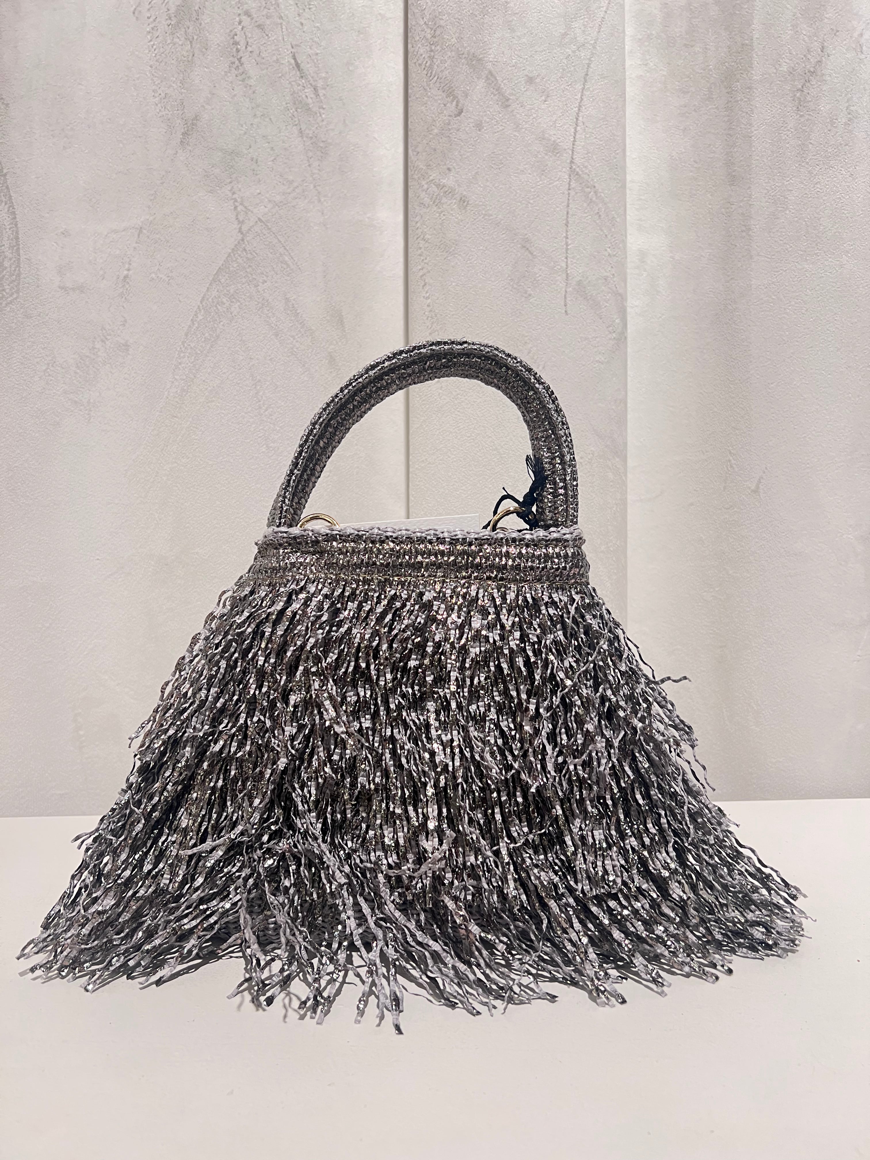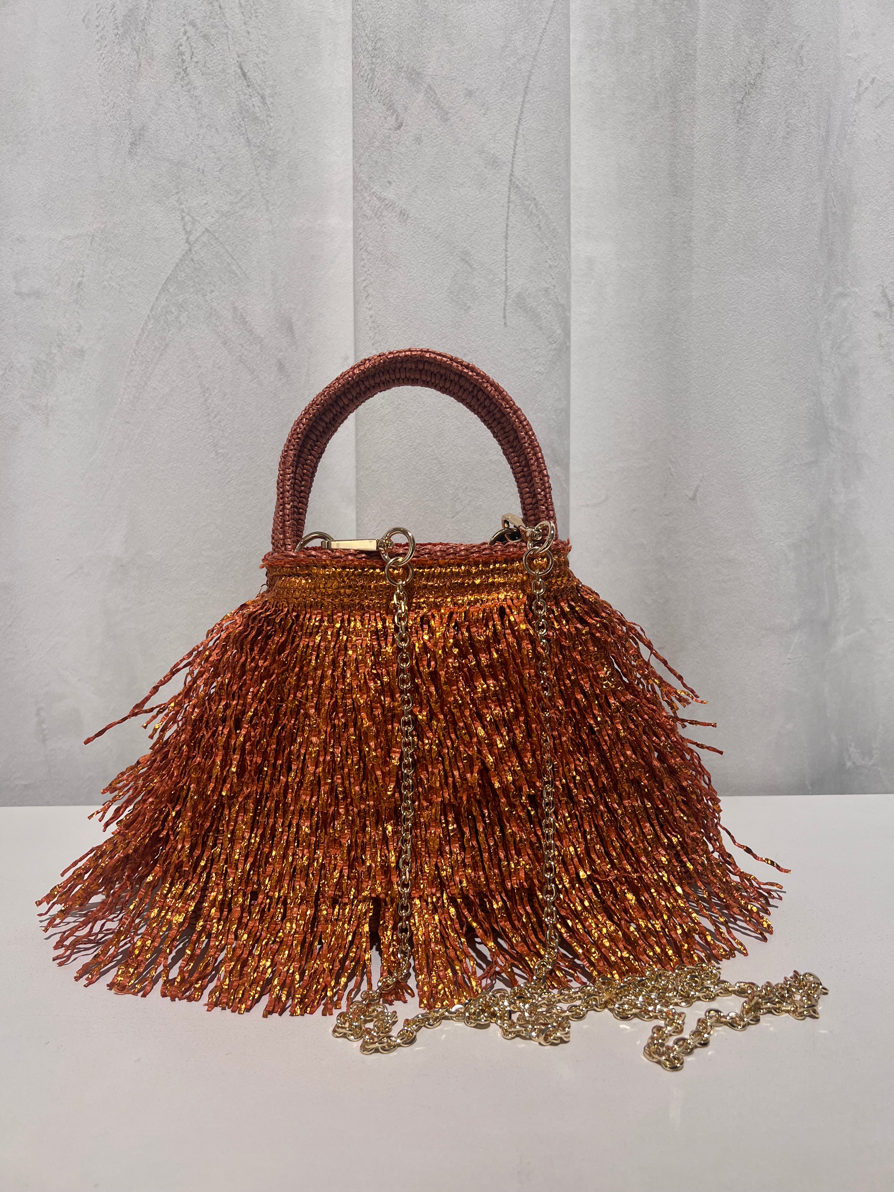 Bolso de flecos lurez con asa de mano y cadena a tono para cruzar