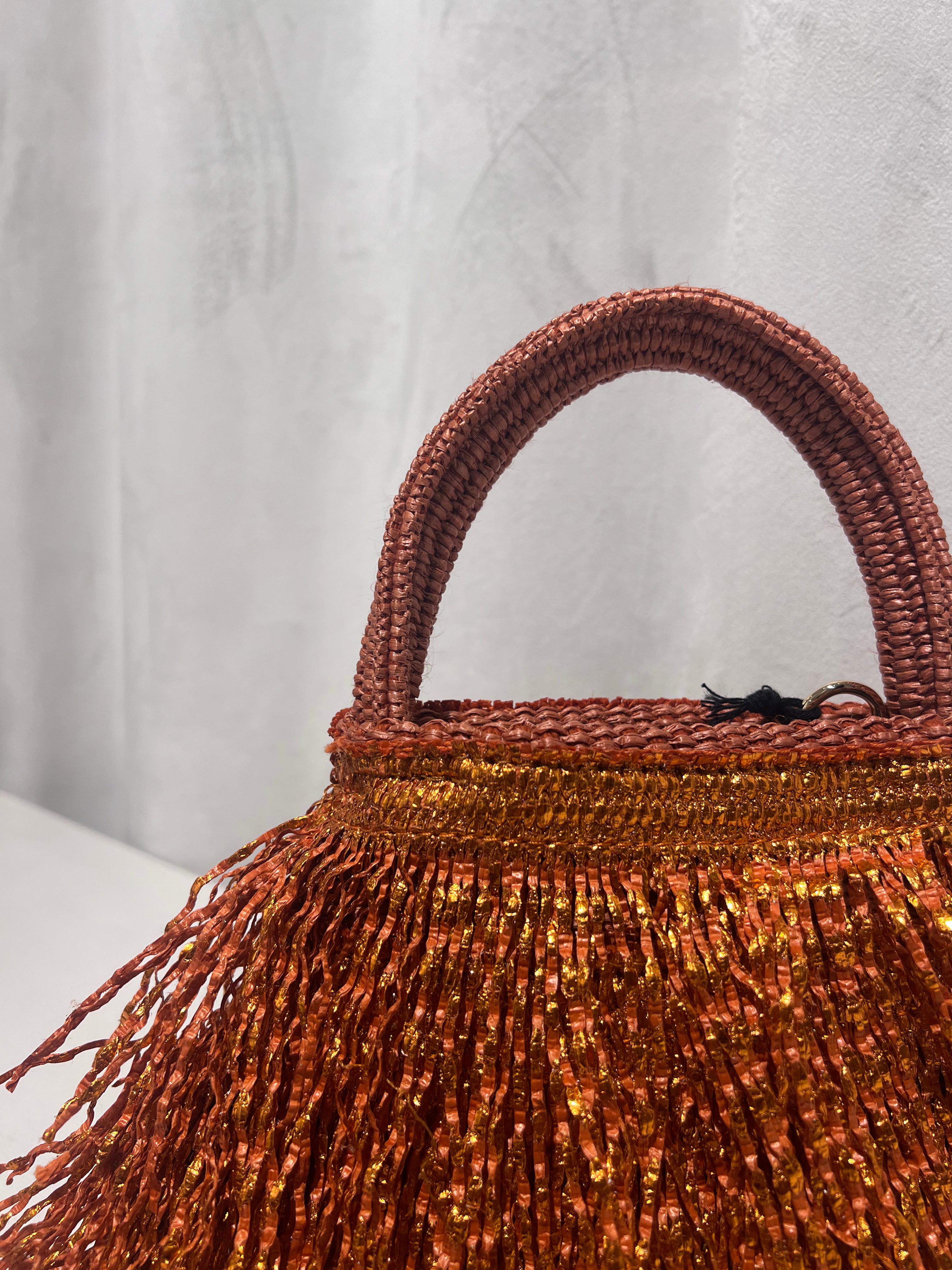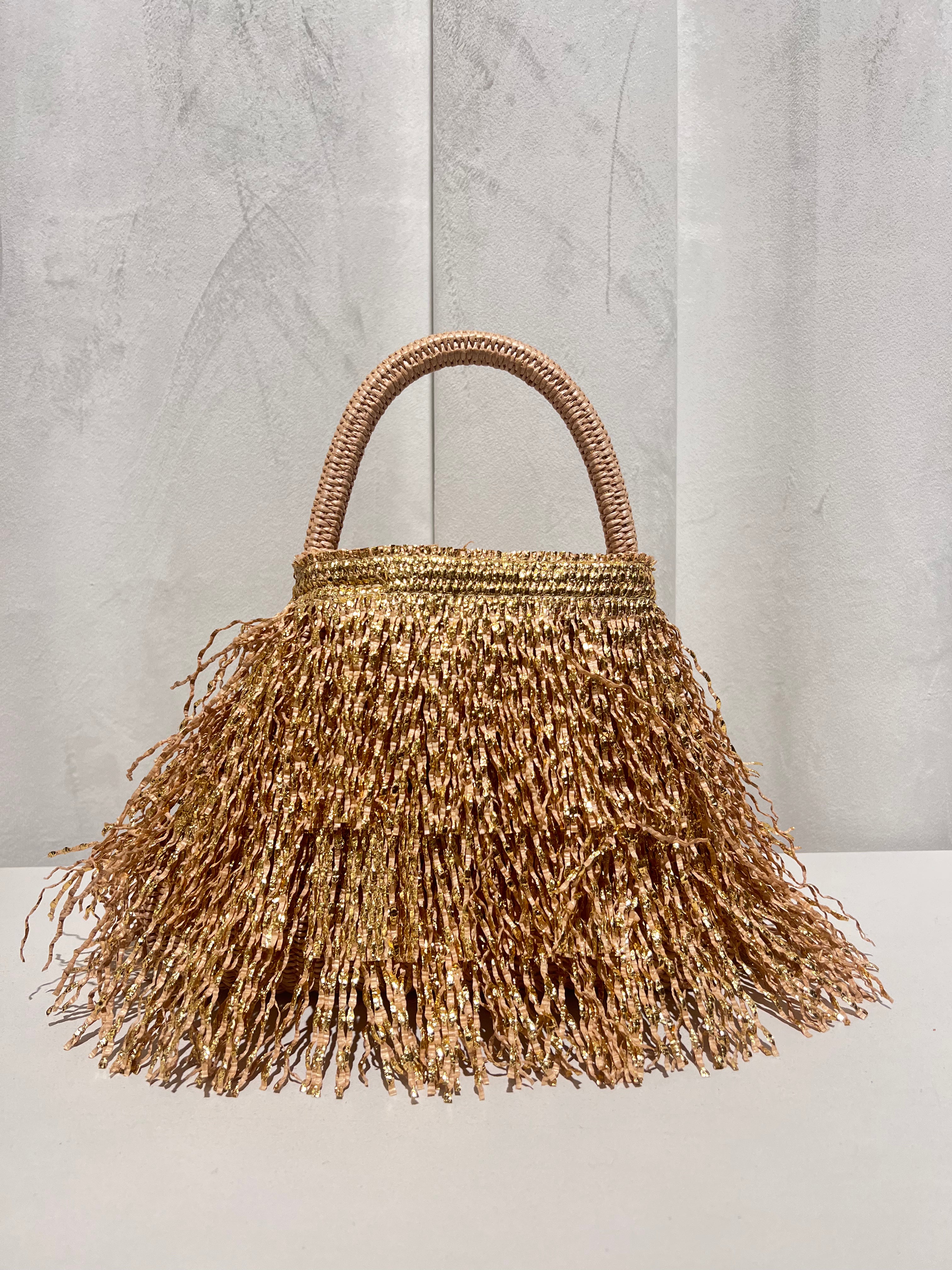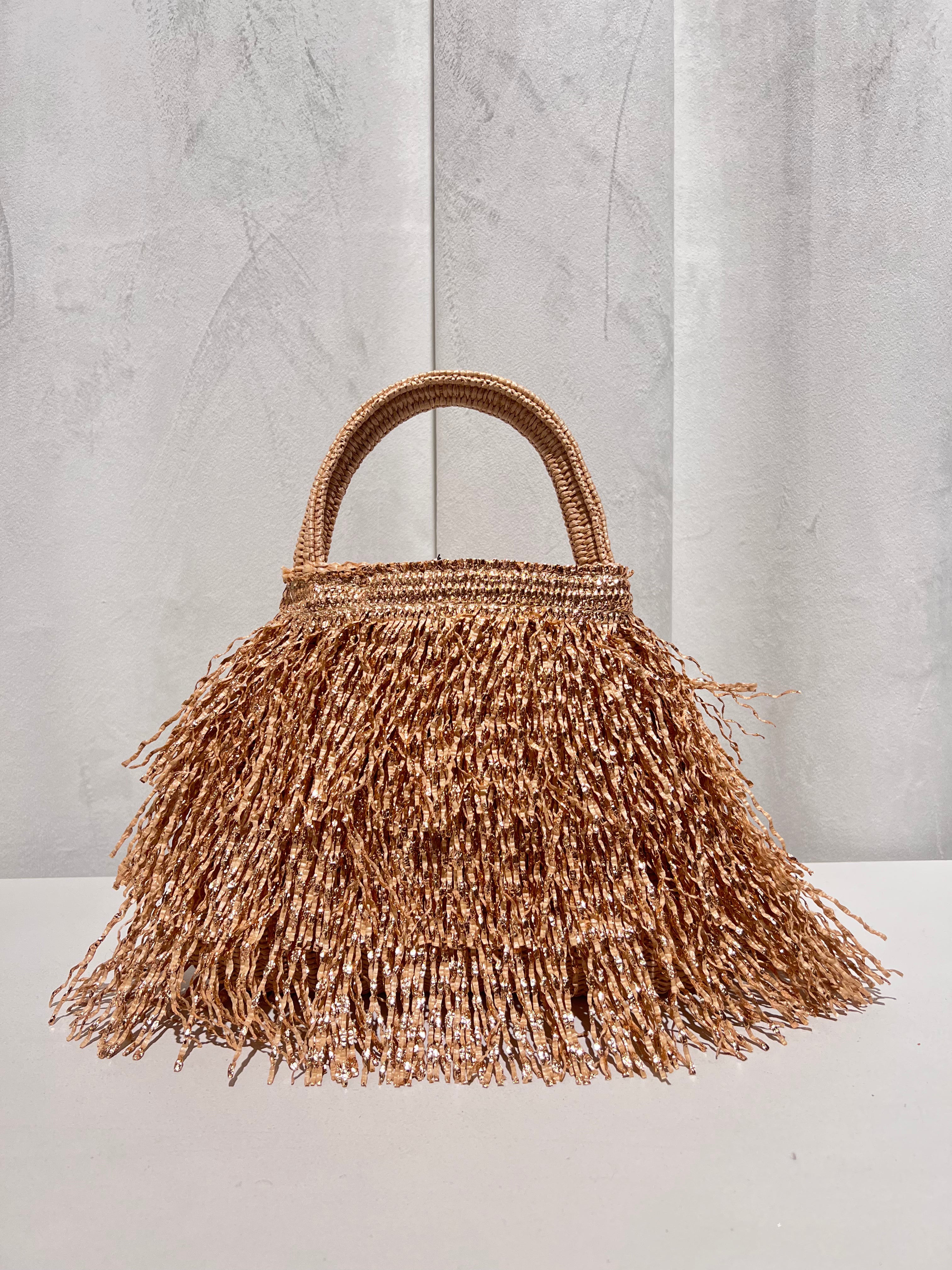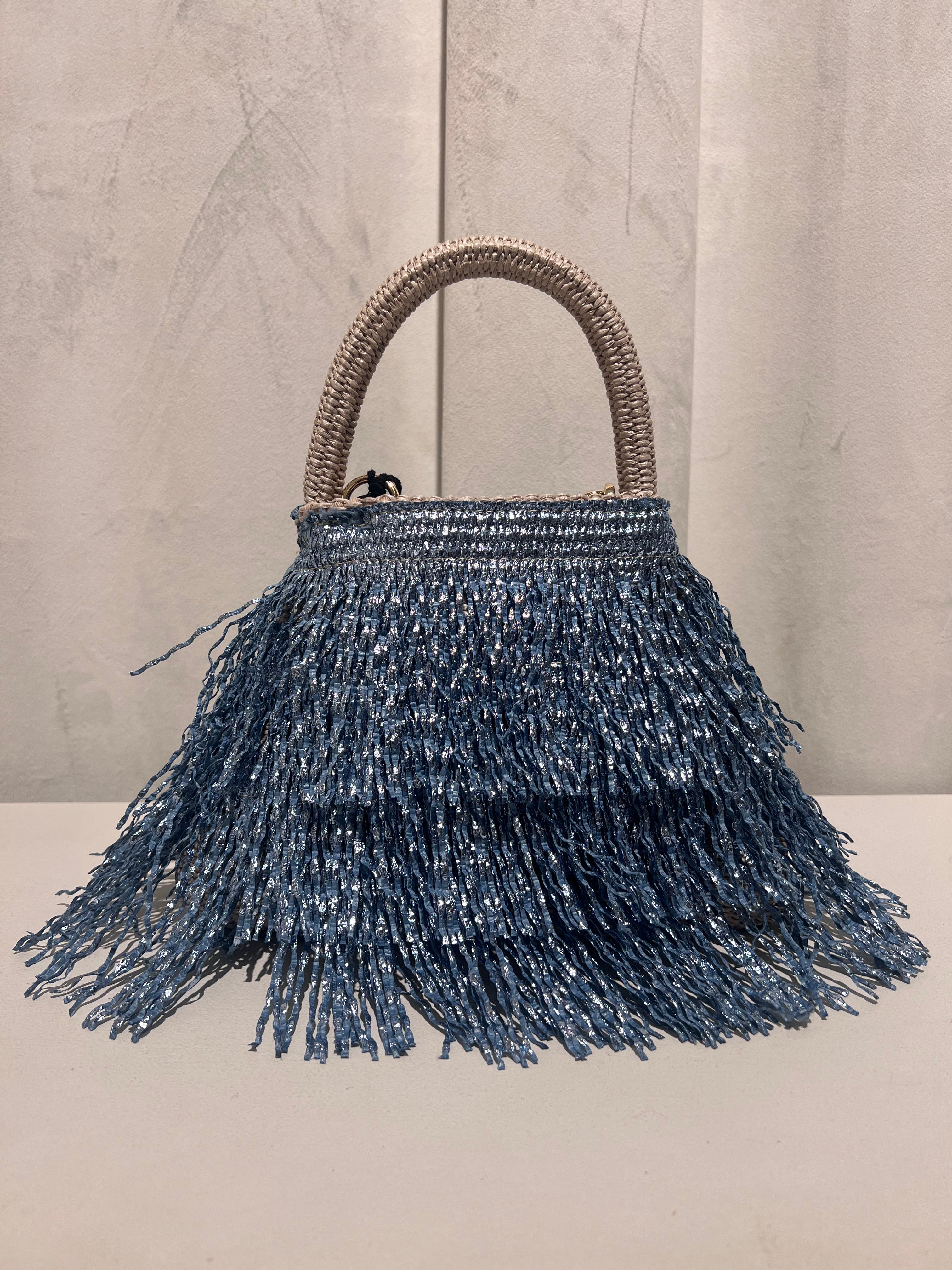 Bolso de flecos lurez con asa de mano y cadena a tono para cruzar