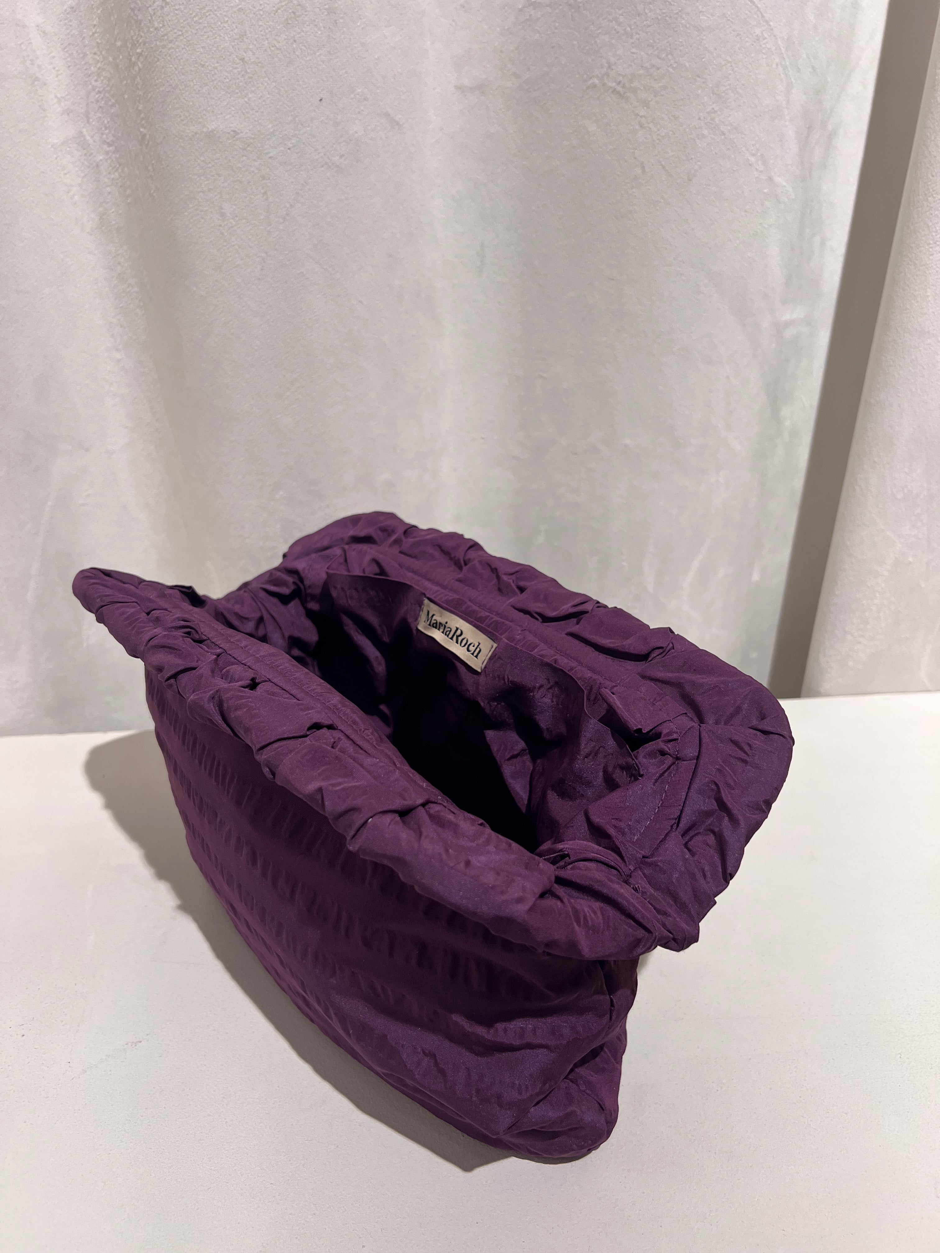 Clutch diseño MariaRoch con tejido de tafetán, bolsillo interior y asas para colgar cadena.