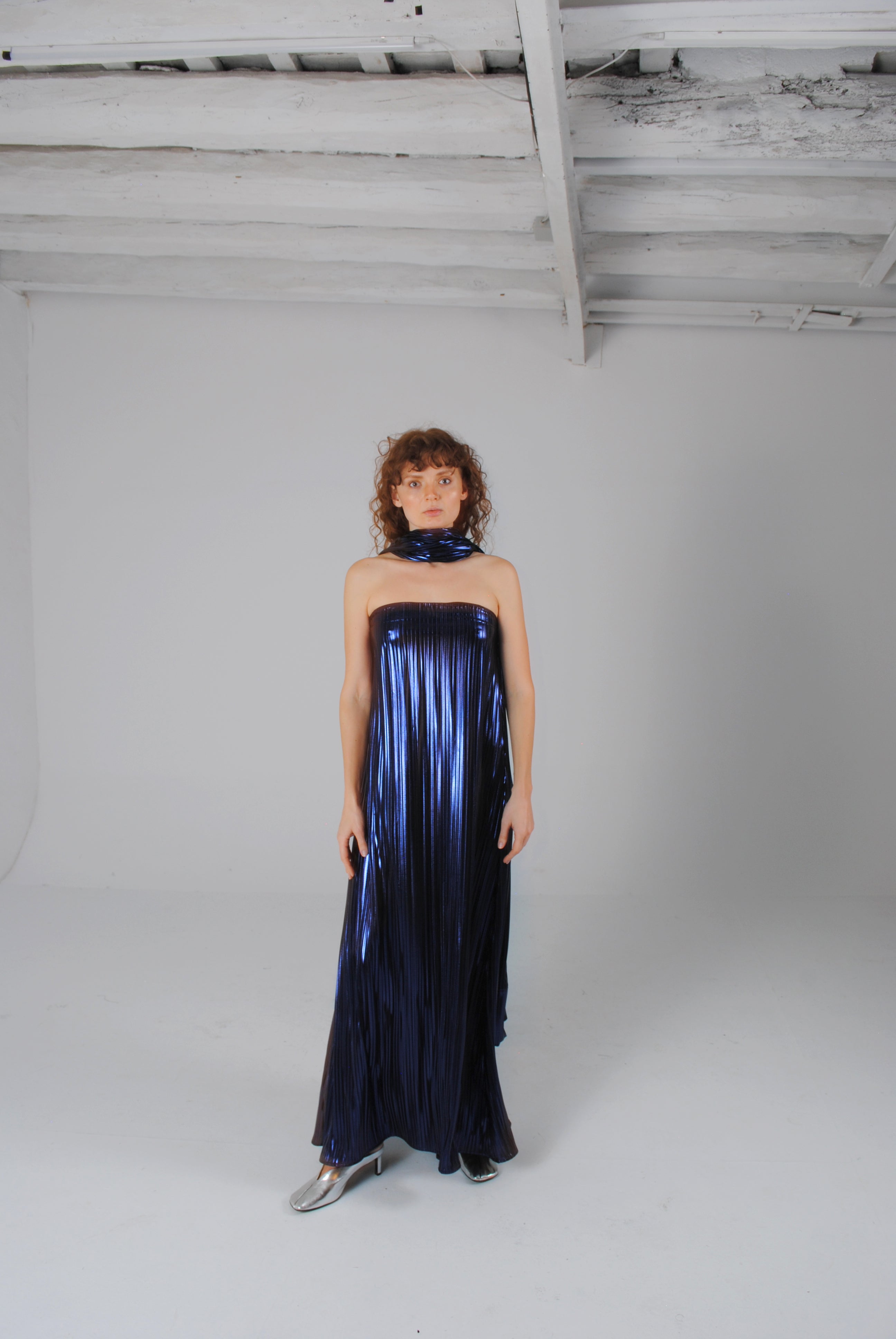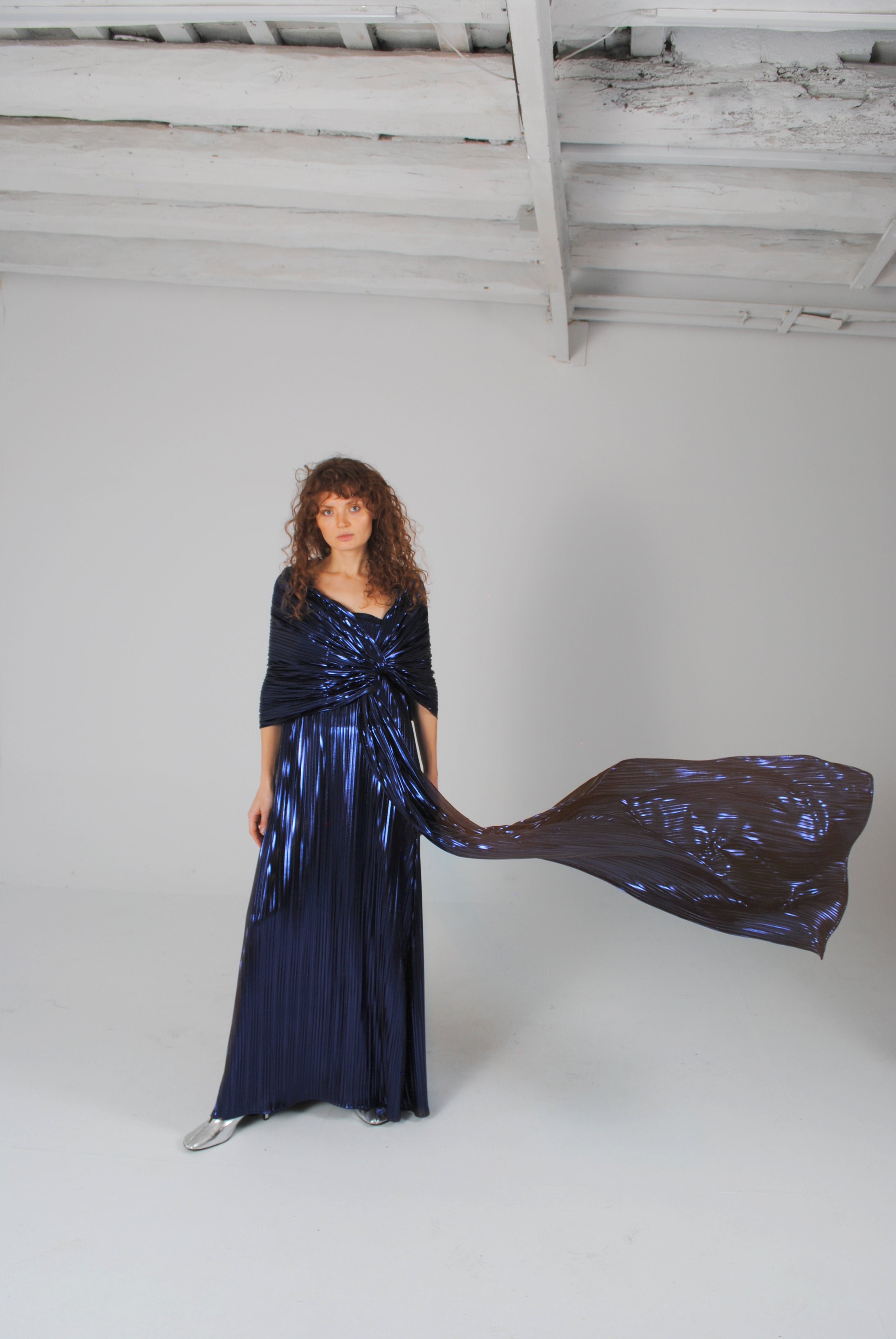 Chal de tejido brillante y plisado de ceremonia para combinar con vestido LUMINOS.