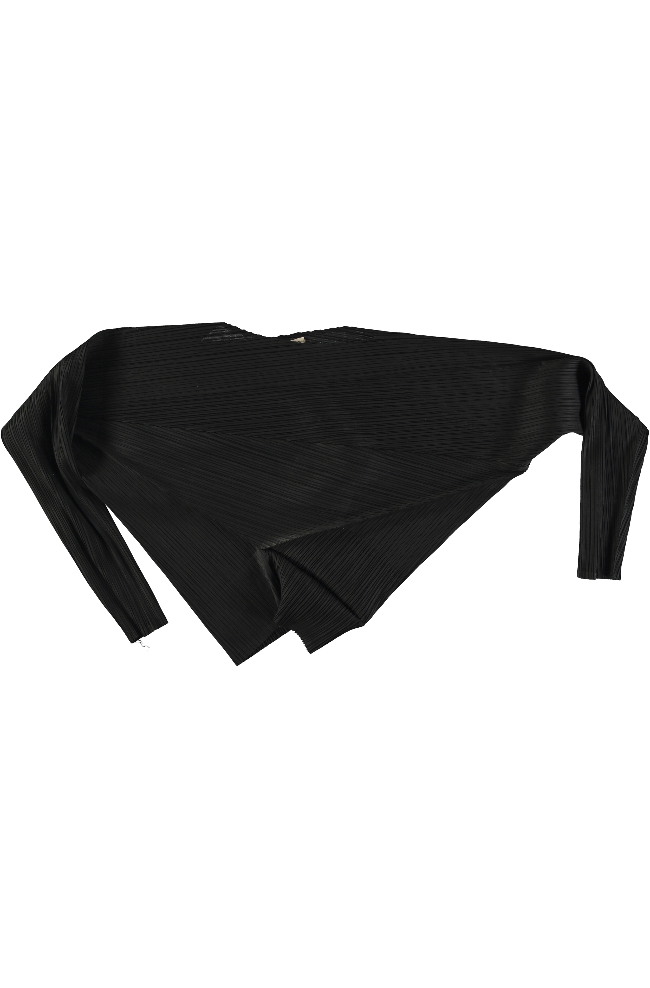 Top plisado fluido cuello plano y manga tipo murciélago.