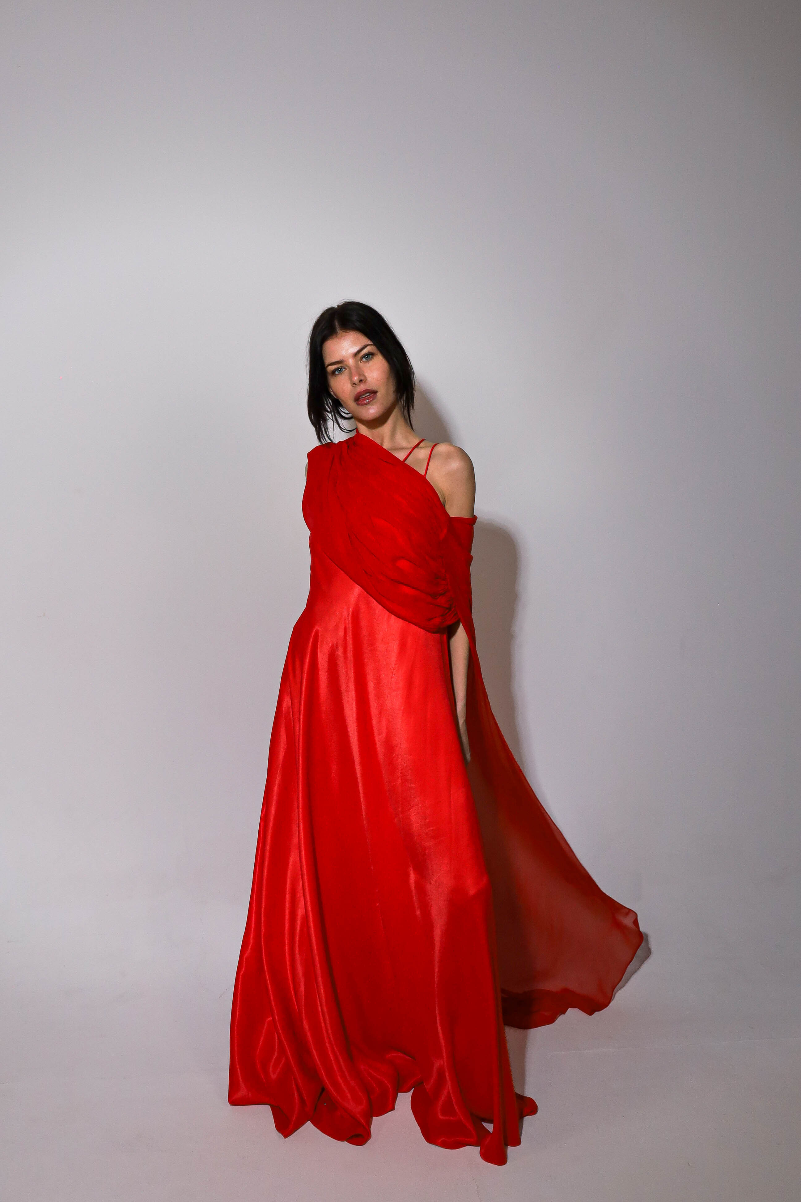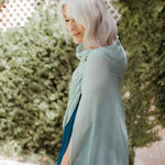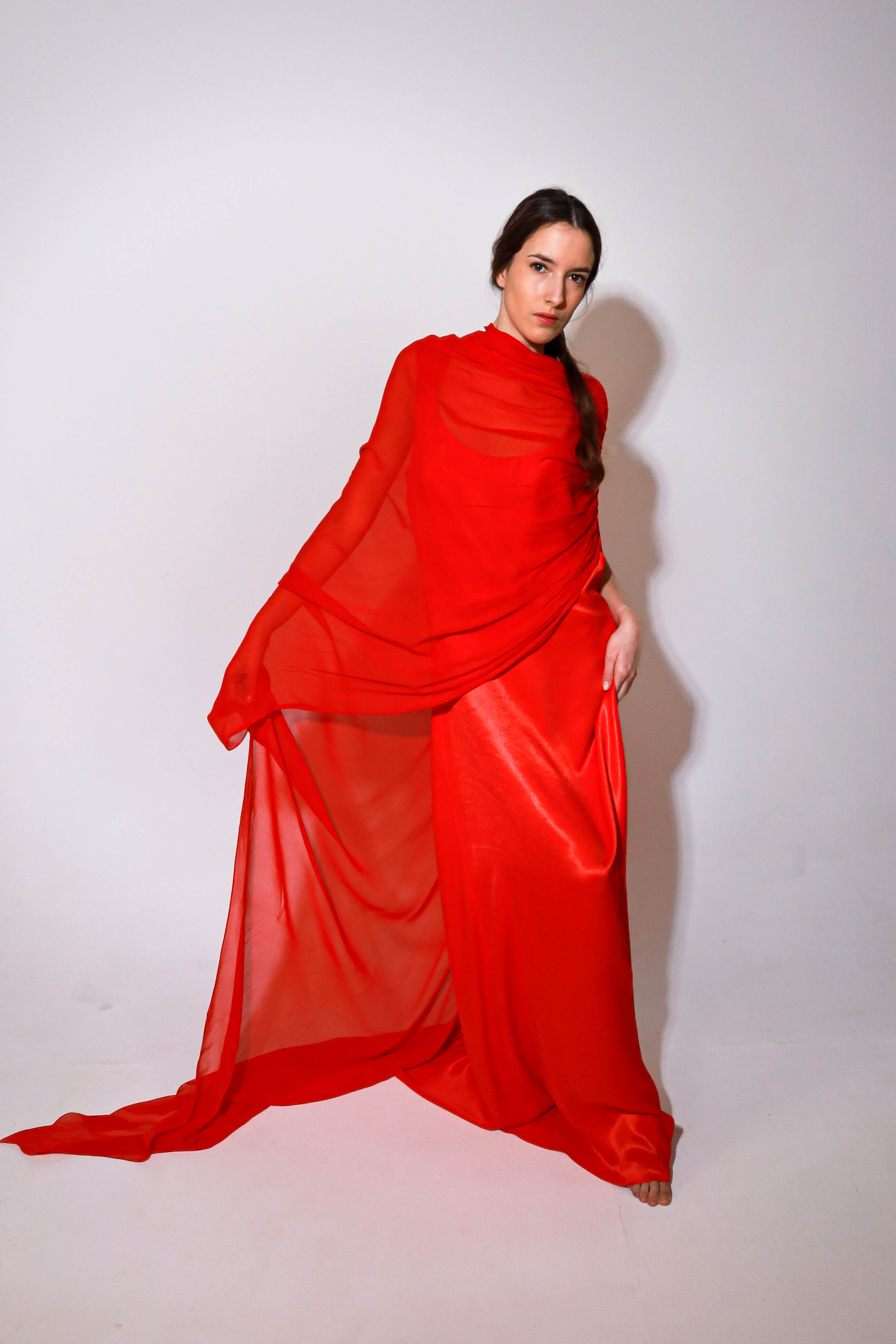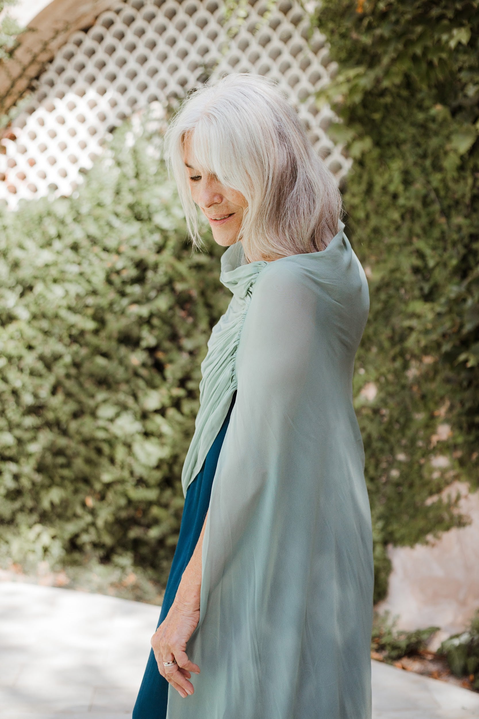 Capa asimétrica de gasa cubre hombros con fruncido en el lateral.