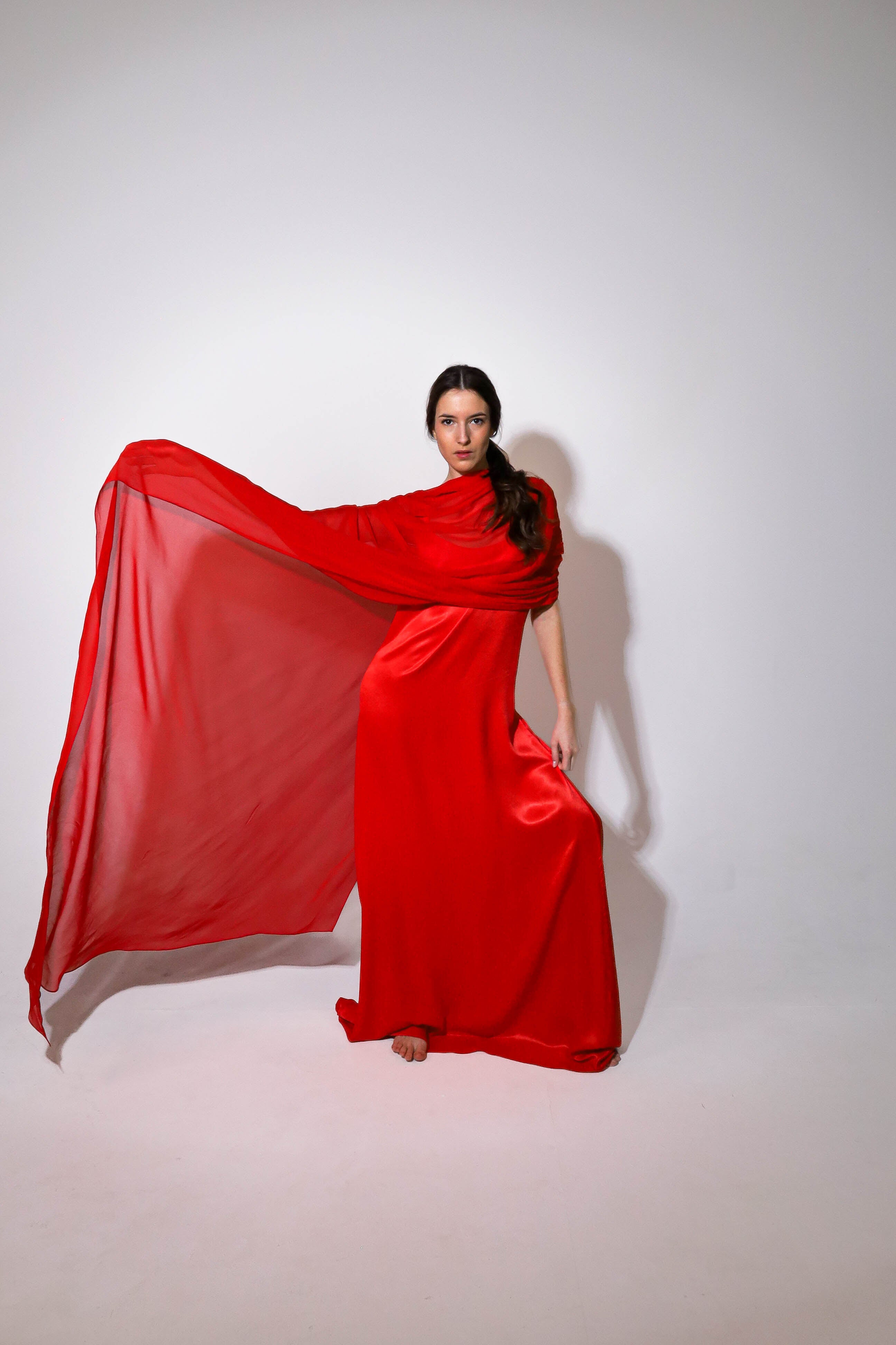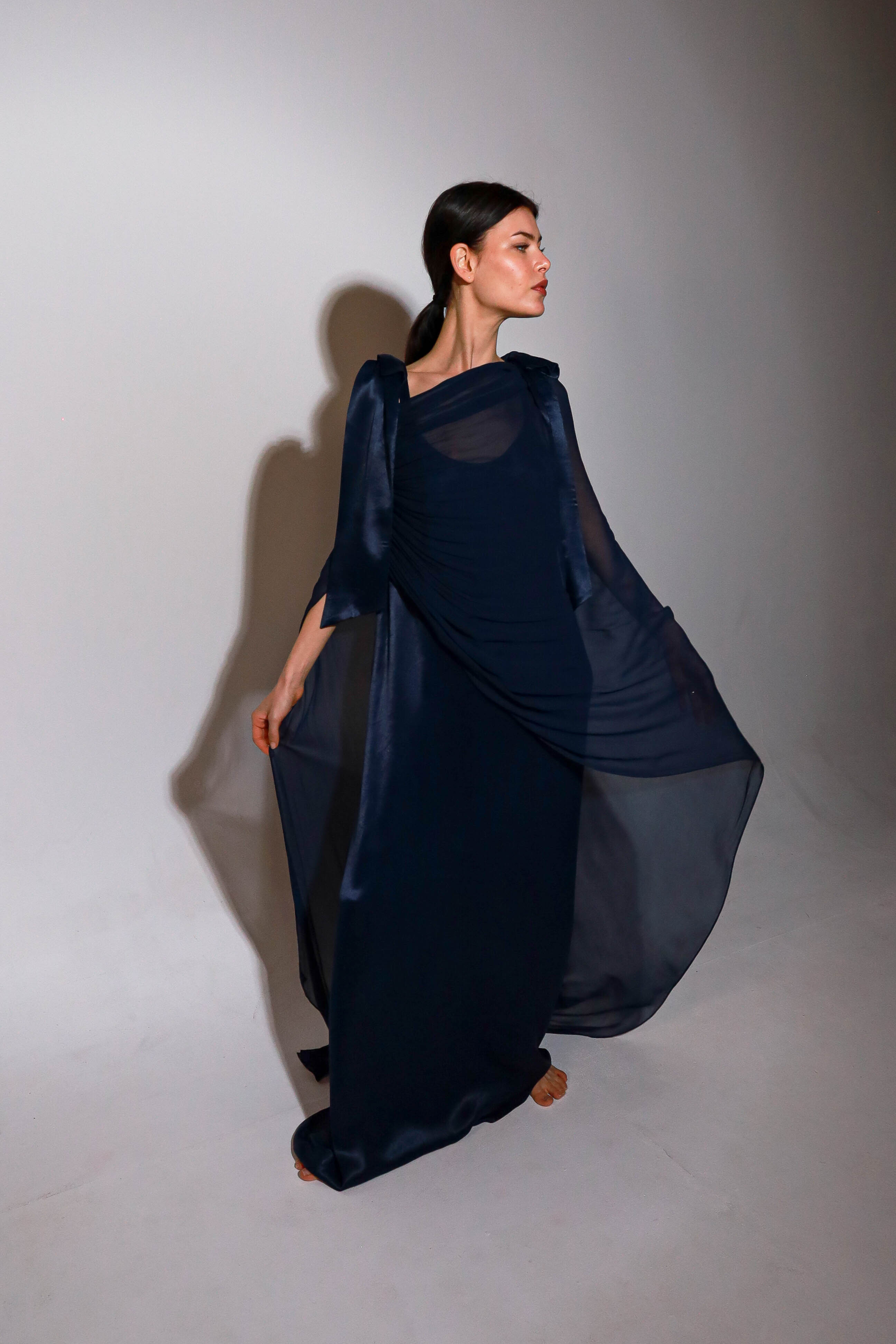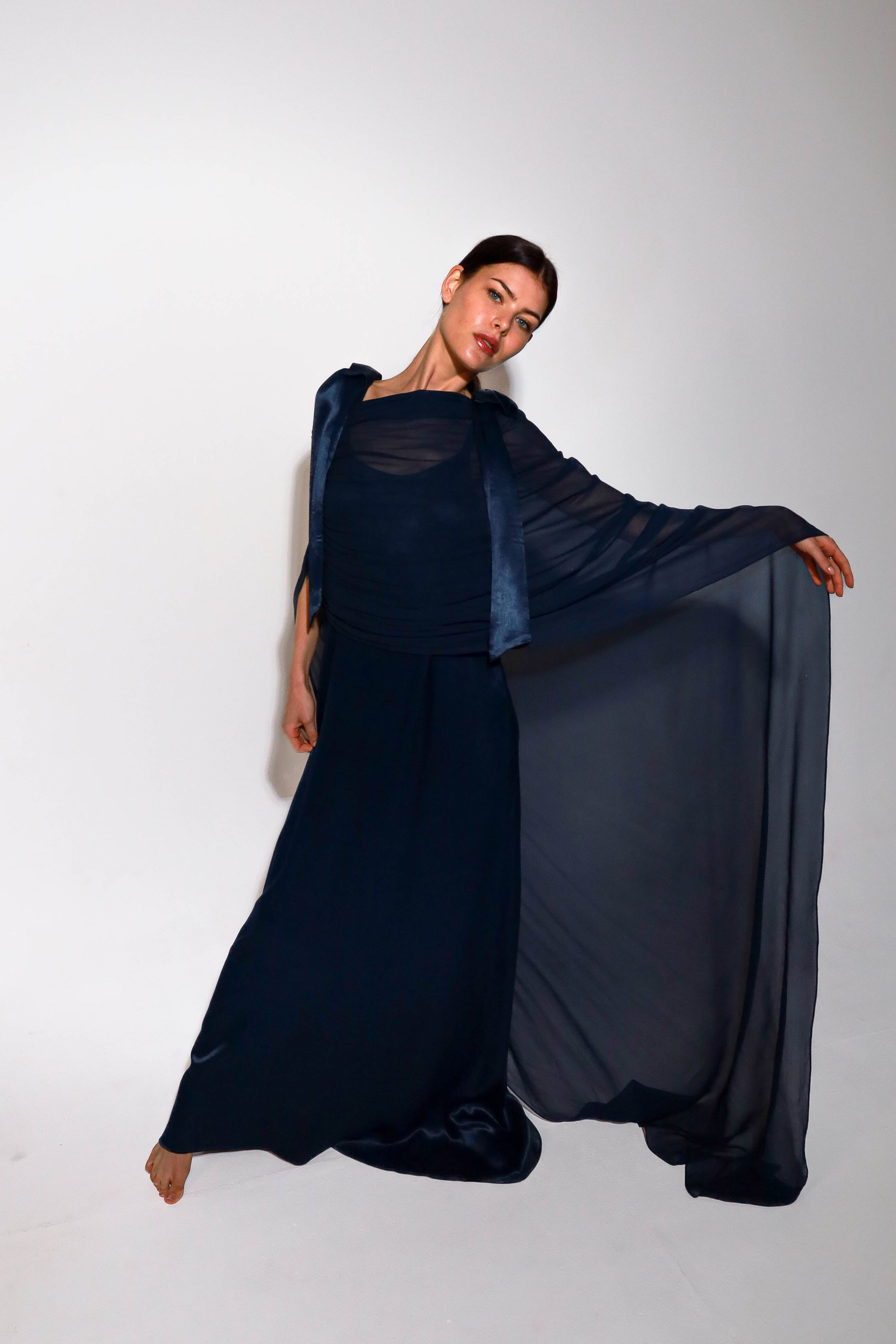 Capa asimétrica de gasa cubre hombros con fruncido en el lateral.