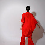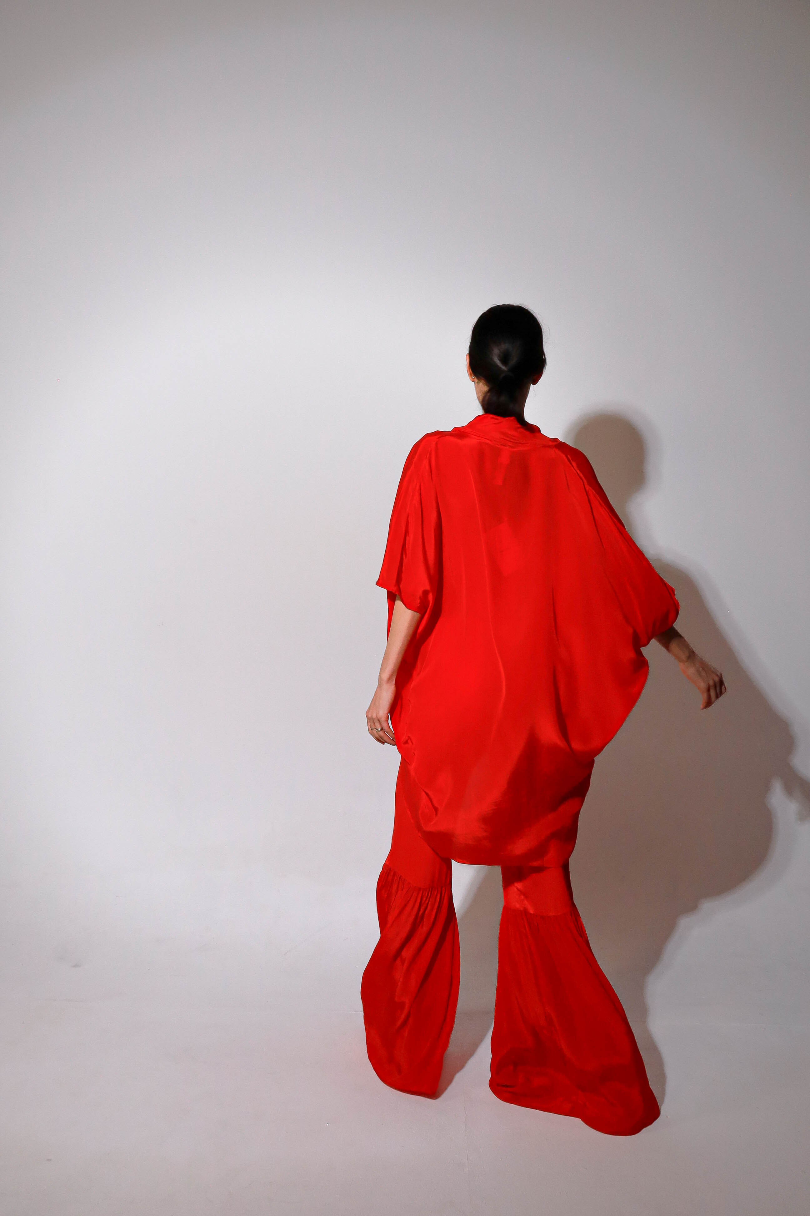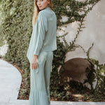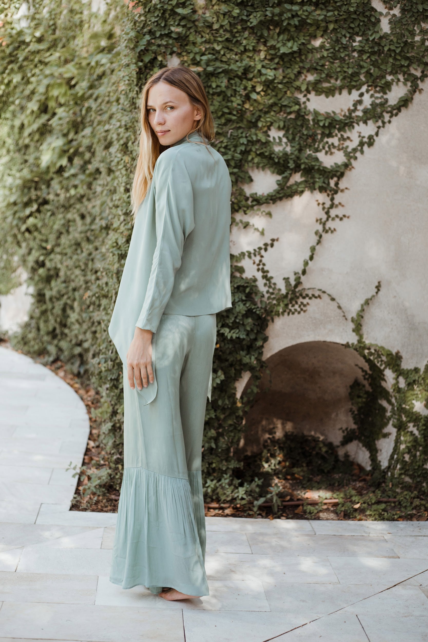 Pantalón palazzo con cremallera invisible trasera y volante en el bajo.