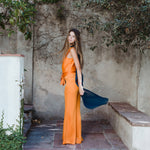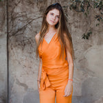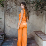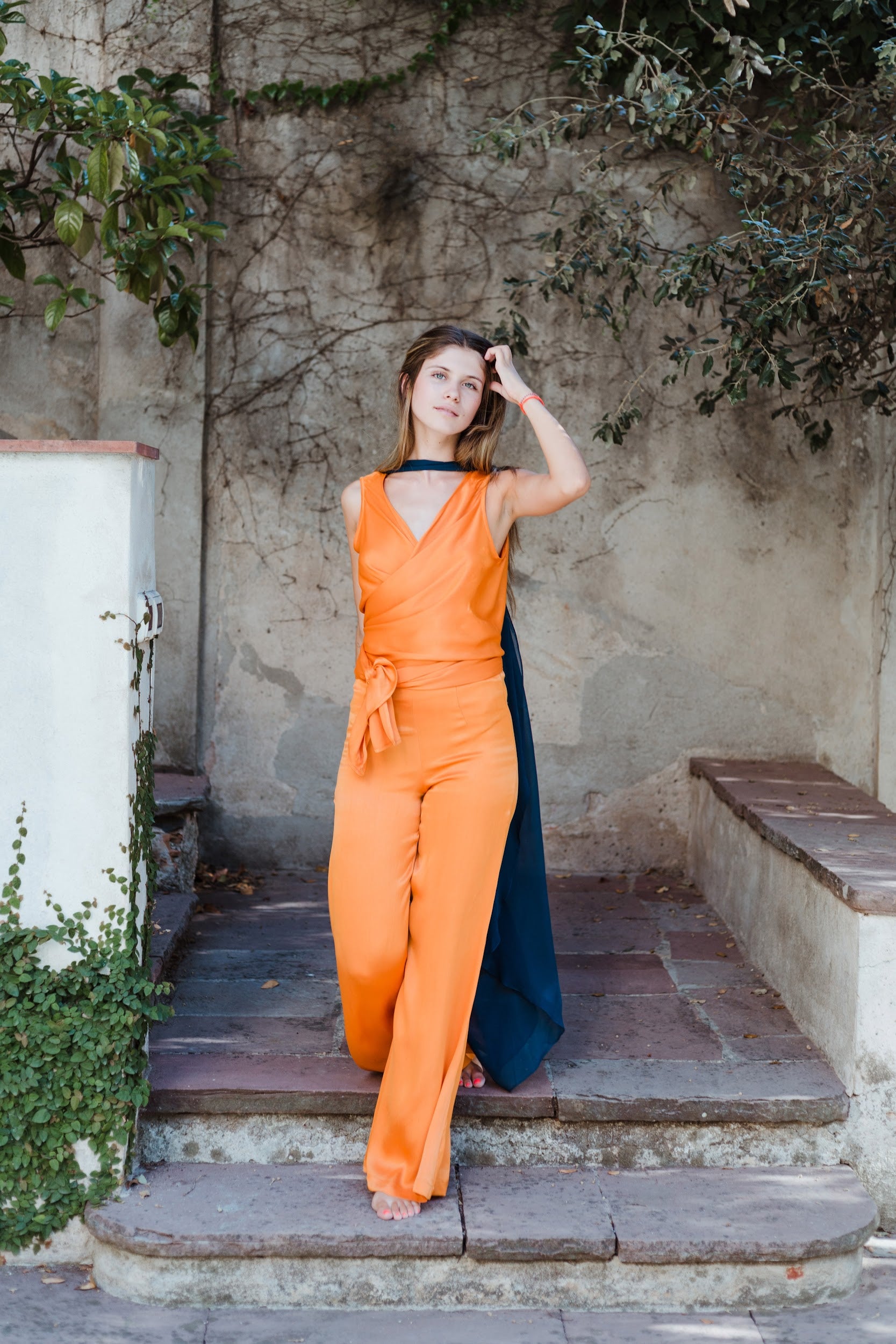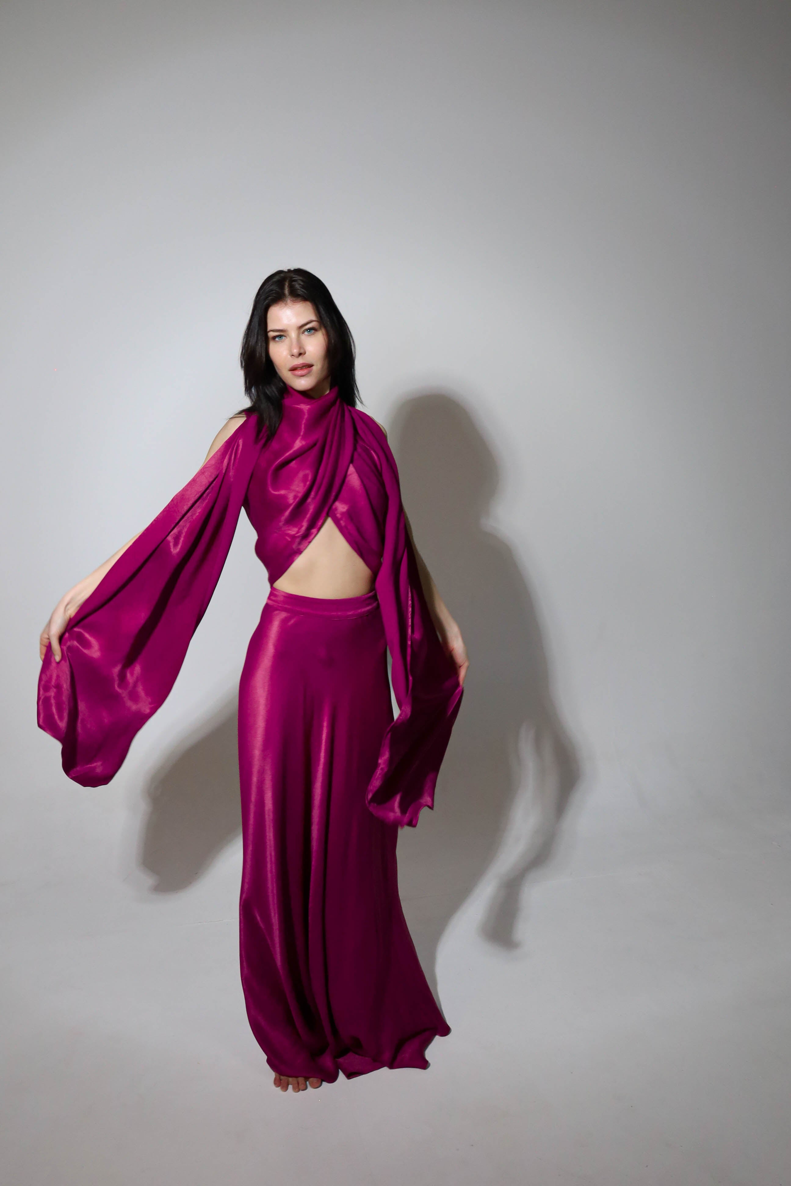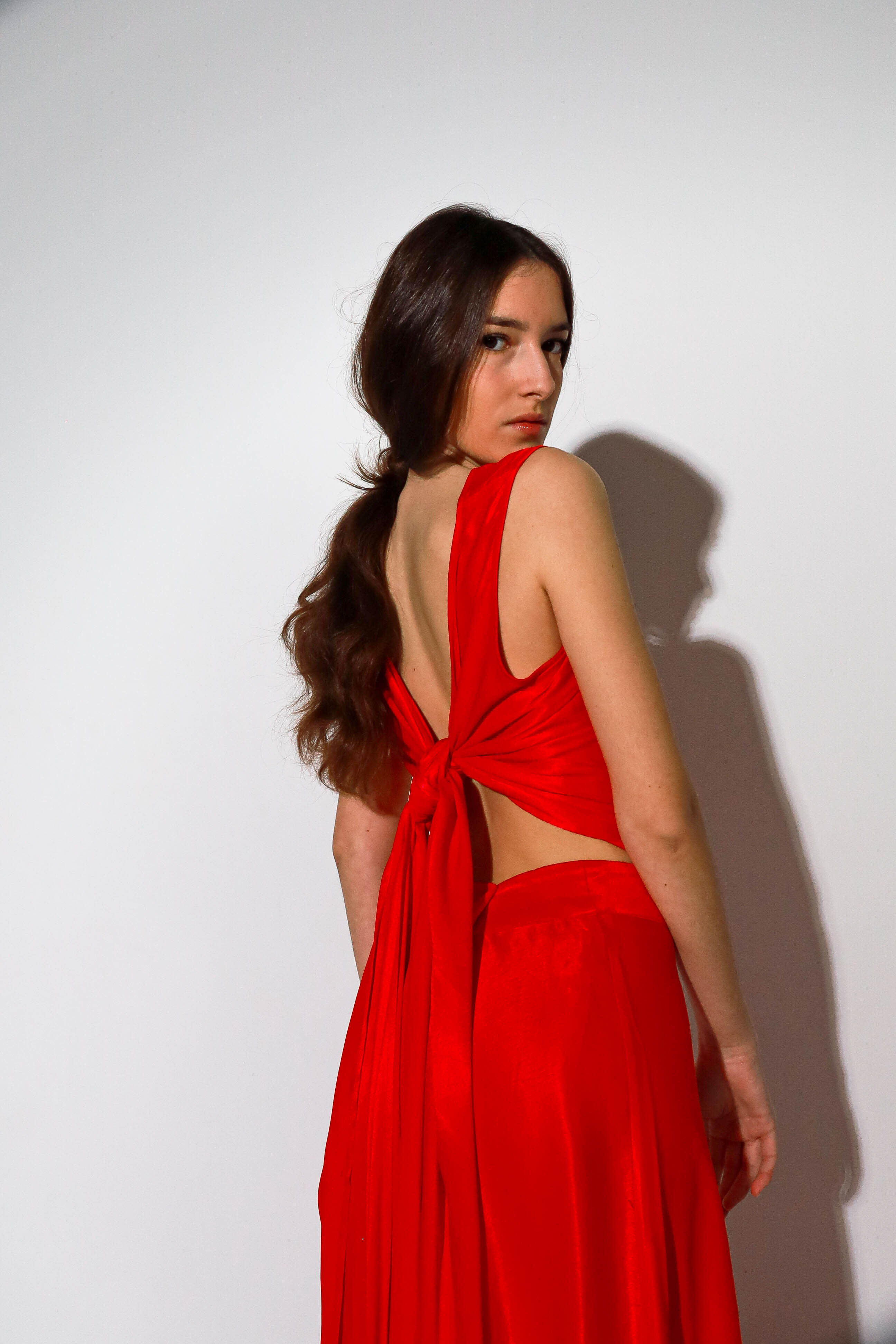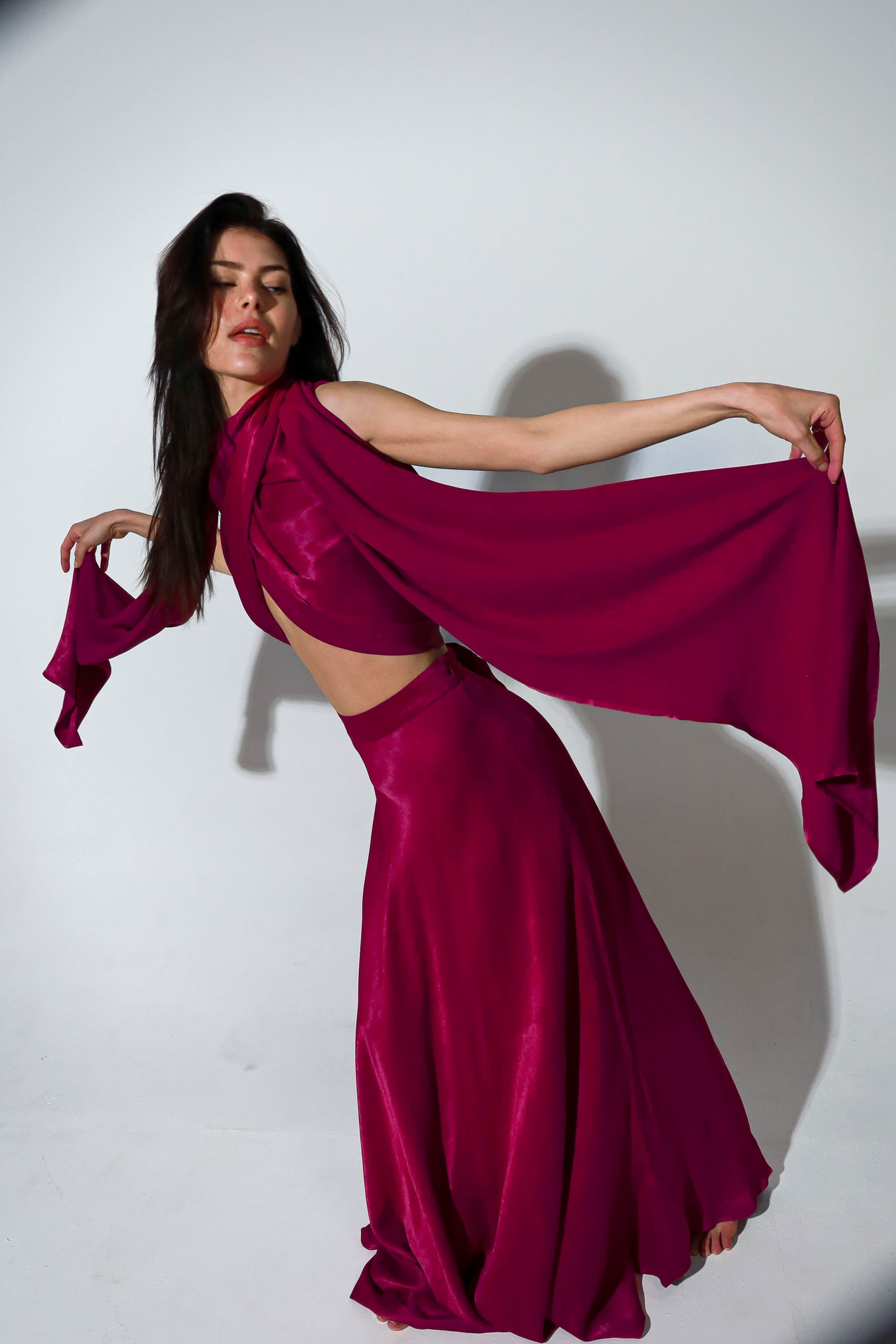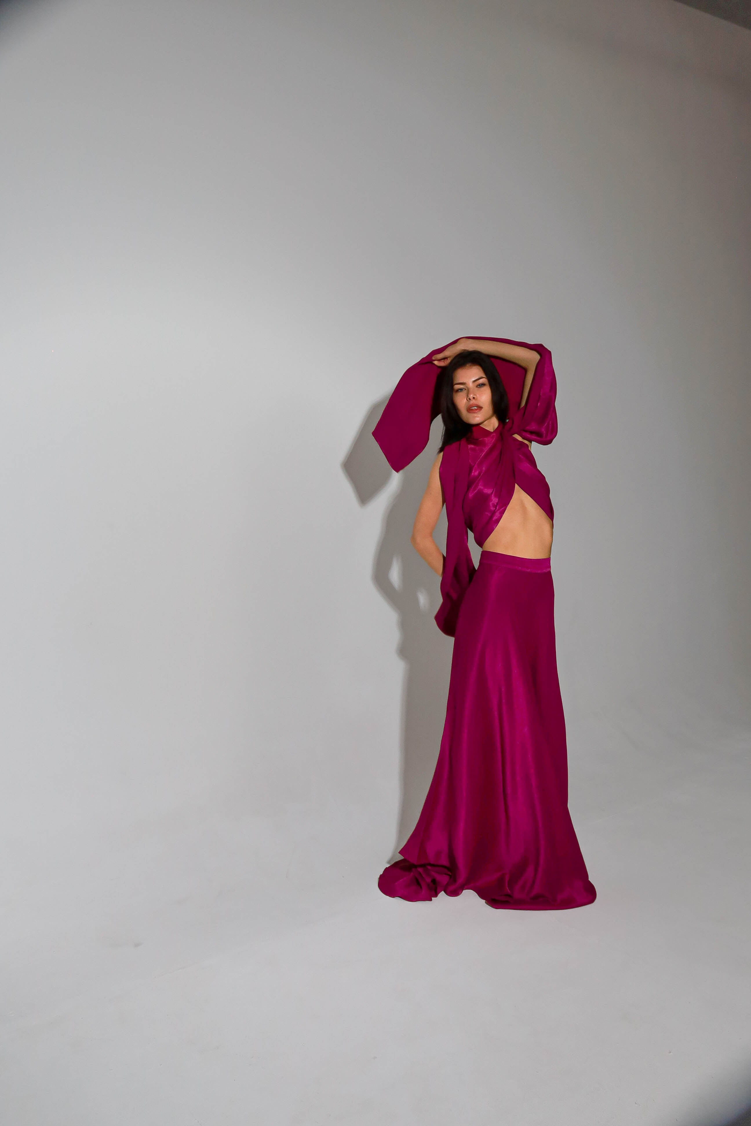 Top satinado multiposición sin manga. Prenda multiposición: se puede llevar de tantas maneras como la imaginación llegue; ponérselo de atrás hacia delante o cruzado. Talla única: abarca desde una 34 hasta la talla 42.