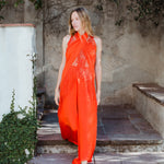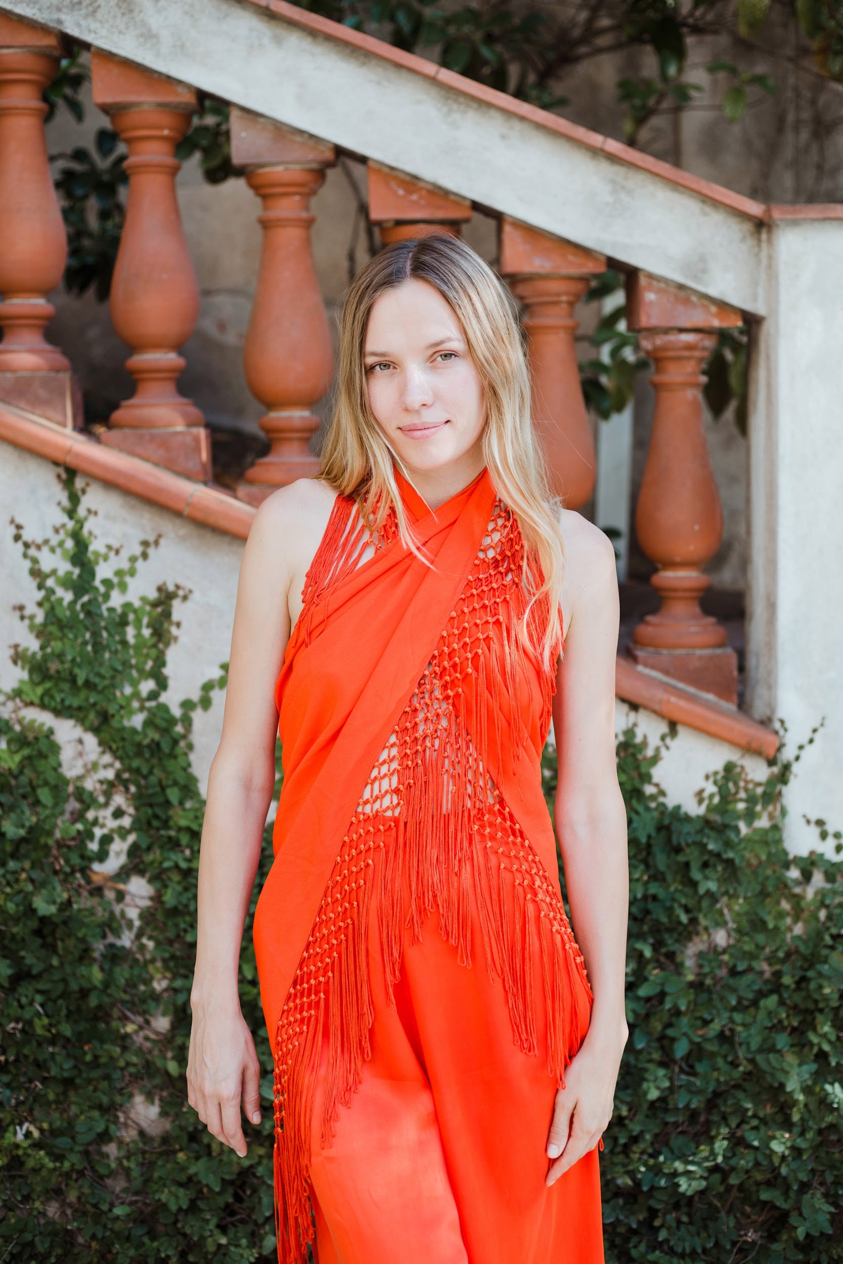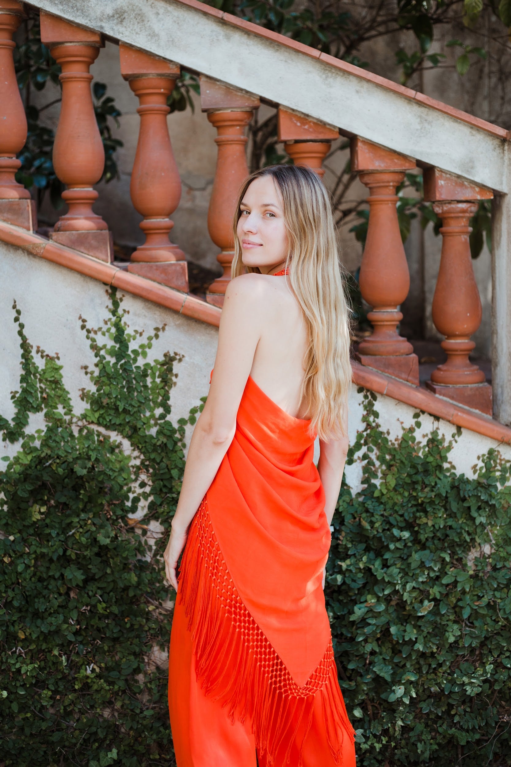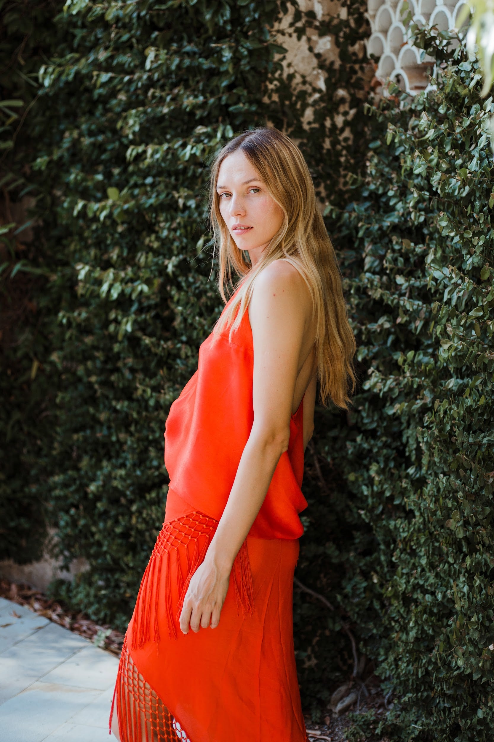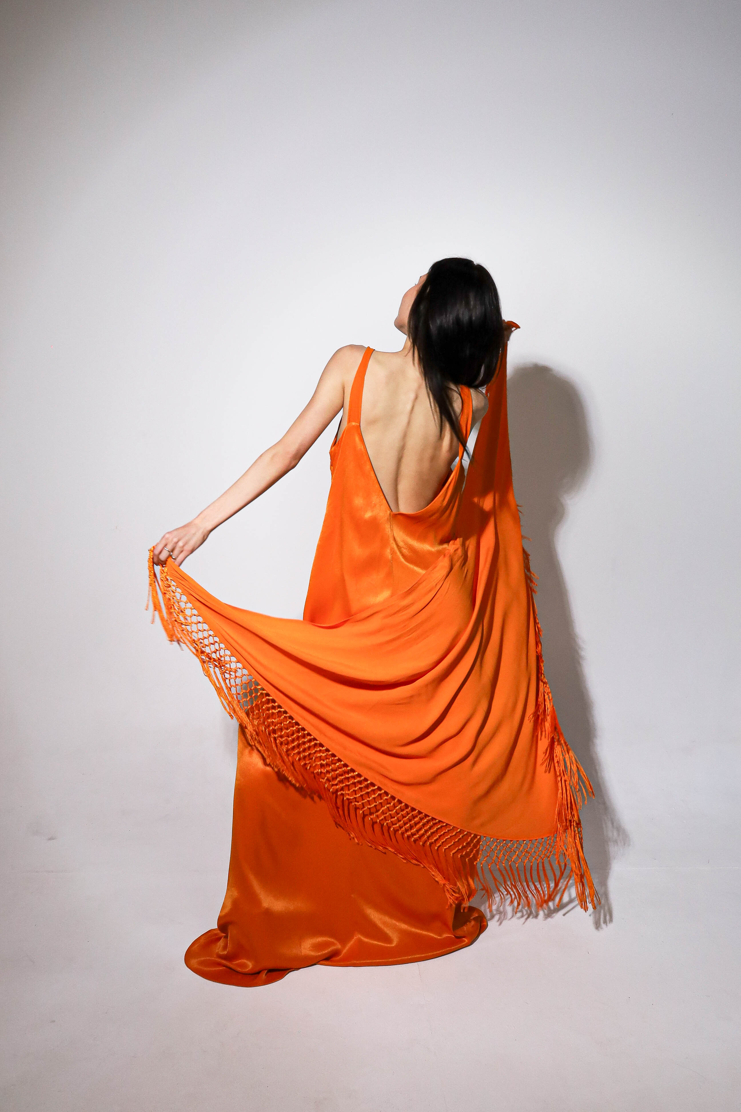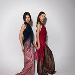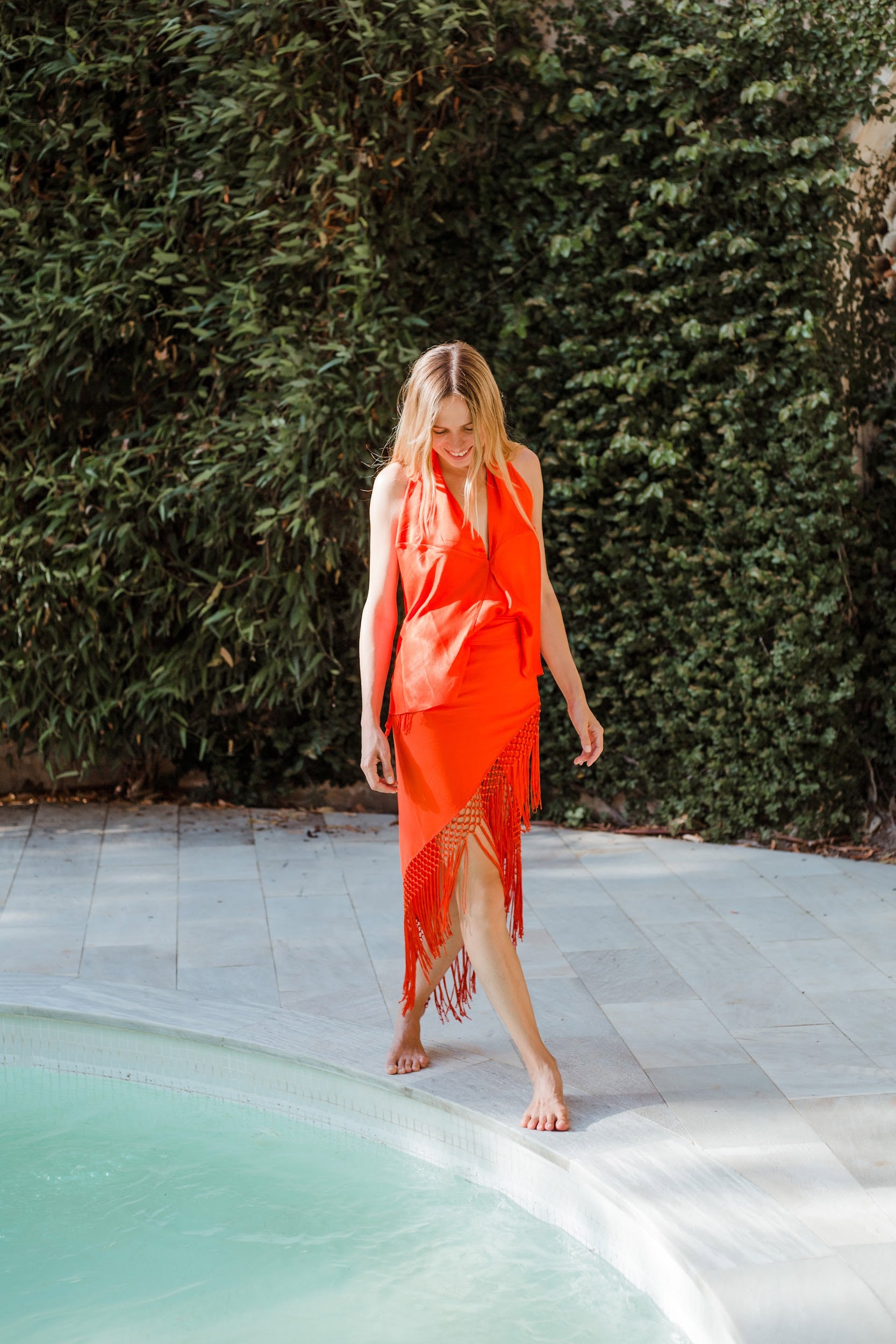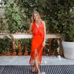 Top en forma de triángulo multiposición y con flecos en los bordes. Al ser un triángulo, tiene varias formas de colocación, tipo top halter, palabra de honor, asimétrico. Infinitas posiciones hasta donde llegue tu imaginación. También se puede usar como falda.