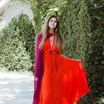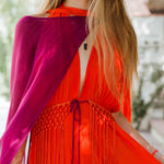 Vestido en escote V con detalle de flecos en cintura y espalda descubierta.