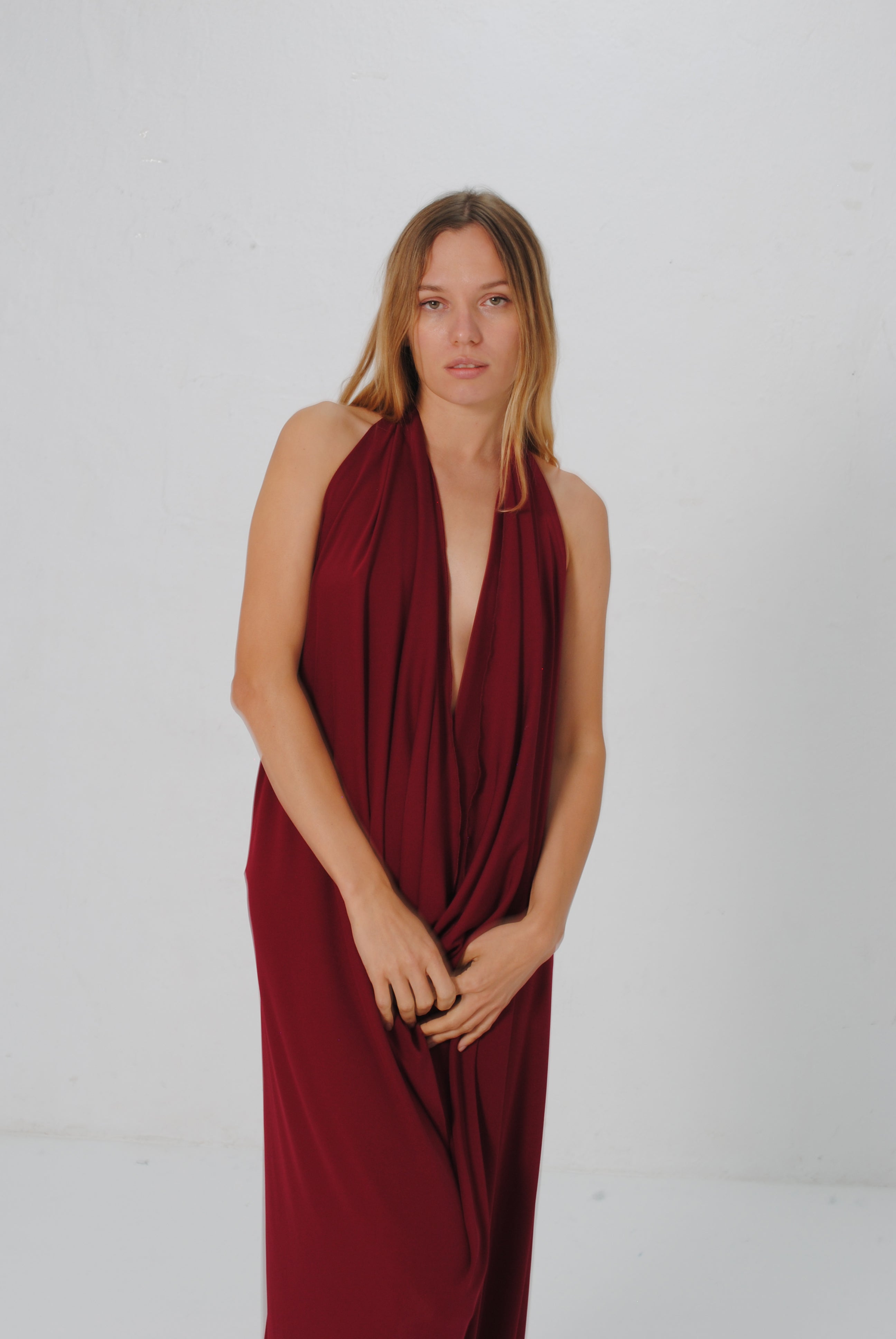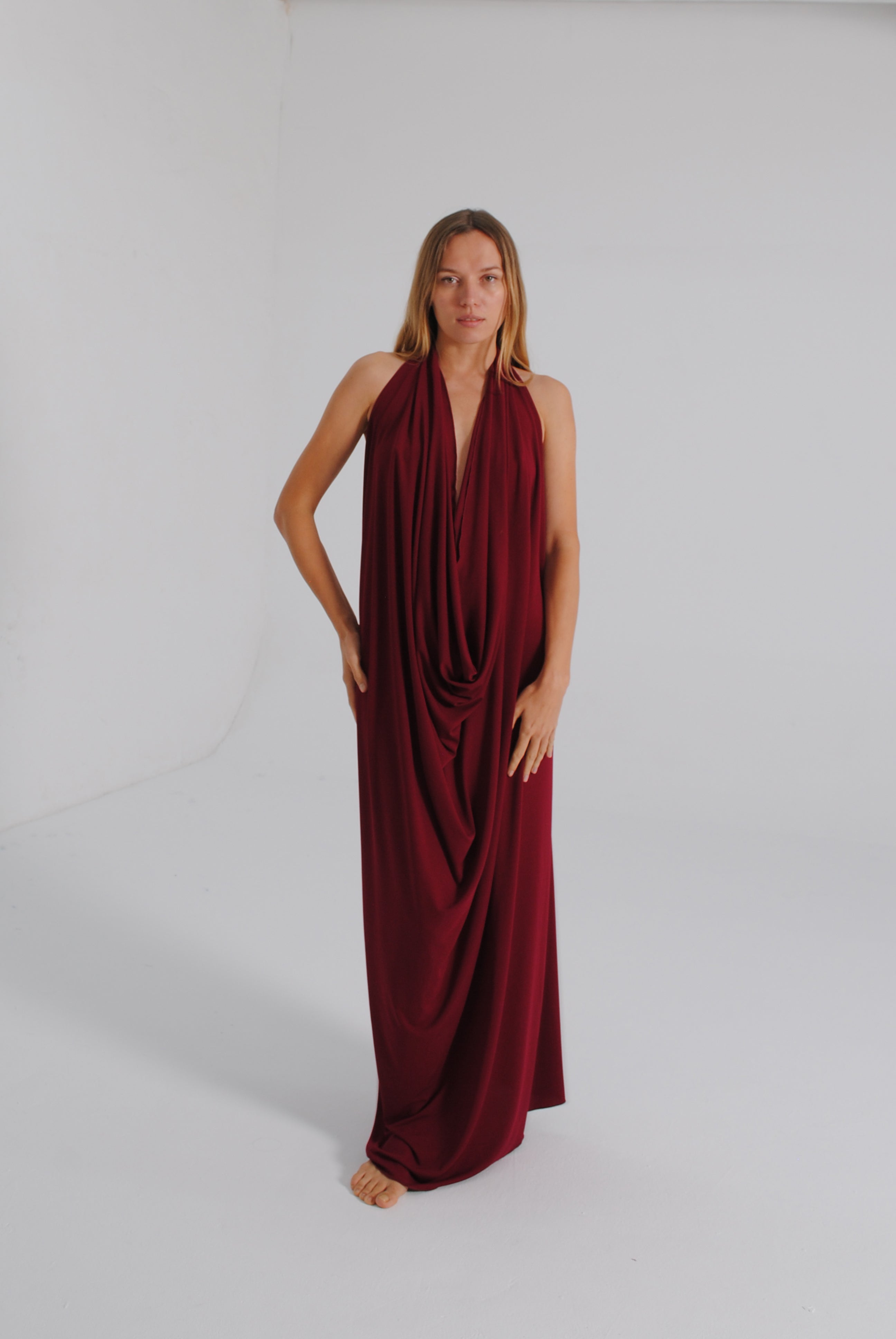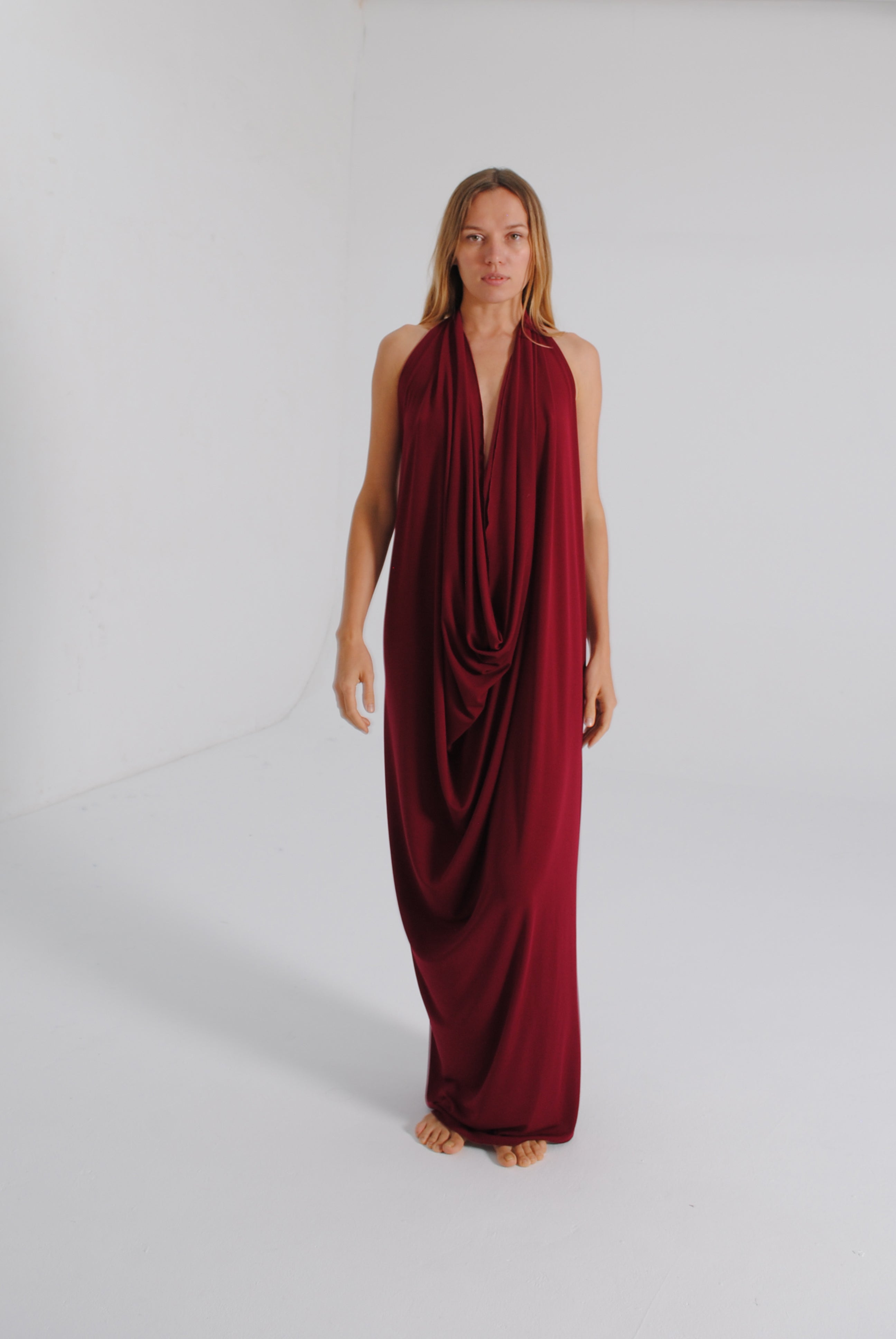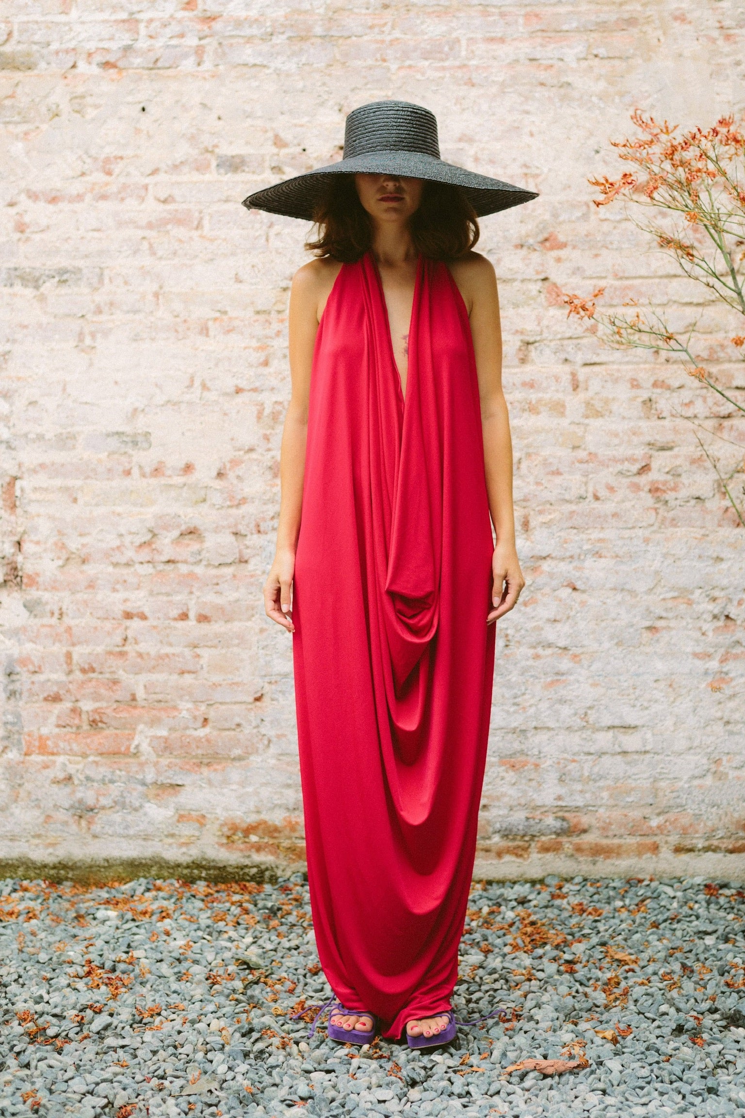 Vestido largo cuello halter con espalda descubierta. Vestido con un gran escote pronunciado con drapeado delantero. Un vestido ICON MariaRoch atemporal, versátil y disponible en todos los colores. Existe la opción de pedirlo en el tono que tú quieras. Talla única: abarca desde la talla 34 hasta la 42.