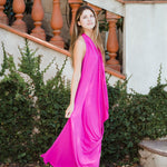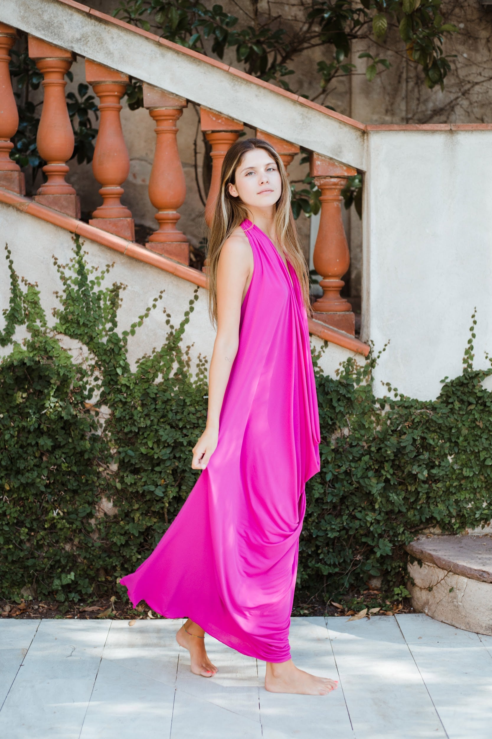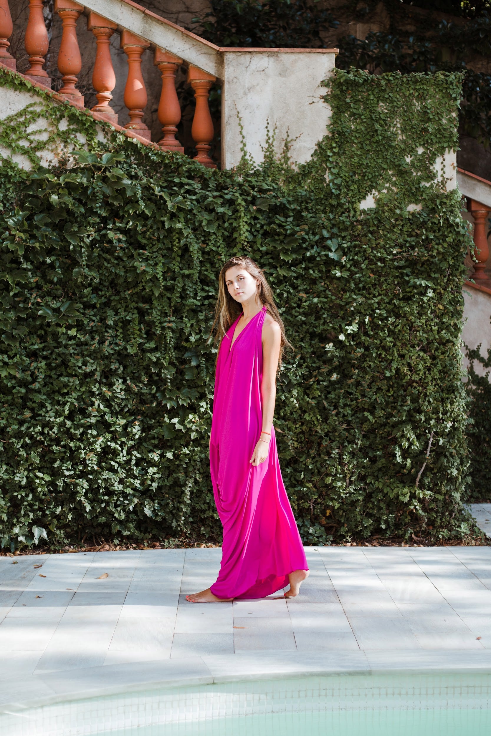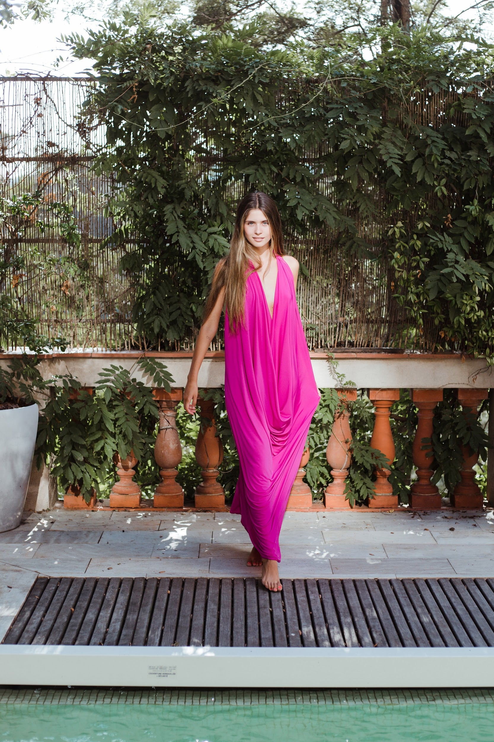 Vestido largo cuello halter con espalda descubierta. Vestido con un gran escote pronunciado con drapeado delantero. Un vestido ICON MariaRoch atemporal, versátil y disponible en todos los colores. Existe la opción de pedirlo en el tono que tú quieras. Talla única: abarca desde la talla 34 hasta la 42.