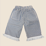 Pantalón ancho de cuadros vichy, combinado con flecos color blanco en el bajo. El tejido es 100% algodón.