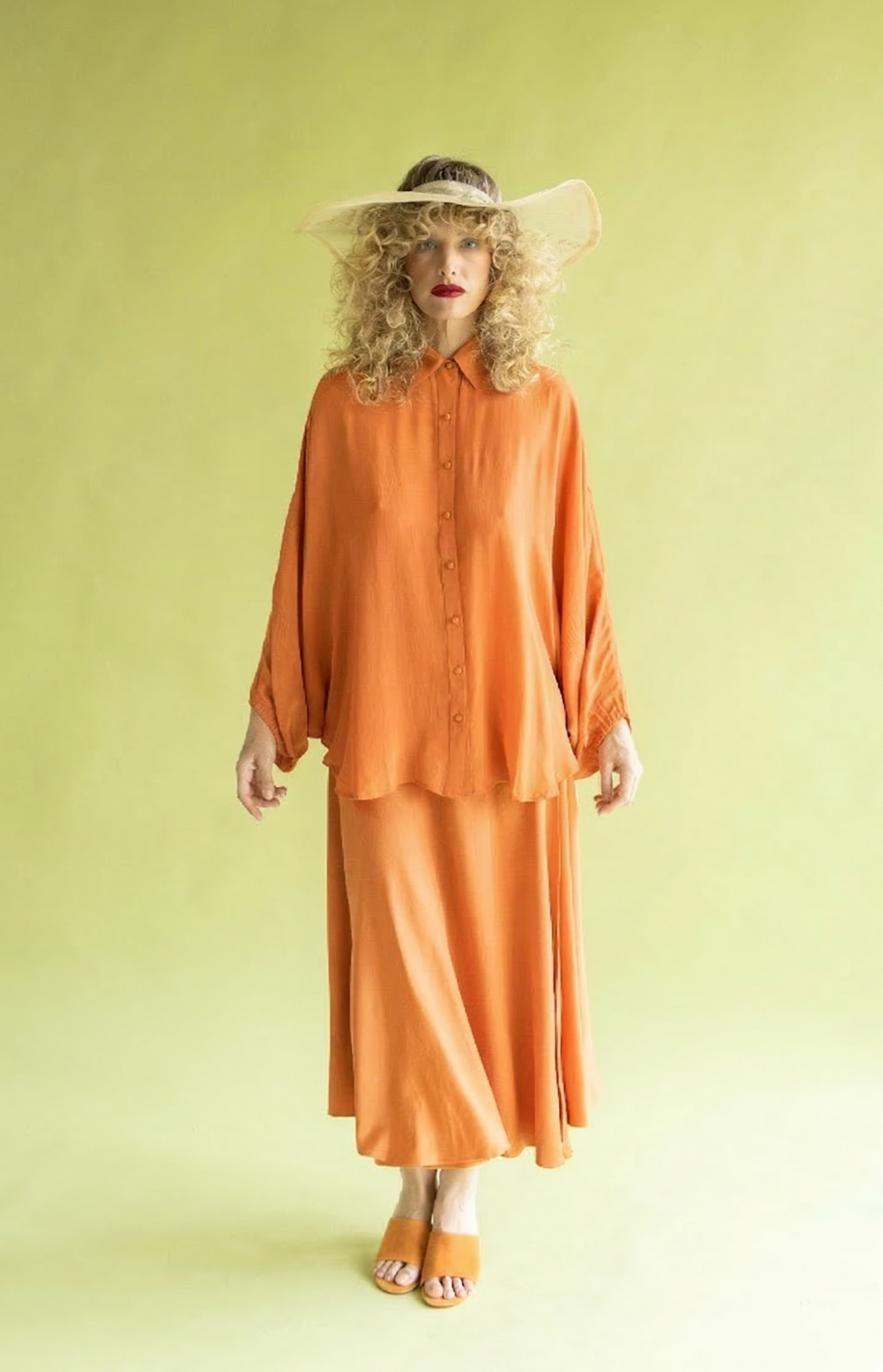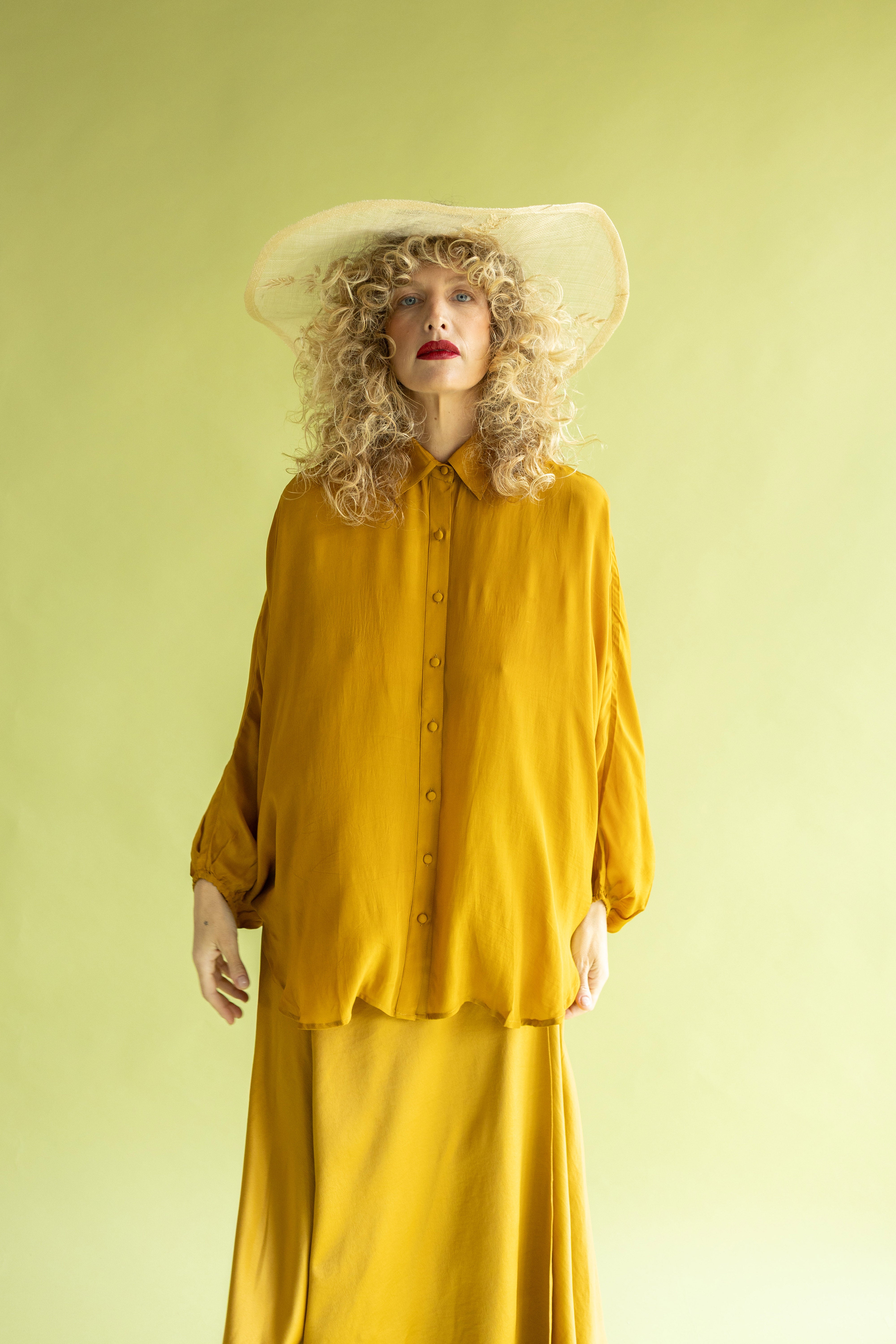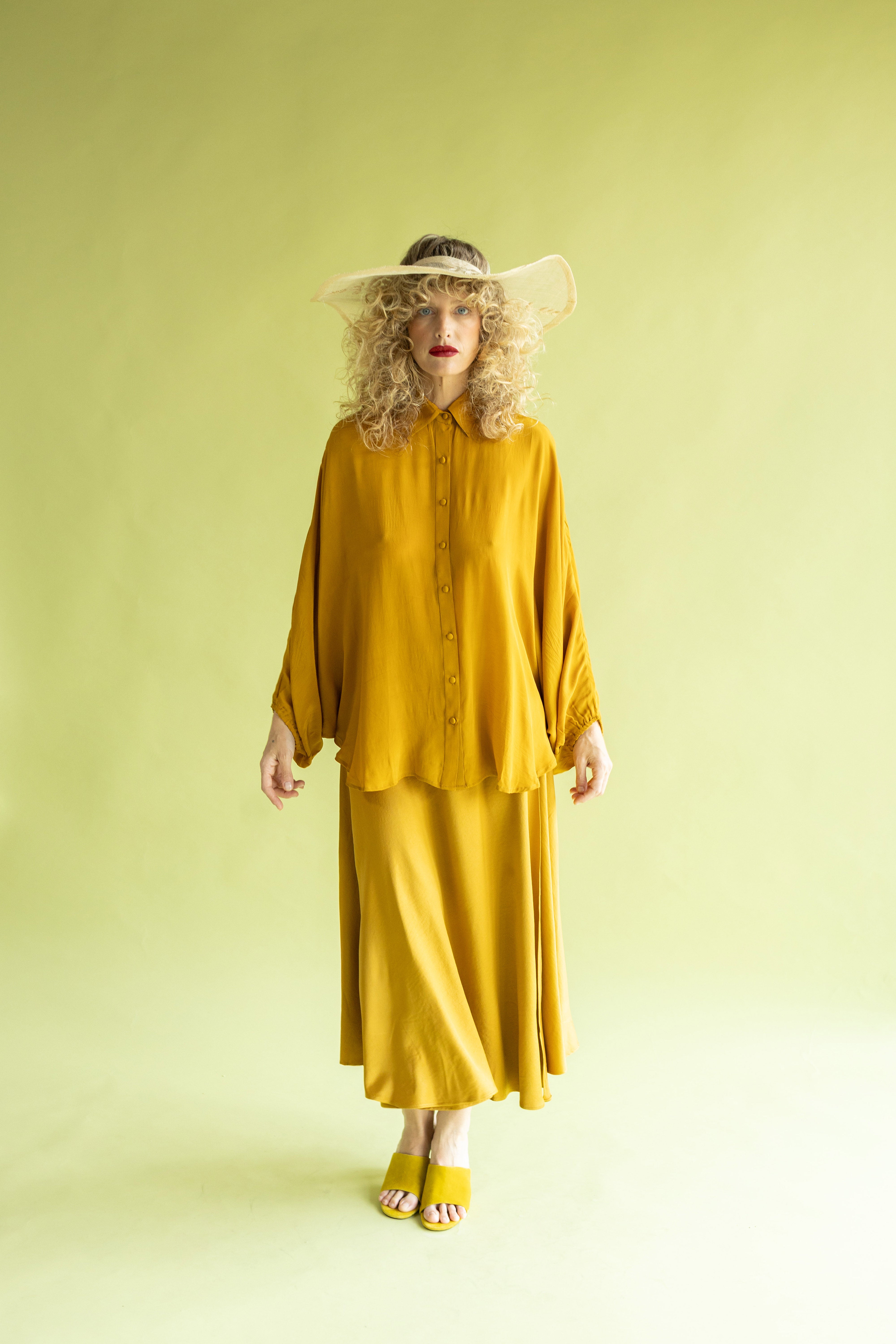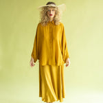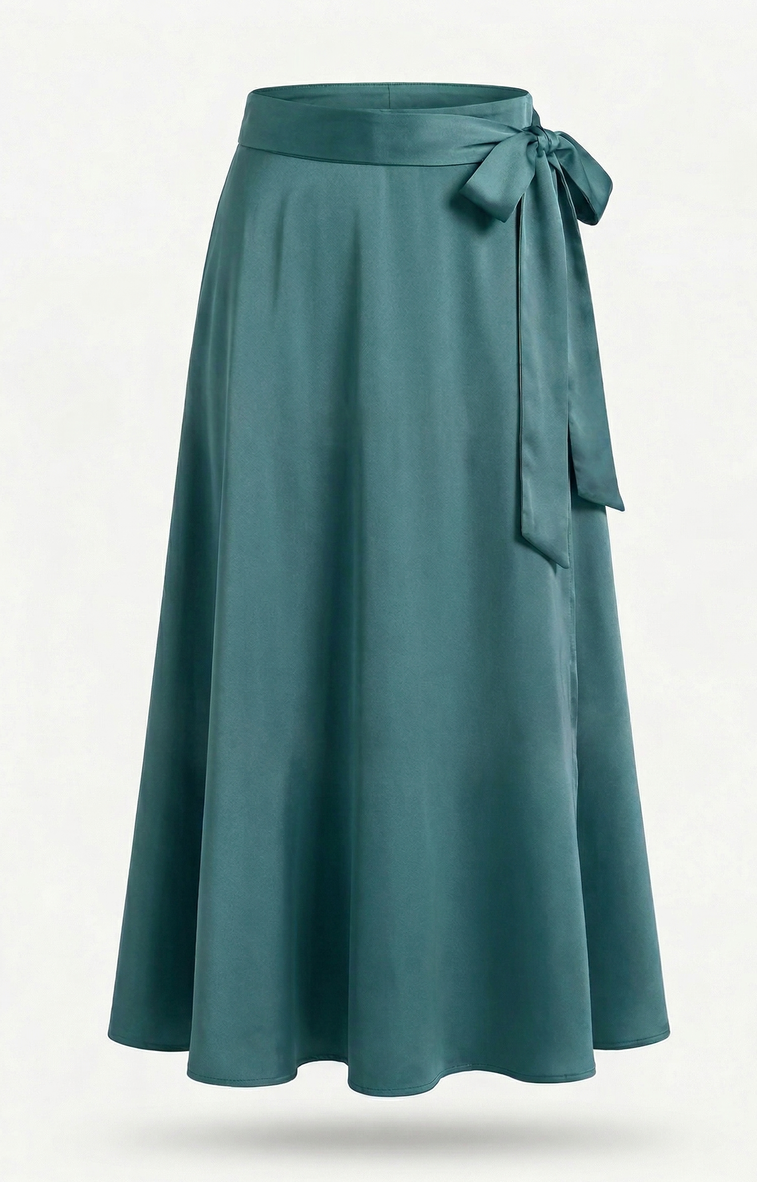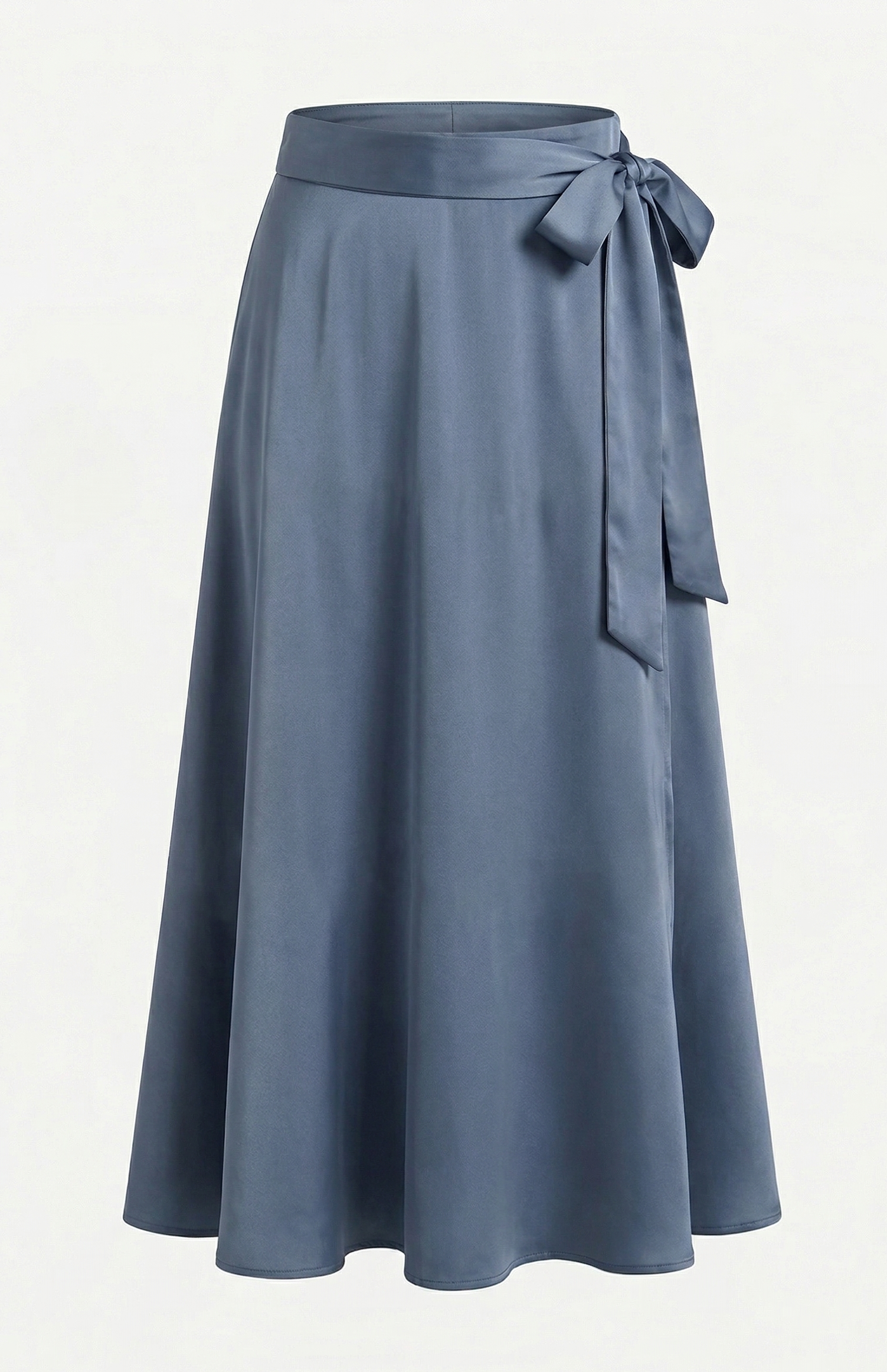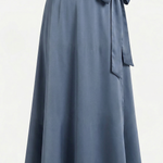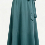 Falda larga envolvente confeccionada en crep satén, un tejido que destaca por su brillo sutil y una caída impecable. De tiro alto y cierre mediante lazada lateral, esta pieza combina la sofisticación del acabado satinado con un movimiento fluido y ligero. Un diseño atemporal y femenino, ideal para crear un conjunto minimalista de alto impacto.