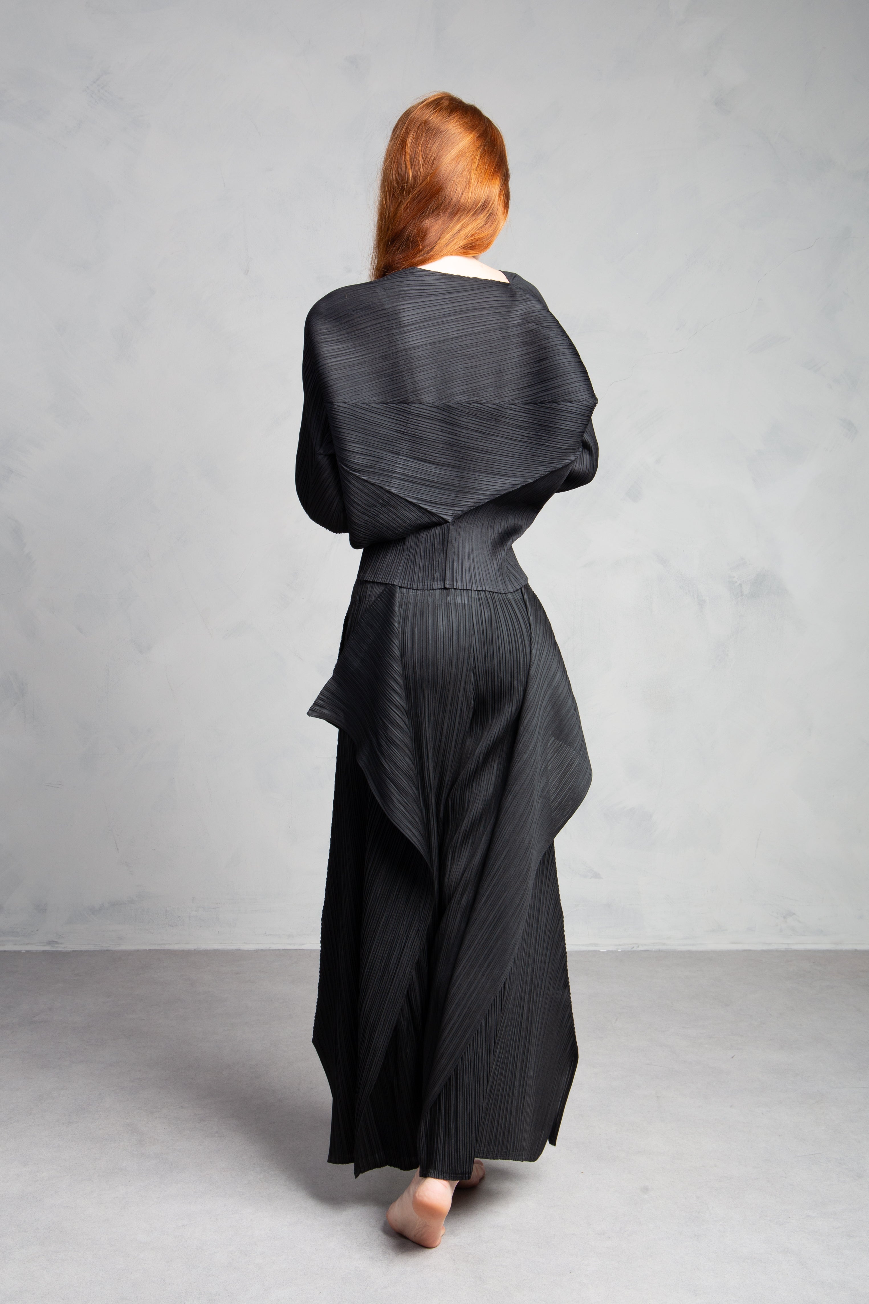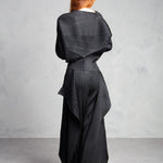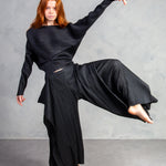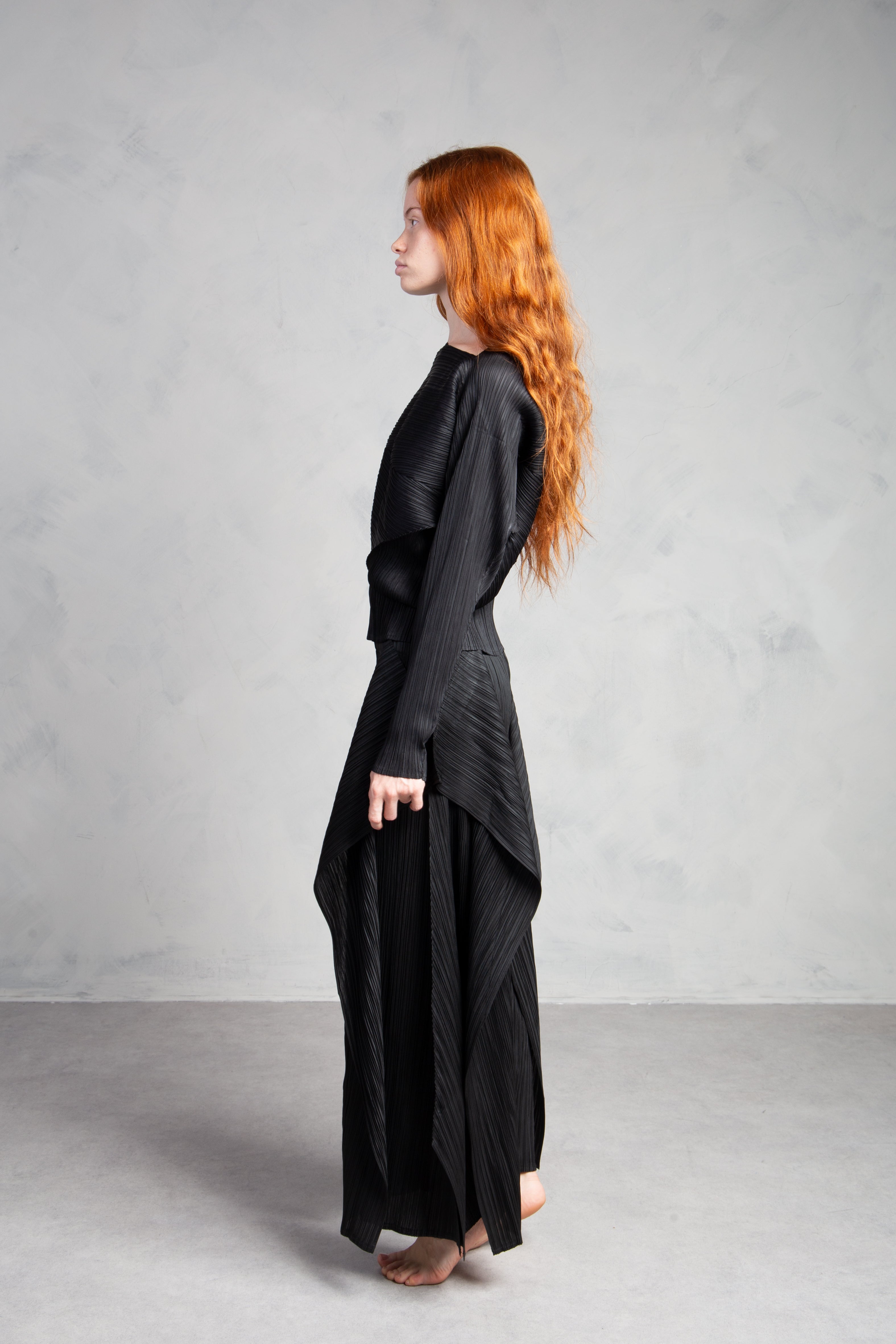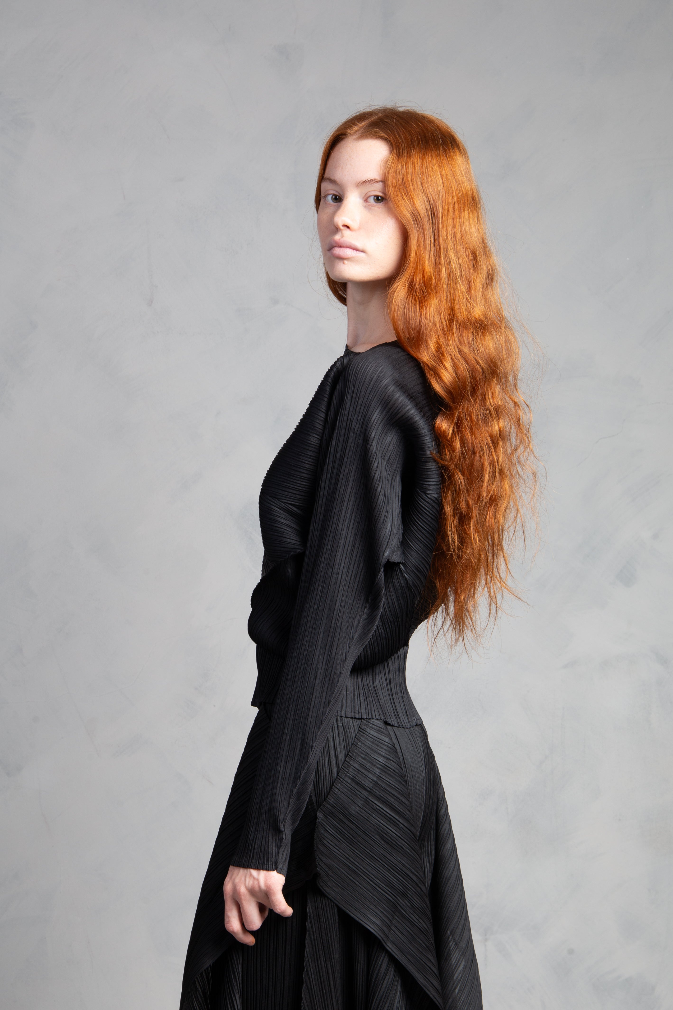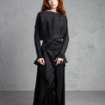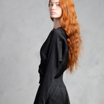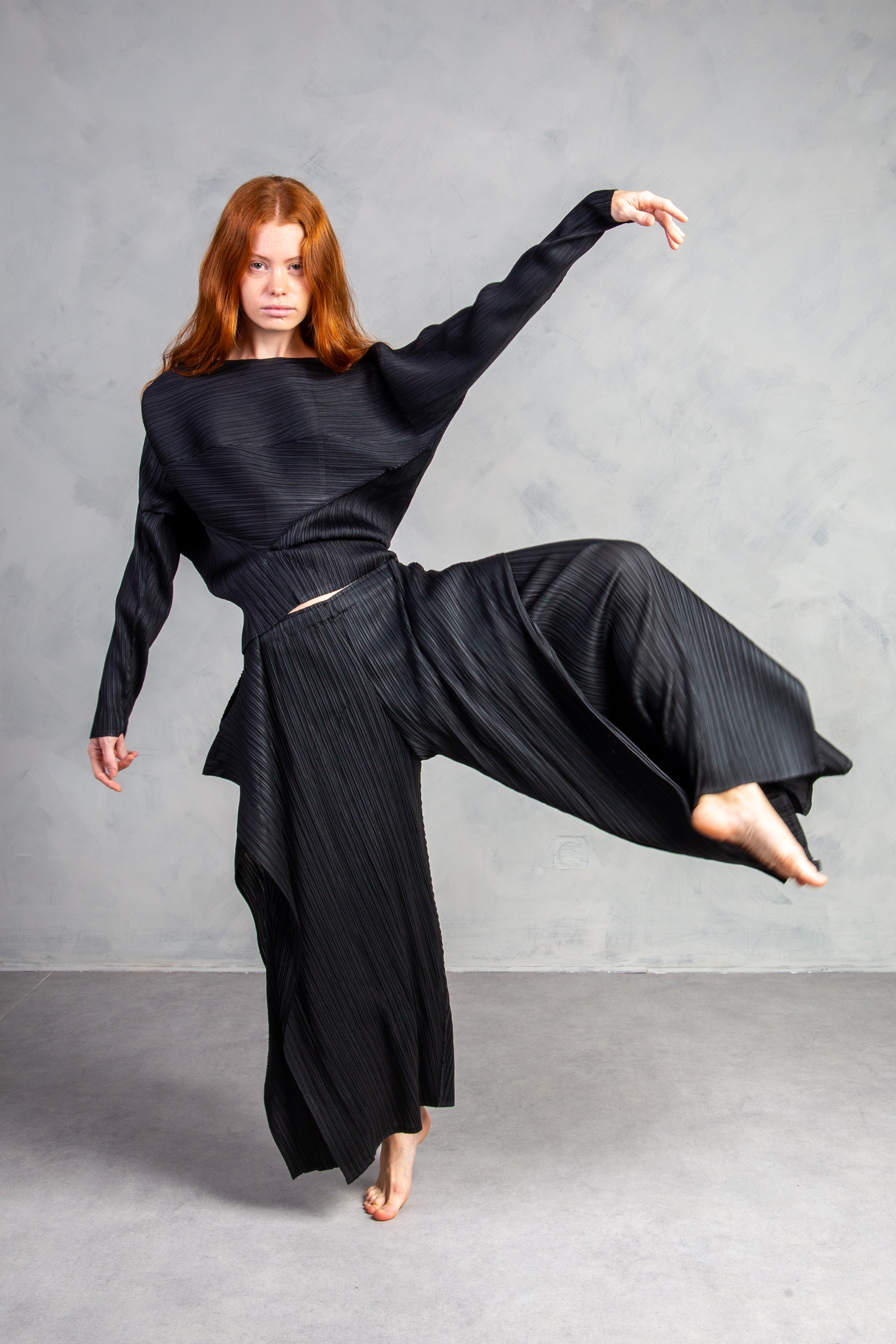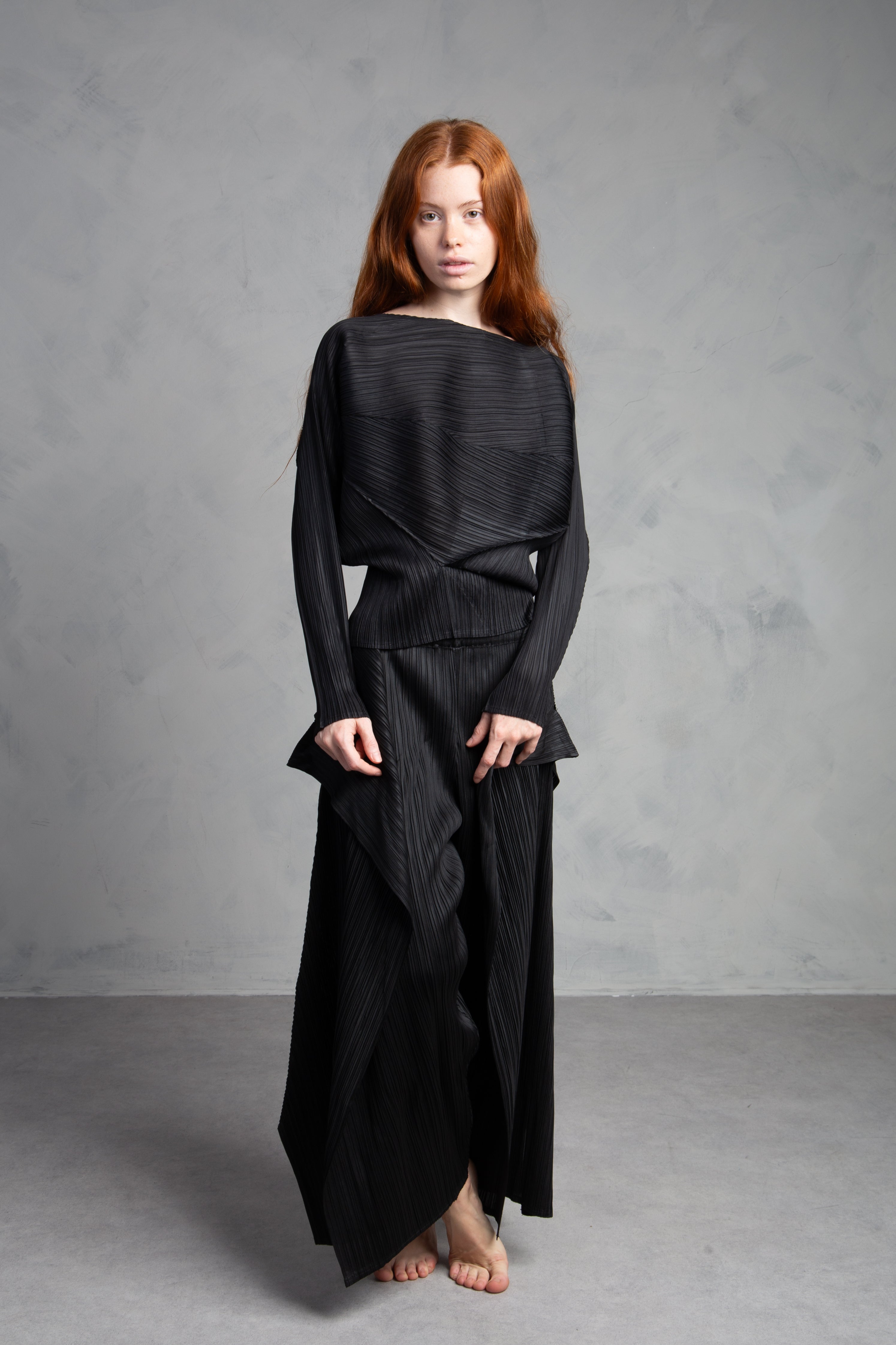 Top plisado fluido cuello plano y manga tipo murciélago.